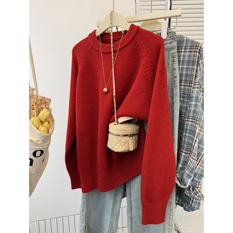리얼 샷 ~ 쇼 화이트 머스타드 옐로우 너구리 벨벳 크루 넥 풀오버 스웨터 여성의 가을과 겨울 두꺼운 겨울 베이스 뜨개질스토어 가기