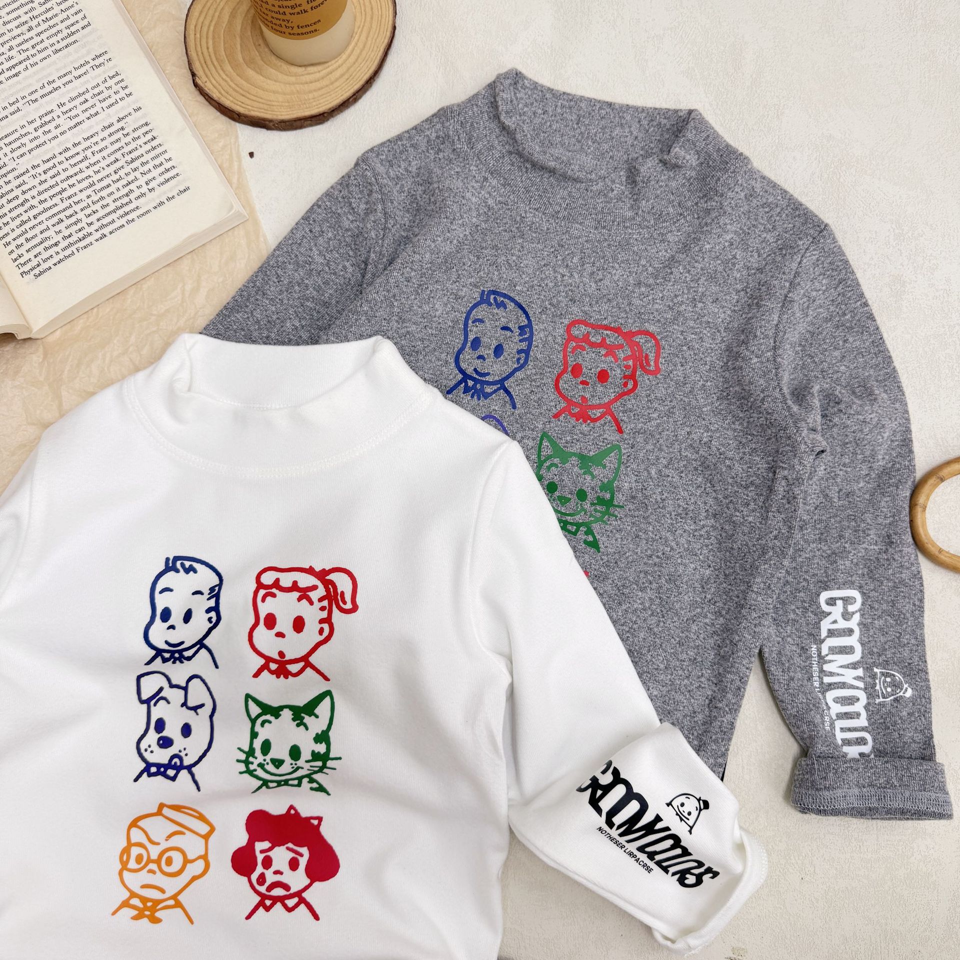 어린이 티셔츠 가을과 겨울 새로운 소년과 소녀 만화 기본 셔츠 아기 긴 소매 T 사이즈 어린이 따뜻한 탄성 기초스토어 가기