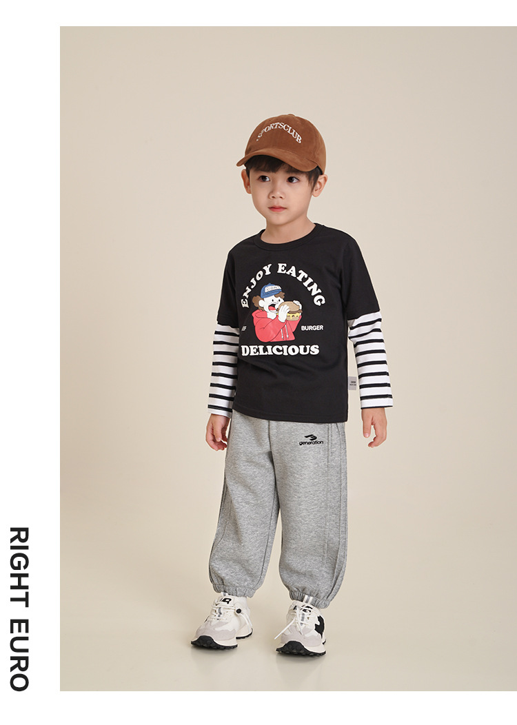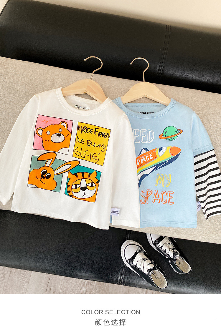 오른쪽 유럽 소년 긴팔 티셔츠 바닥 셔츠 가을 의류 봄, 가을 아동 의류 가을 의류 아동용 베이비 탑 아동복스토어 가기