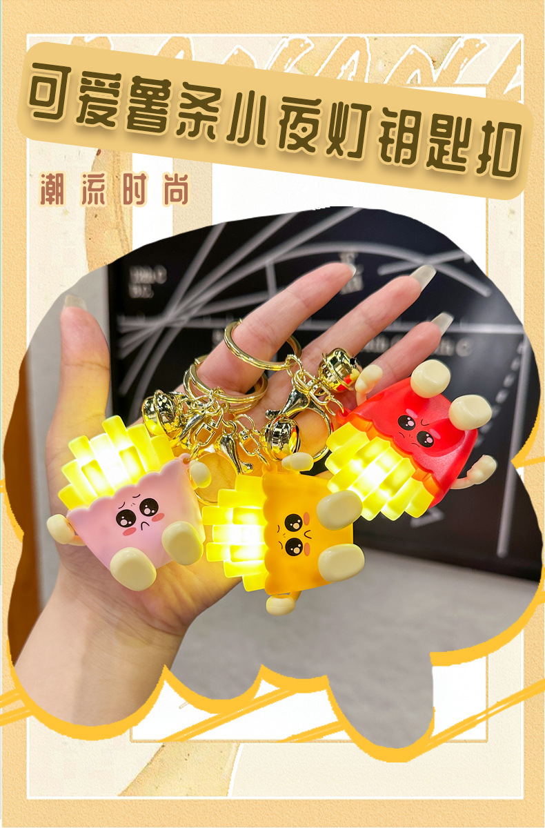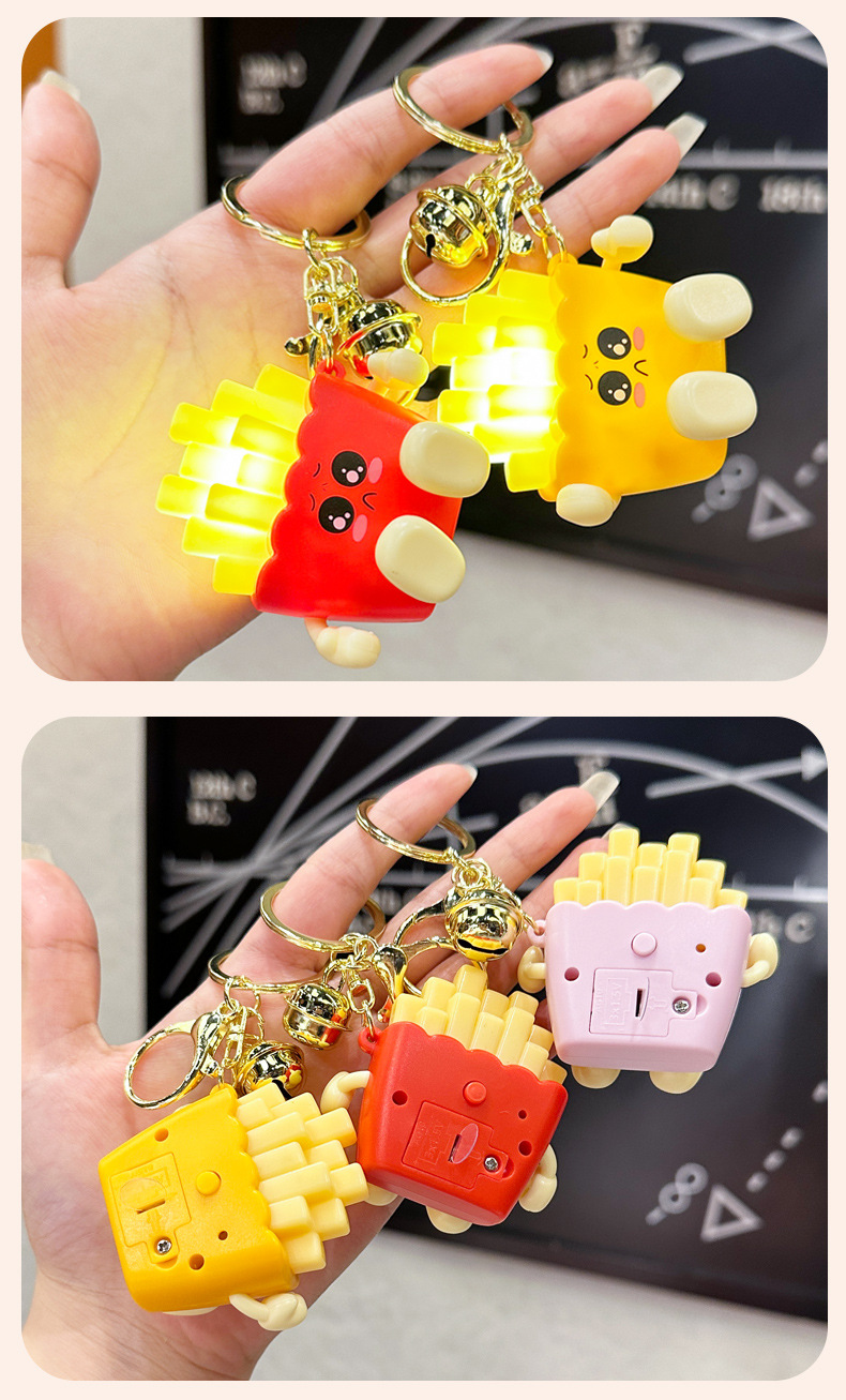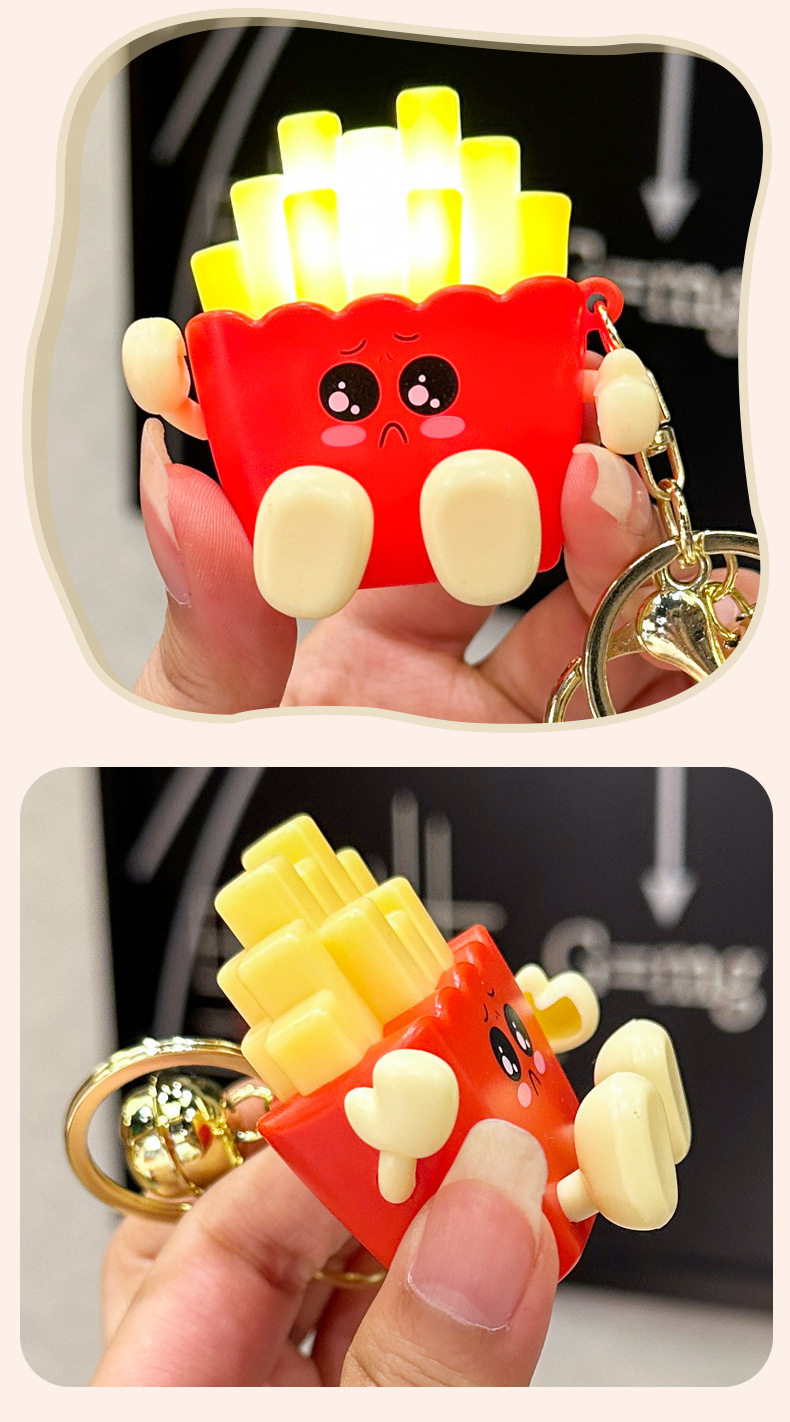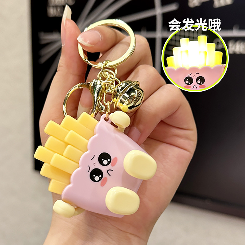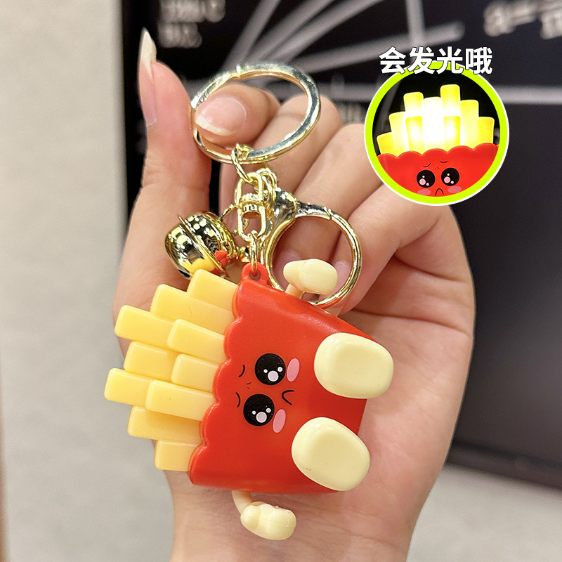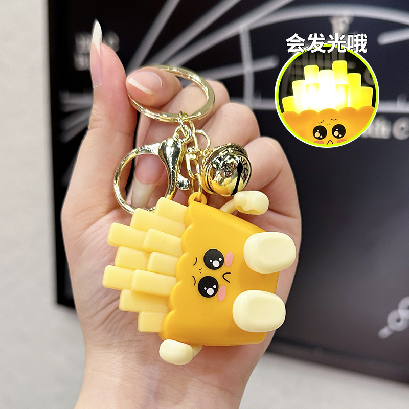 창조적 인 귀여운 빛나는 프랑스 프라이 키 체인 만화 압축 야간 조명 학생 절묘한 장난감 커플 가방 펜던트