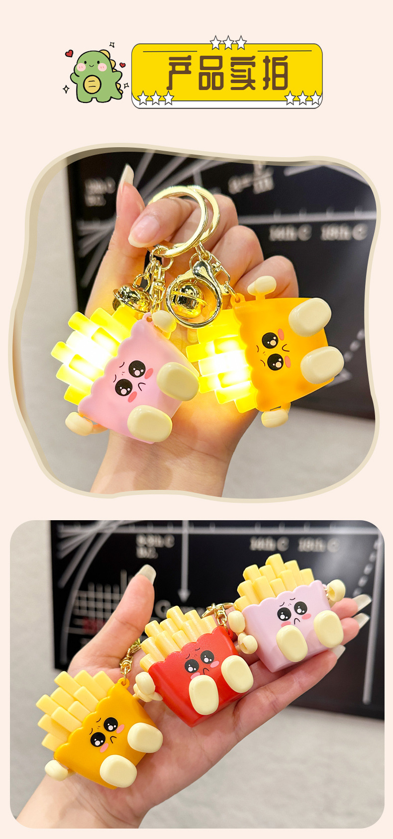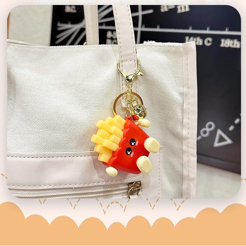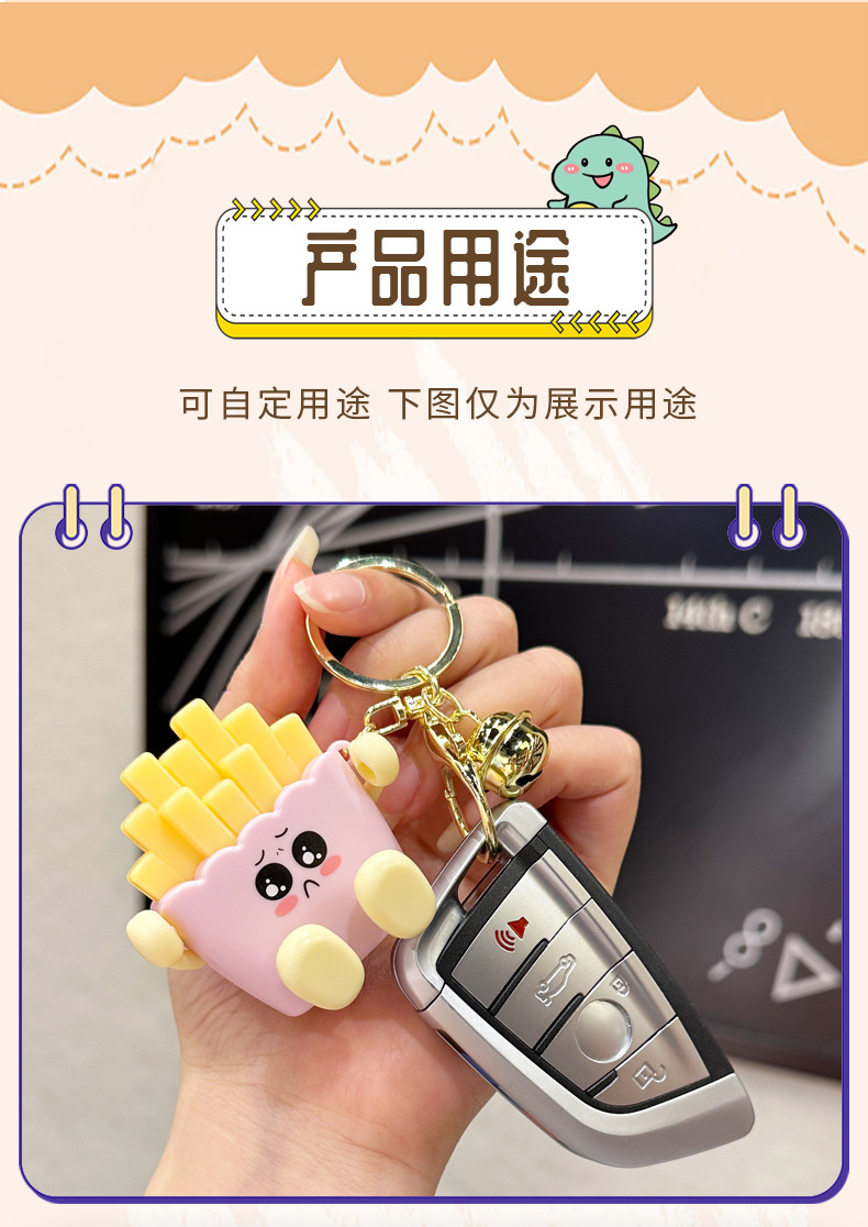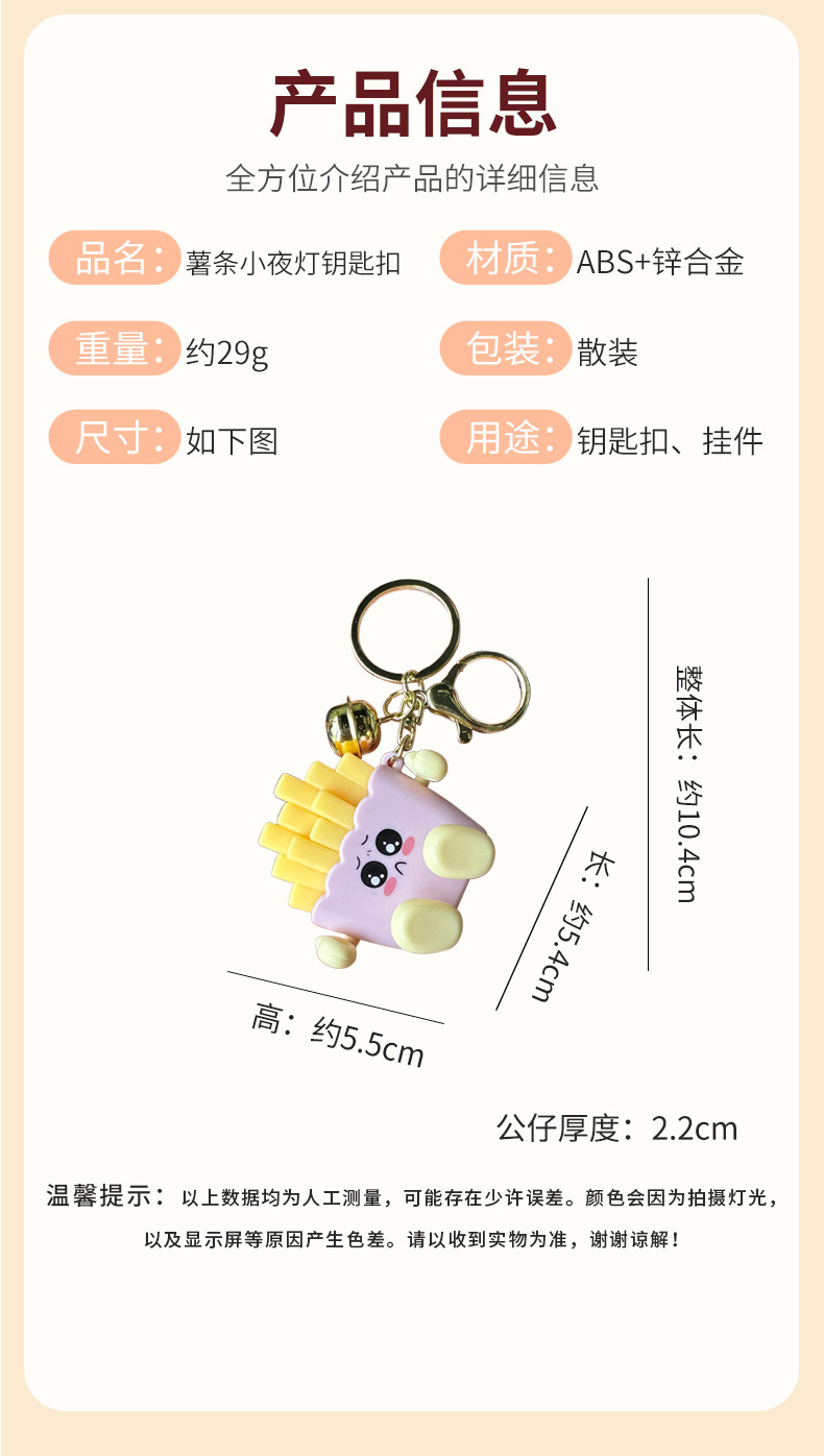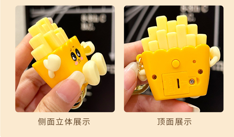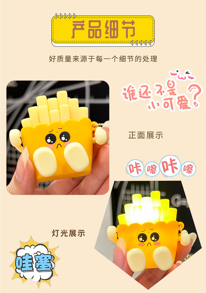 창조적 인 귀여운 빛나는 프랑스 프라이 키 체인 만화 압축 야간 조명 학생 절묘한 장난감 커플 가방 펜던트