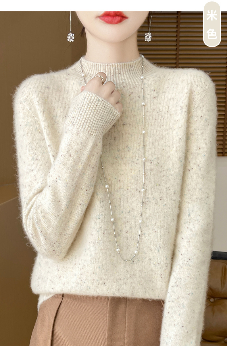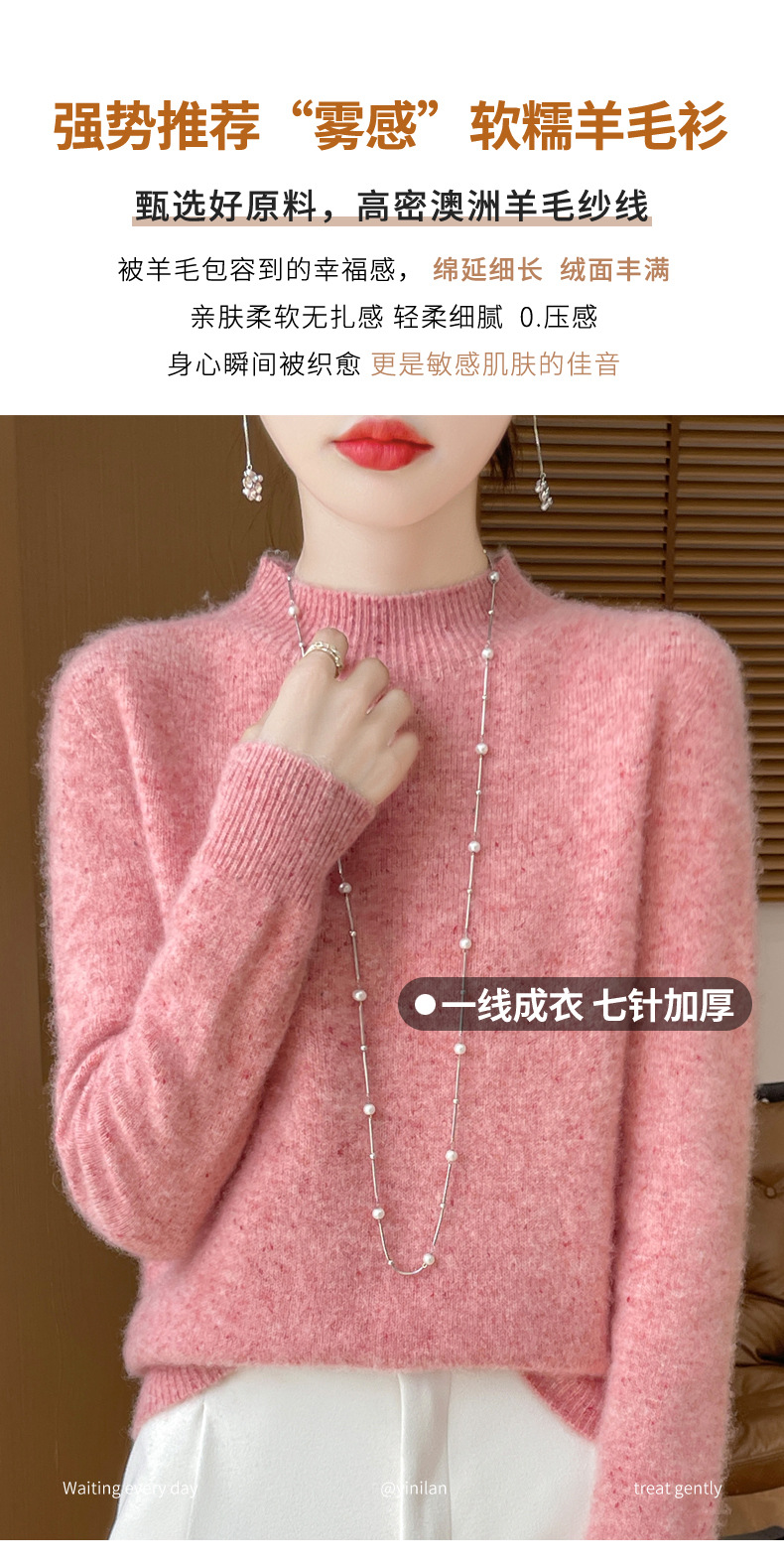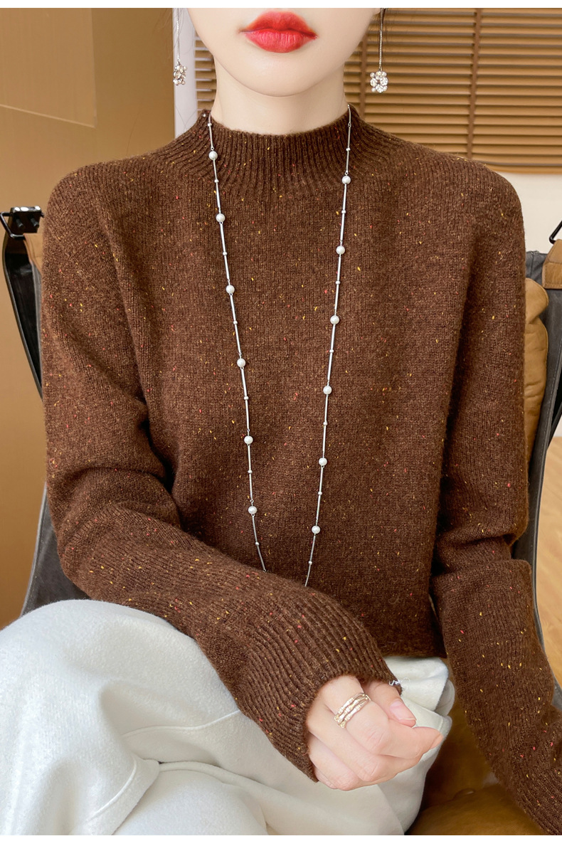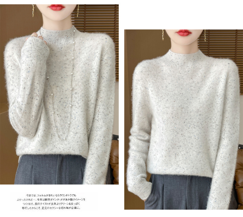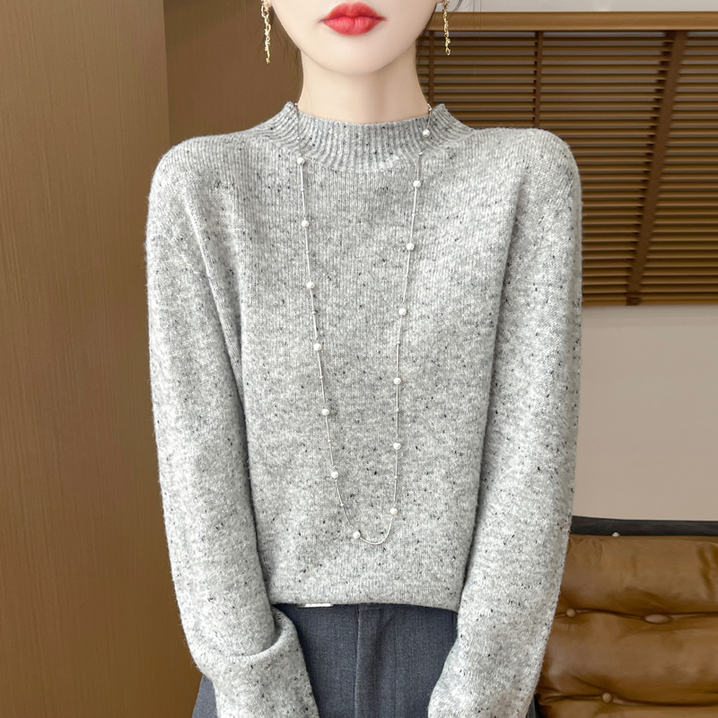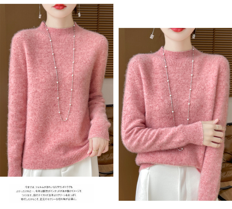 2024 새로운 도착 100 양모 스웨터 여성의 가을 및 겨울 반쪽 터틀넥베이스 셔츠 스타일 느슨한 캐시미어 스웨터
