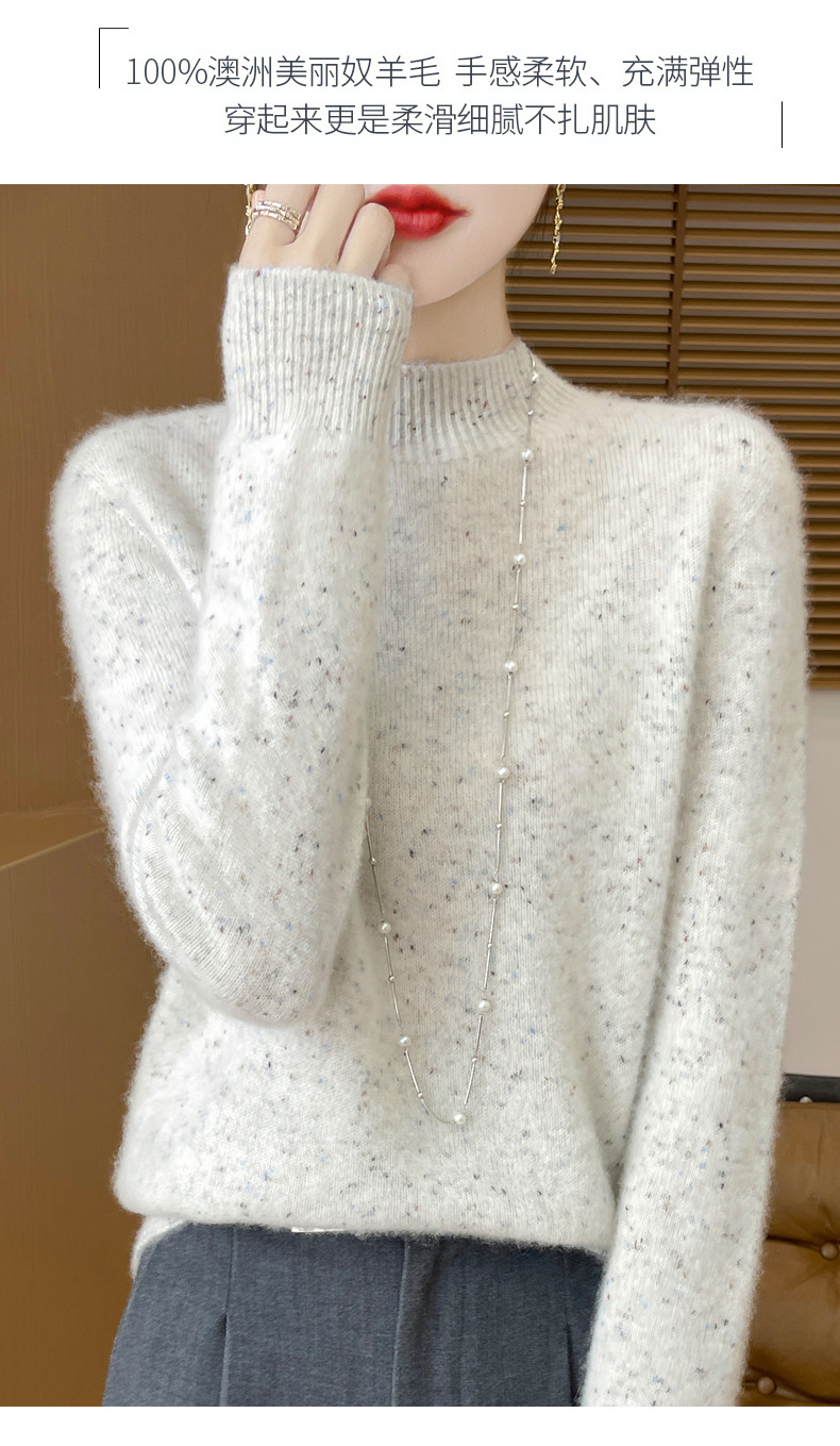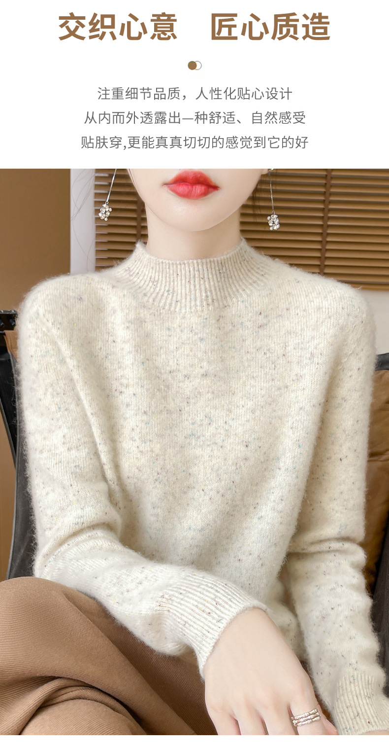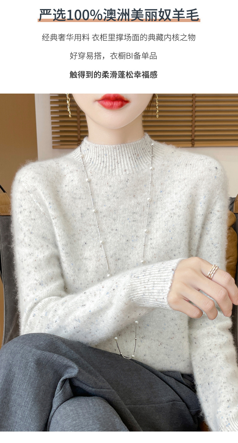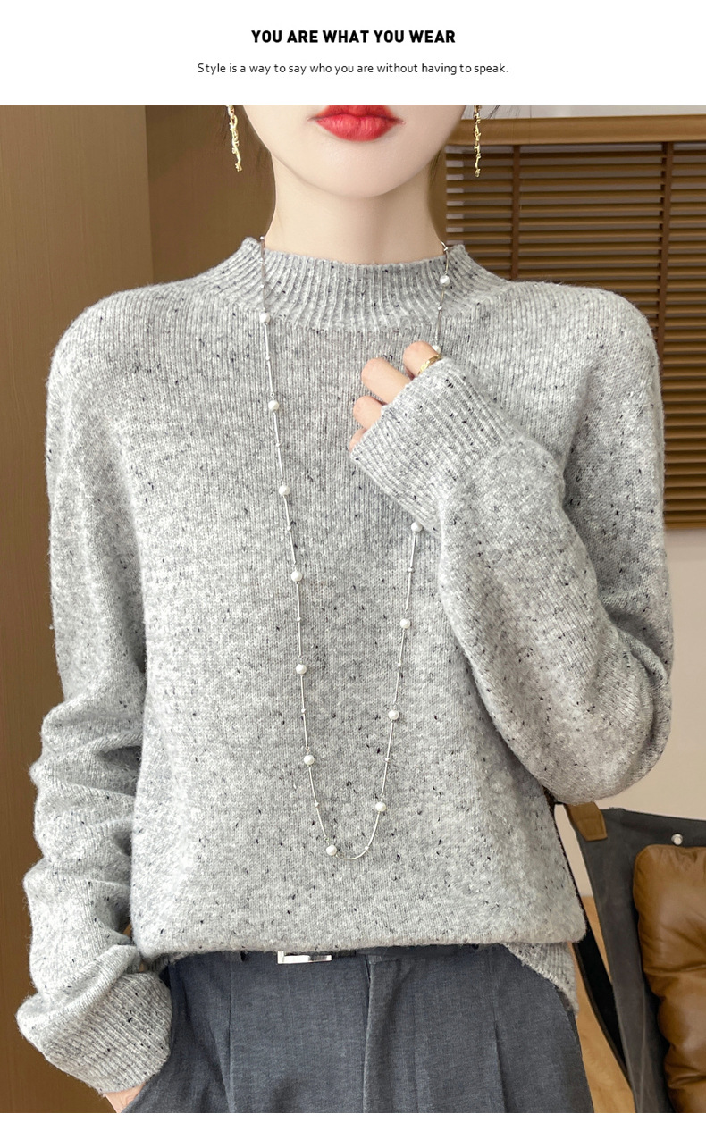 2024 새로운 도착 100 양모 스웨터 여성의 가을 및 겨울 반쪽 터틀넥베이스 셔츠 스타일 느슨한 캐시미어 스웨터
