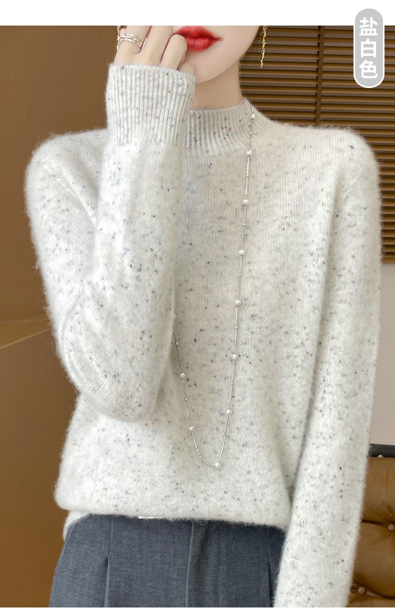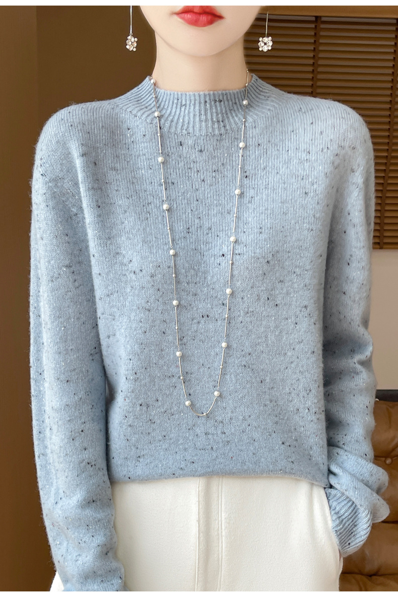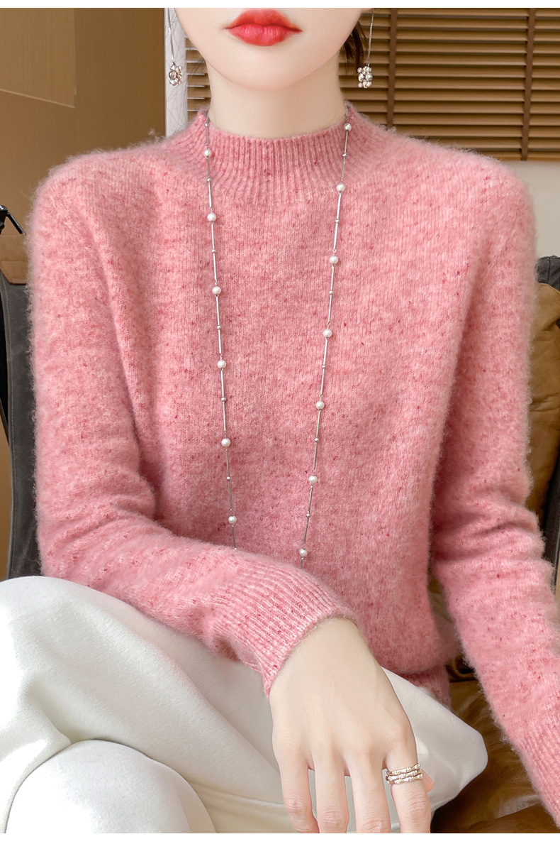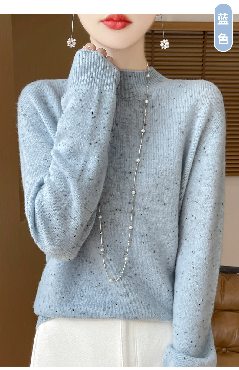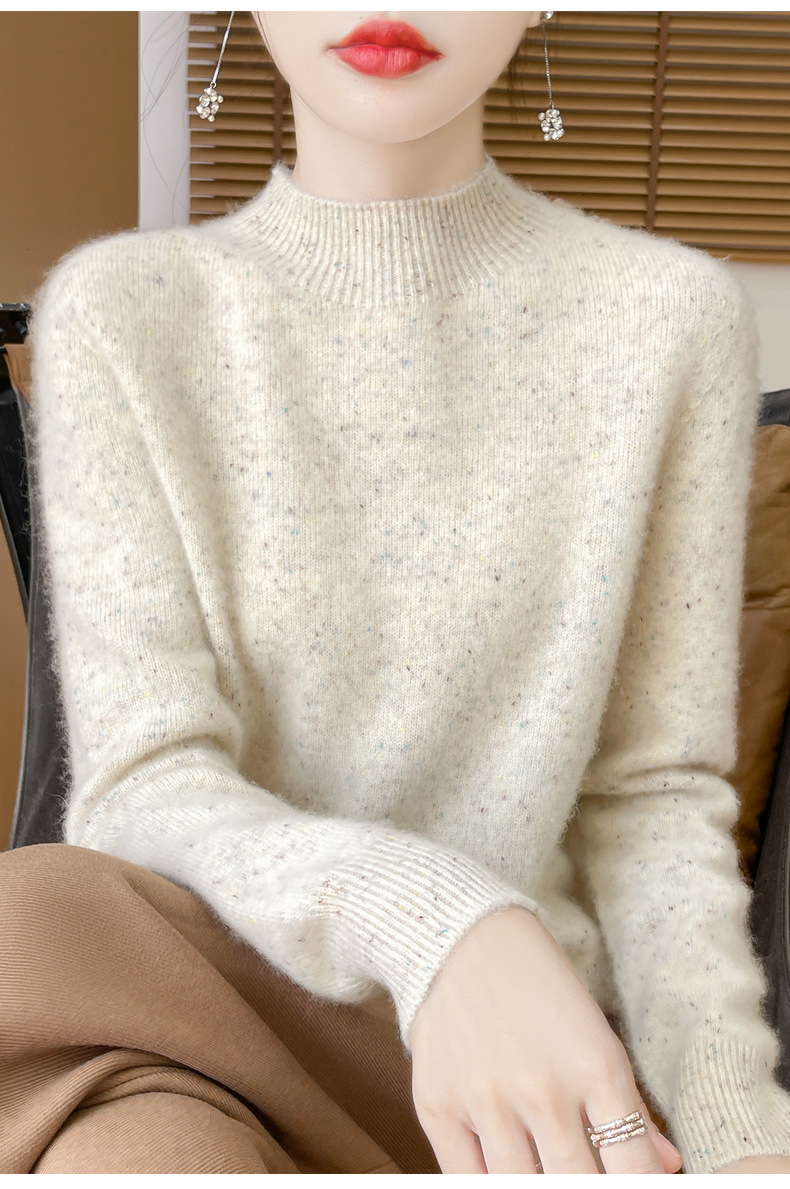 2024 새로운 도착 100 양모 스웨터 여성의 가을 및 겨울 반쪽 터틀넥베이스 셔츠 스타일 느슨한 캐시미어 스웨터