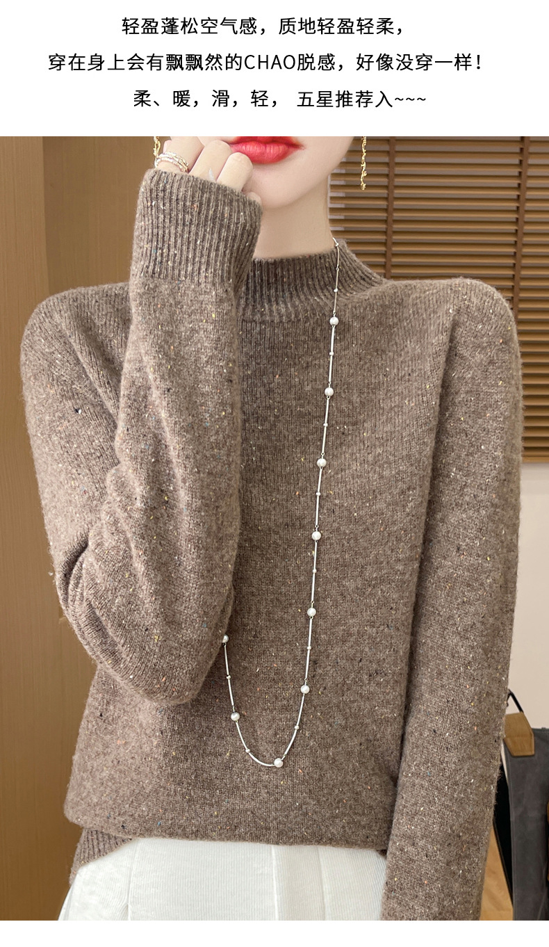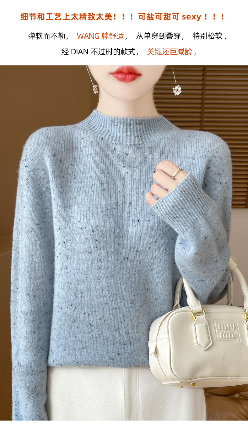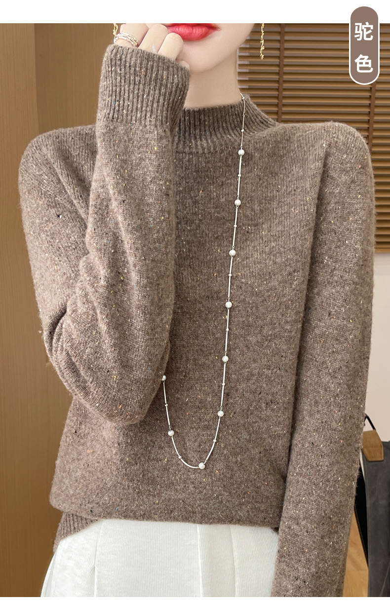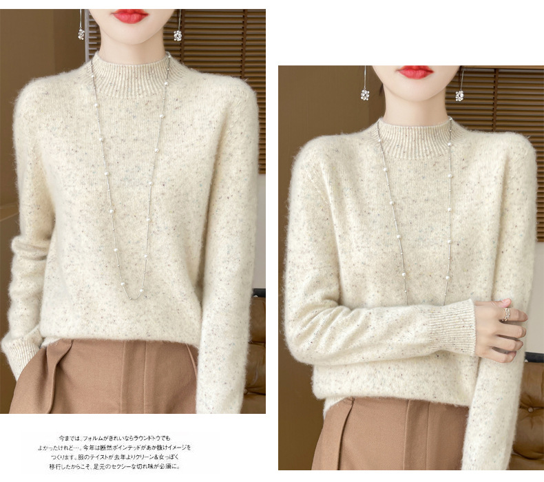 2024 새로운 도착 100 양모 스웨터 여성의 가을 및 겨울 반쪽 터틀넥베이스 셔츠 스타일 느슨한 캐시미어 스웨터스토어 가기
