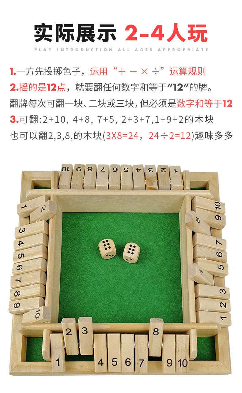 • 녹색 모델 "양면에 순수한 숫자" + 통나무 주사위 8개