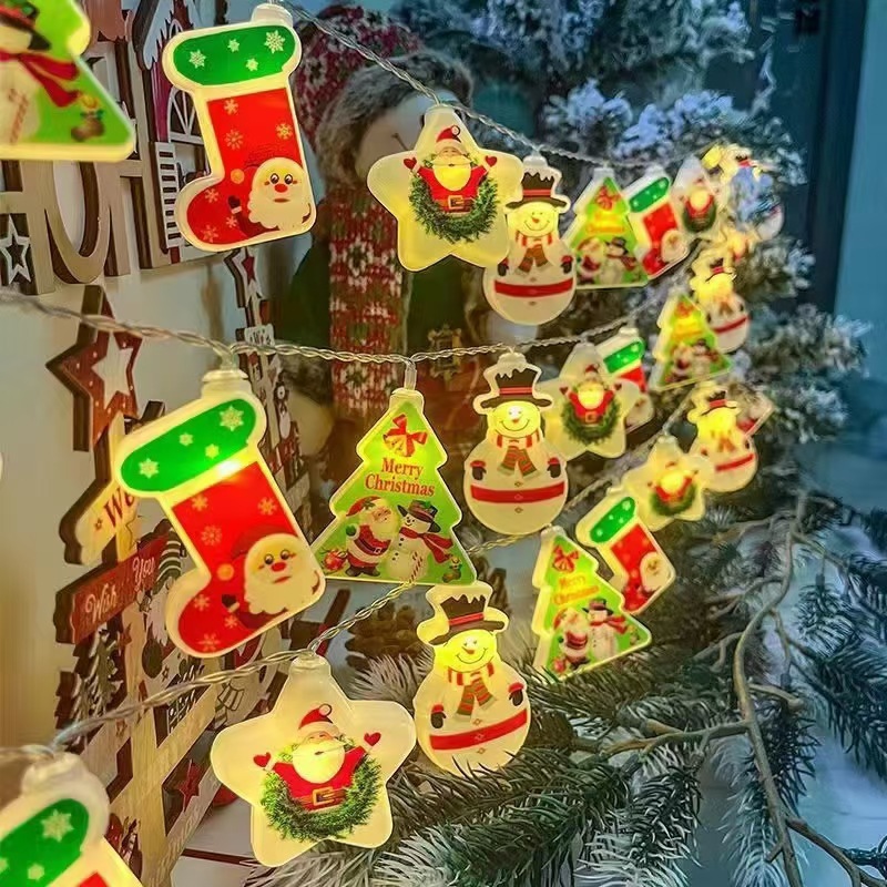 LED 크리스마스 장식 조명 스트링 눈사람 산타클로스 크리스마스 트리 지팡이 등대 플래시 USB 조명 크리스마스 분위기