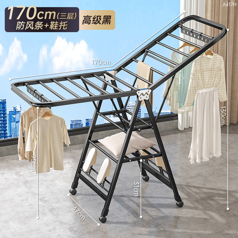 • 1.7m 프리미엄 블랙|[3겹] 건조 + 방풍 스트립 + 신발 지지대