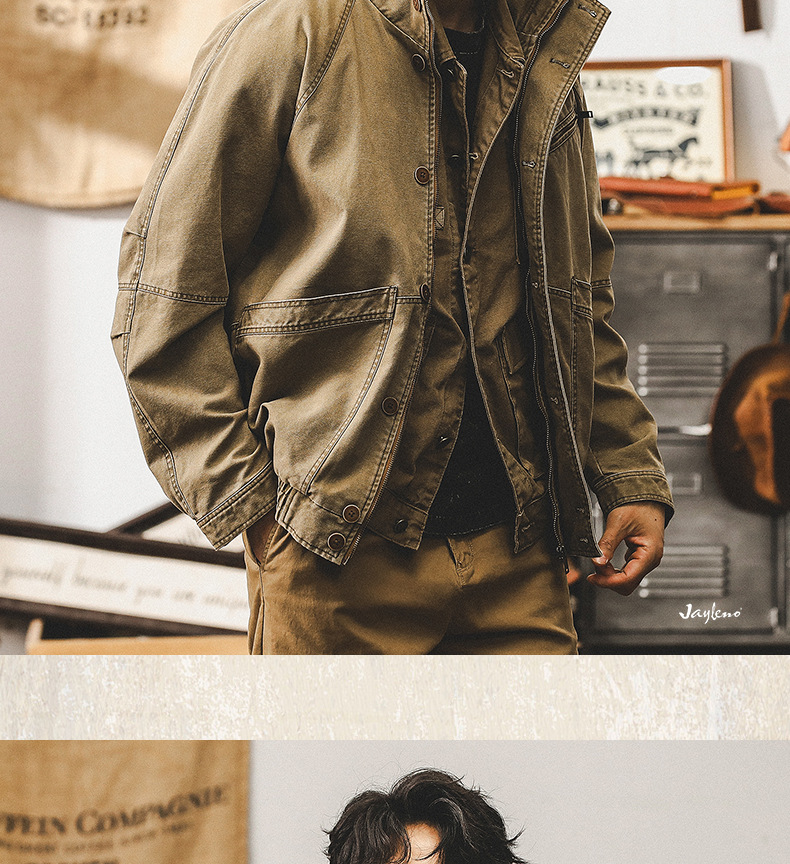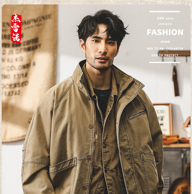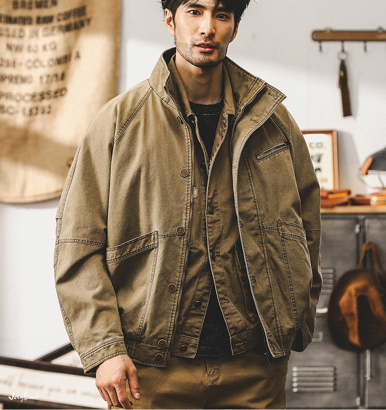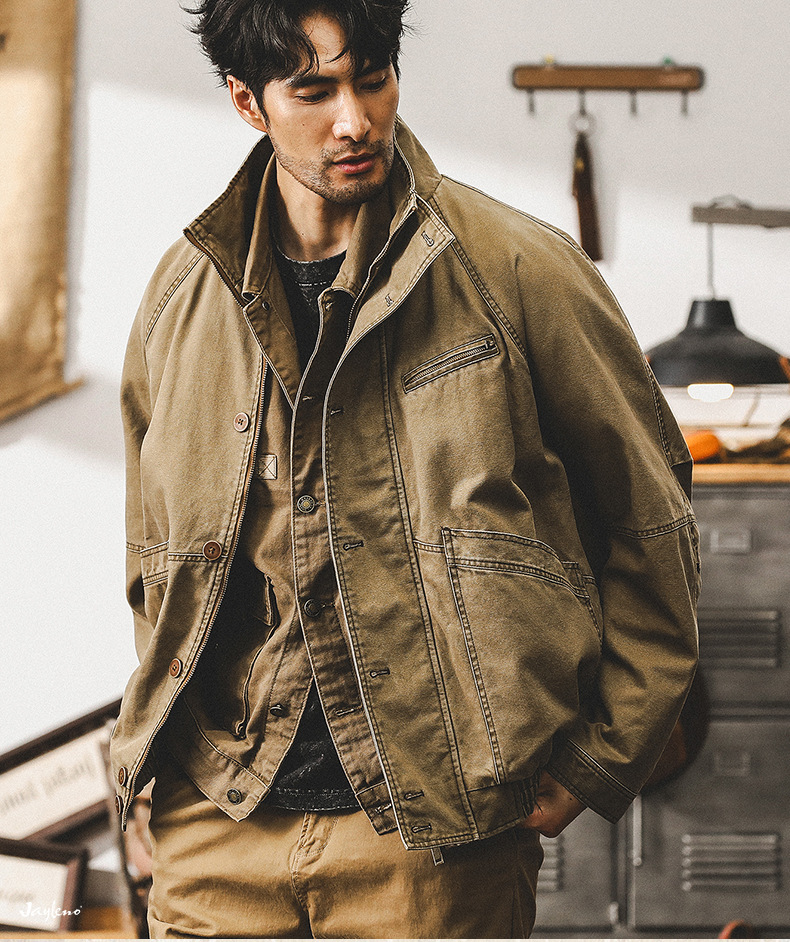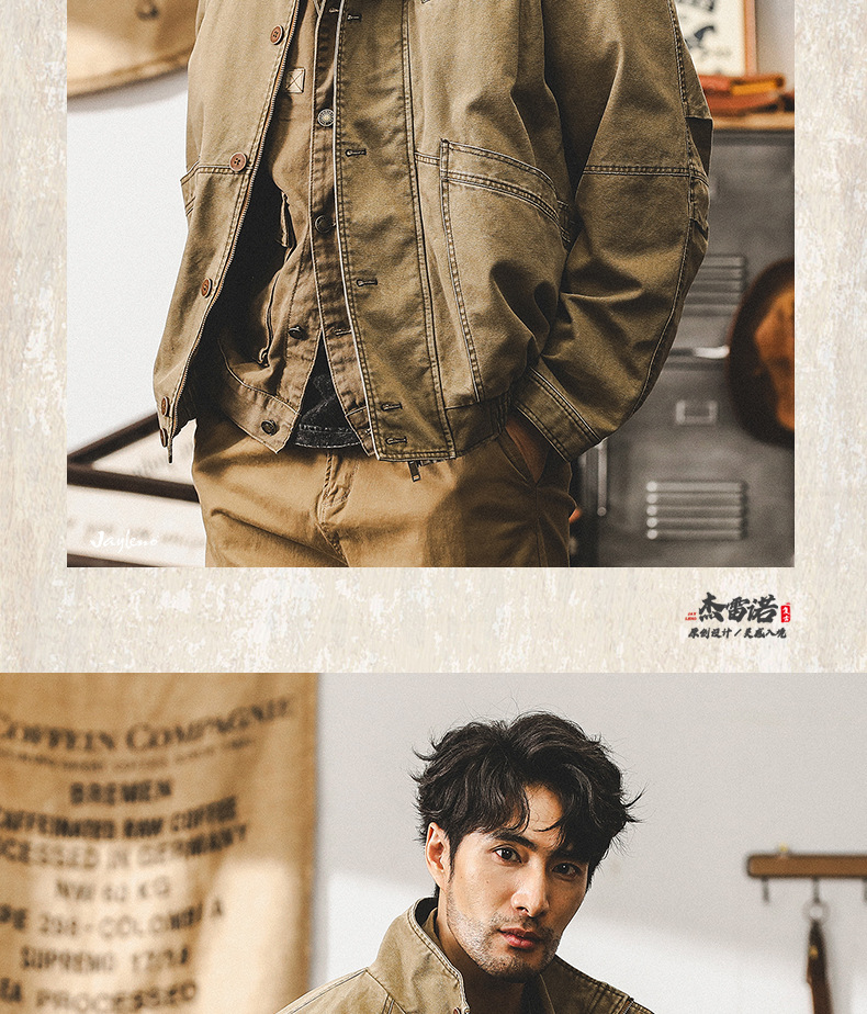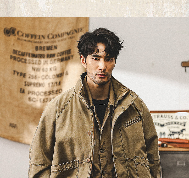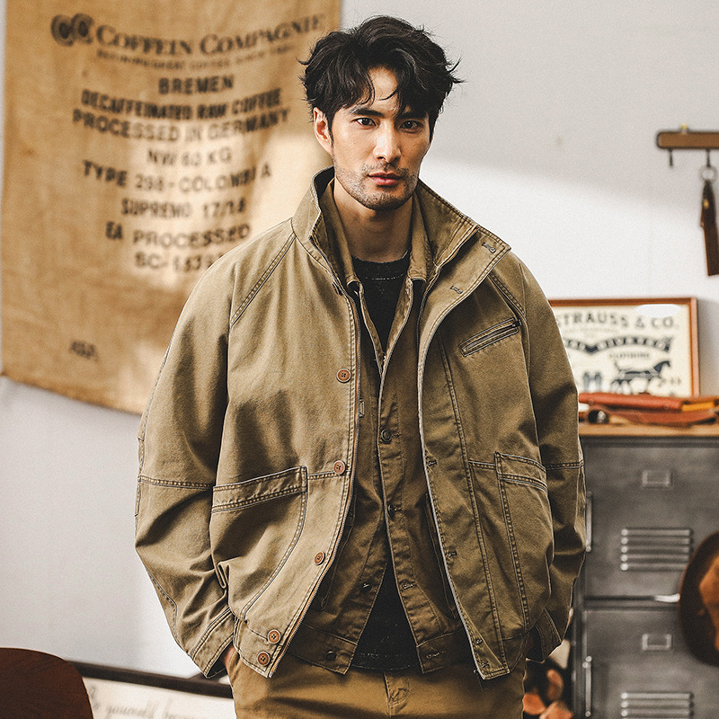 미국 빈티지 카키 툴링 재킷 남자의 봄과 가을 유행 브랜드 루즈 워시 터프 가이 사냥 캐주얼 자켓스토어 가기
