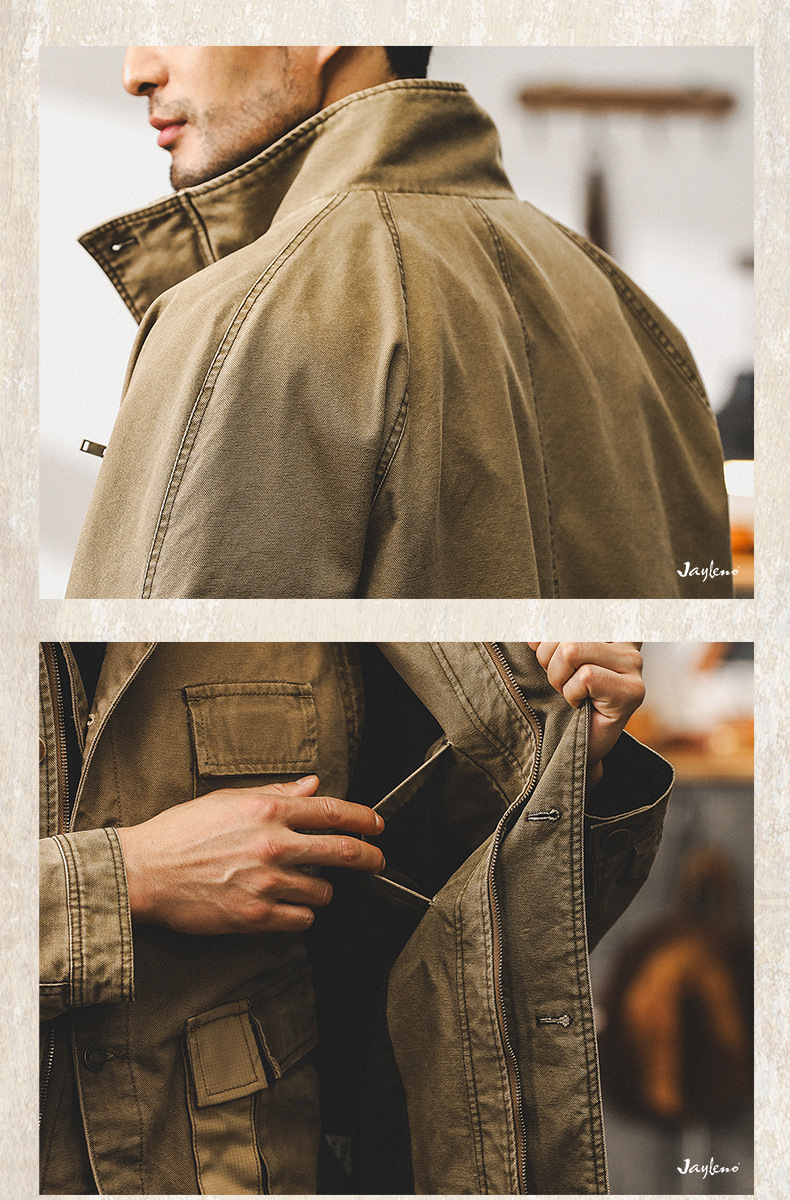미국 빈티지 카키 툴링 재킷 남자의 봄과 가을 유행 브랜드 루즈 워시 터프 가이 사냥 캐주얼 자켓
