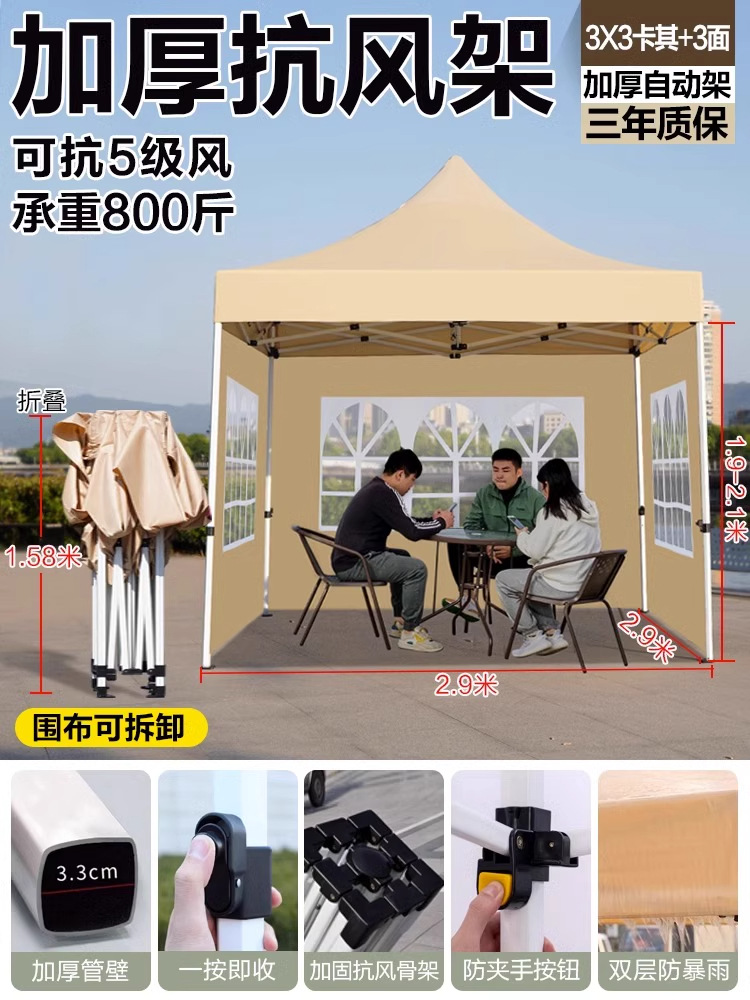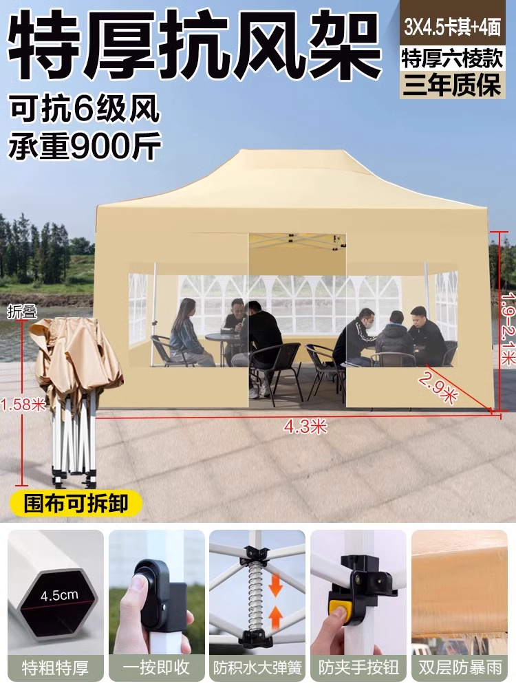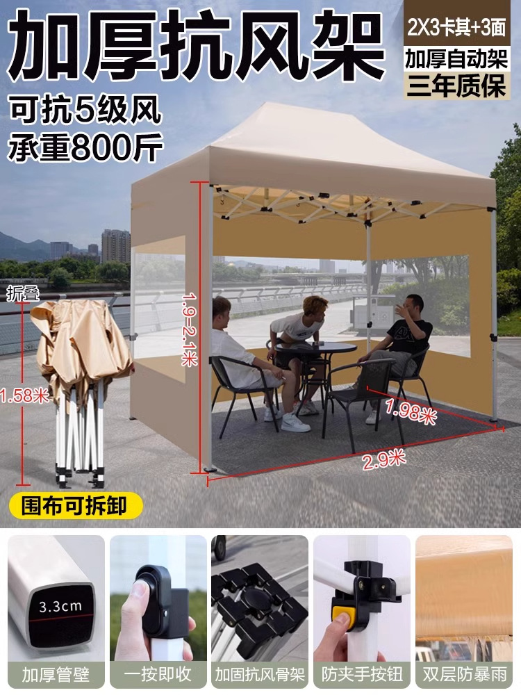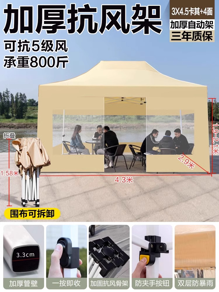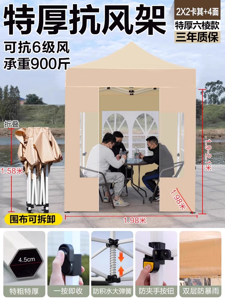 야외 시장 판매용 사각 텐트, 방풍 및 보온 기능의 편리한 접이식 네발 우산형 텐트스토어 가기