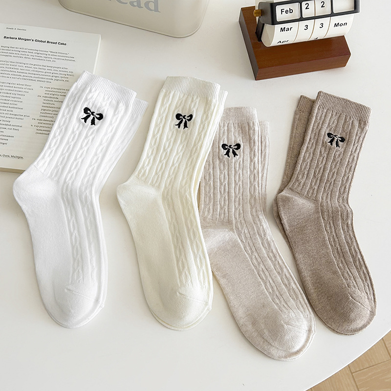 양말 여성 미드 튜브 양말 봄과 가을 더블 바늘 트위스트 자수 활 패션 Ins 트렌디 한 한국 스타일 여성 스택 양말스토어 가기