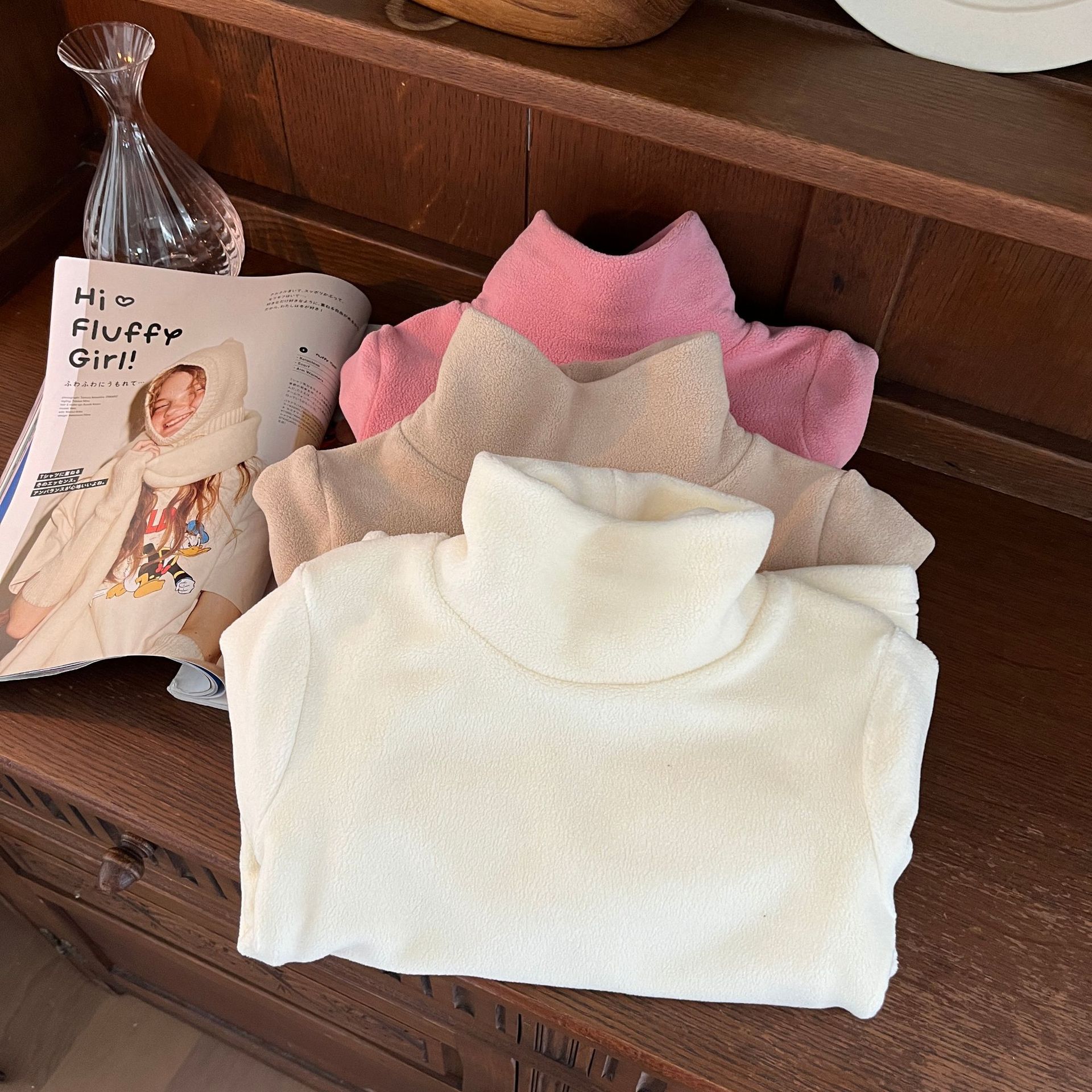 코튼 멀티 미터 소녀 기모 바닥 셔츠 2024 가을과 겨울 새로운 어린이 외국 스타일의 이너 코트 아기 긴팔 티셔츠