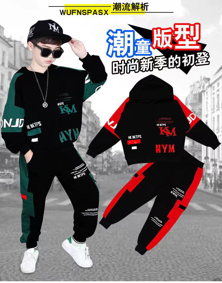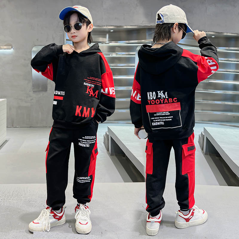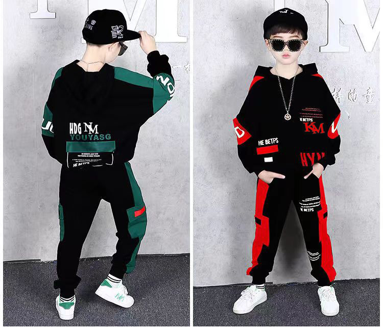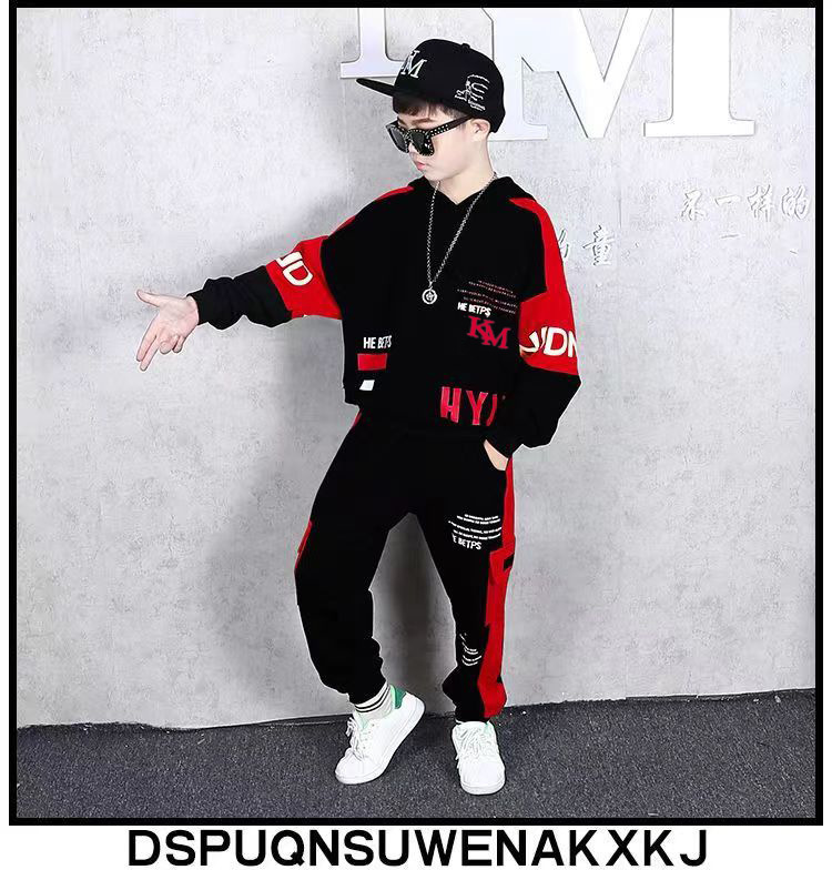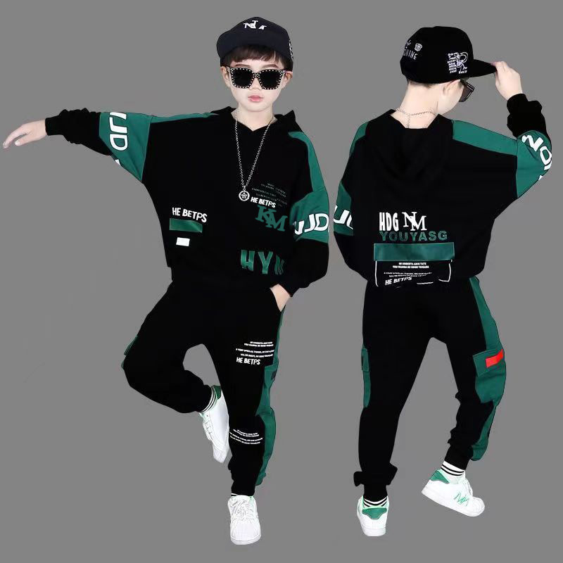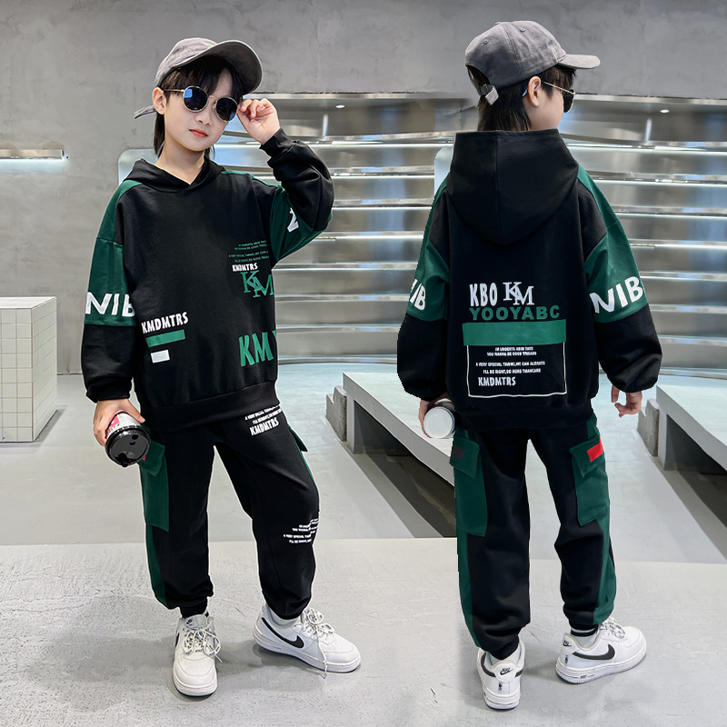 24 가을과 겨울 새로운 어린이 후드 스웨트 바지 세트 대형 소년 편지 인쇄 캐주얼 스포츠 투피스 세트
