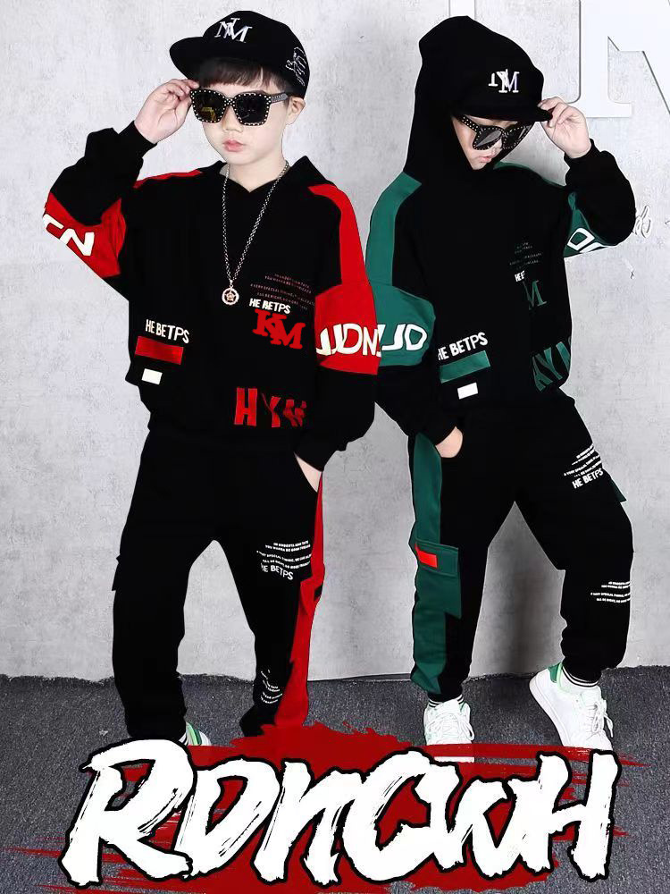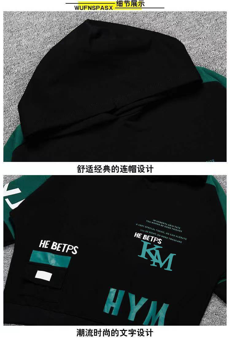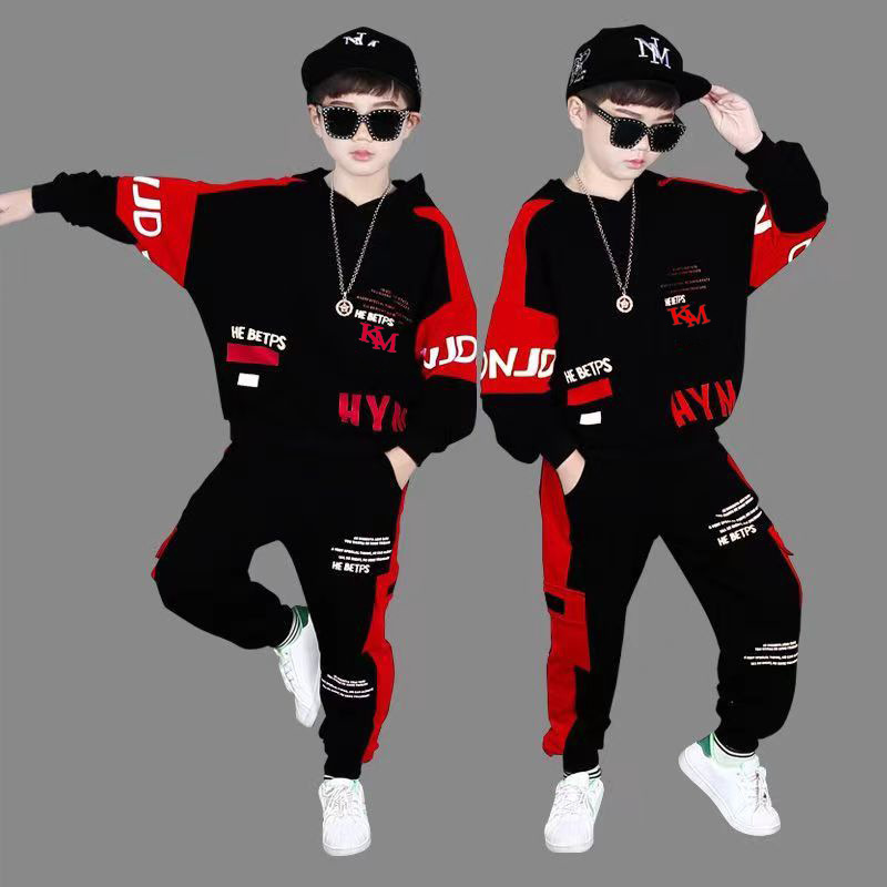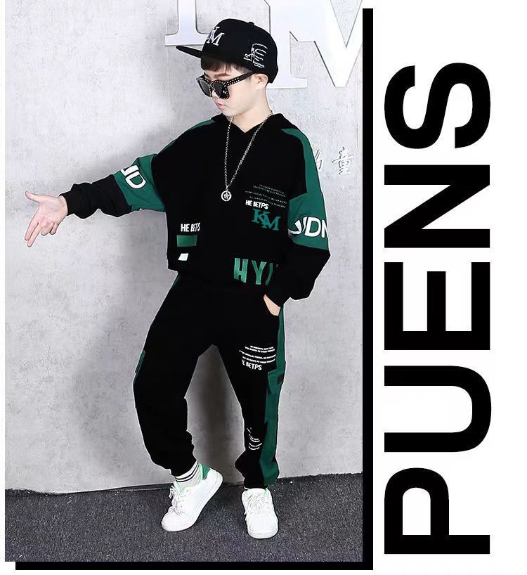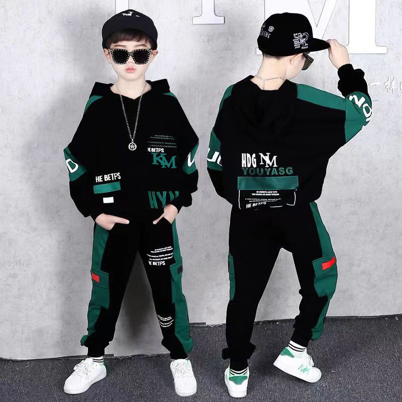 24 가을과 겨울 새로운 어린이 후드 스웨트 바지 세트 대형 소년 편지 인쇄 캐주얼 스포츠 투피스 세트