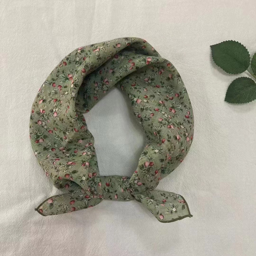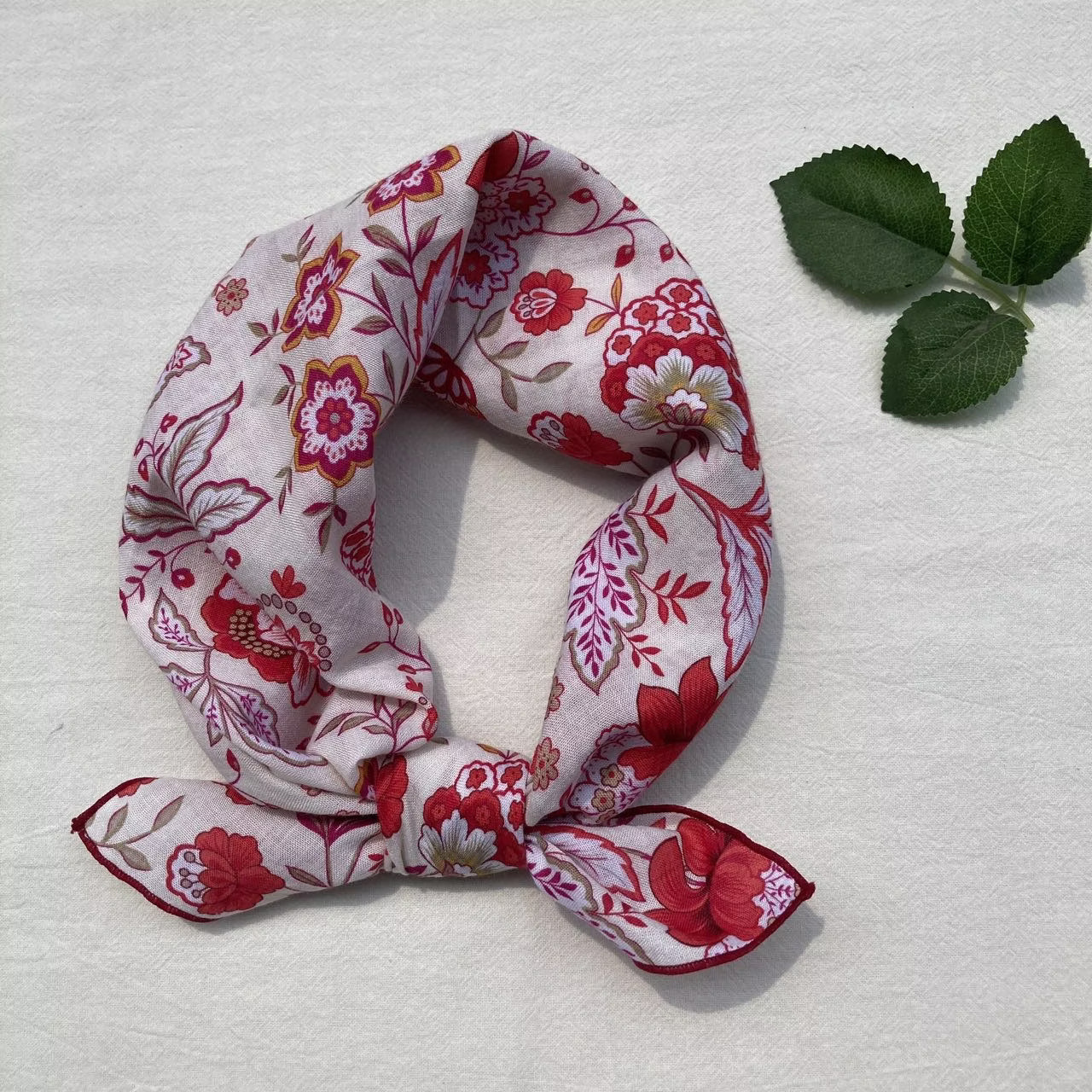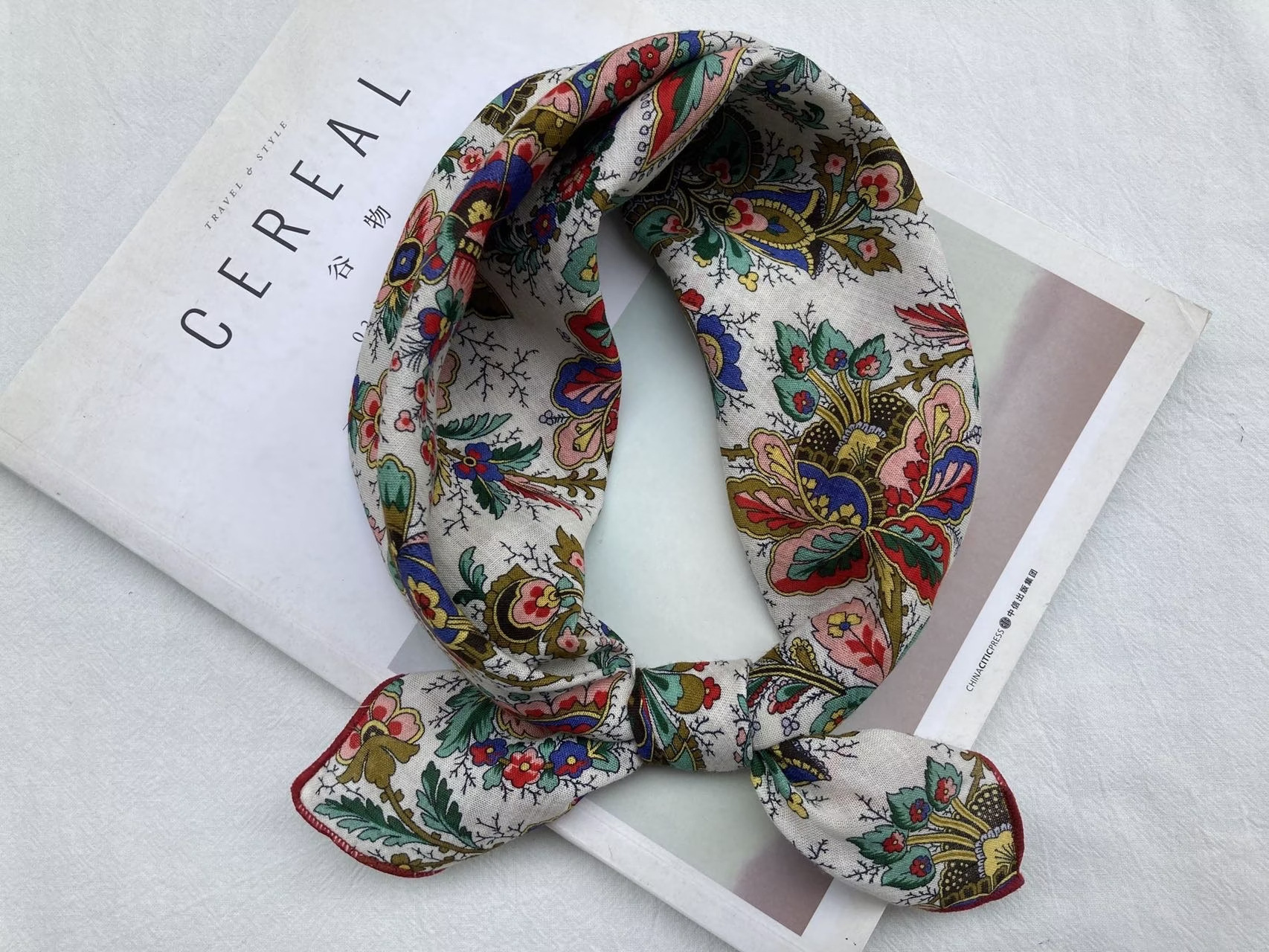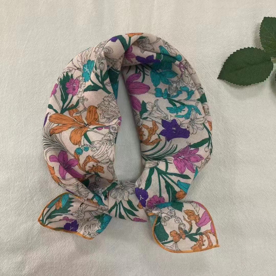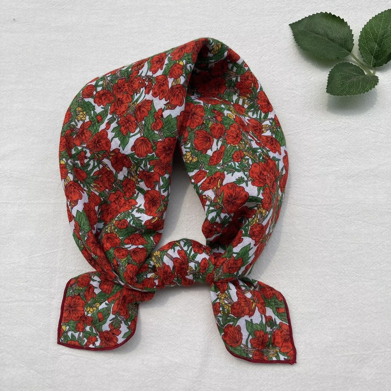 스카프 스카프 여성 원래 디자인 코튼 리넨 작은 광장 스카프 달콤한 목가적 인 꽃 스카프 경량 통기성 선스크린 헤드 스카프