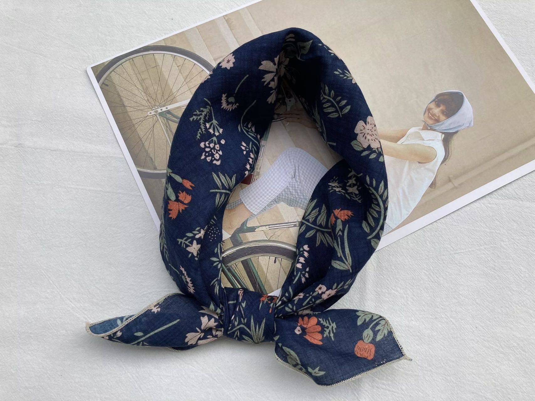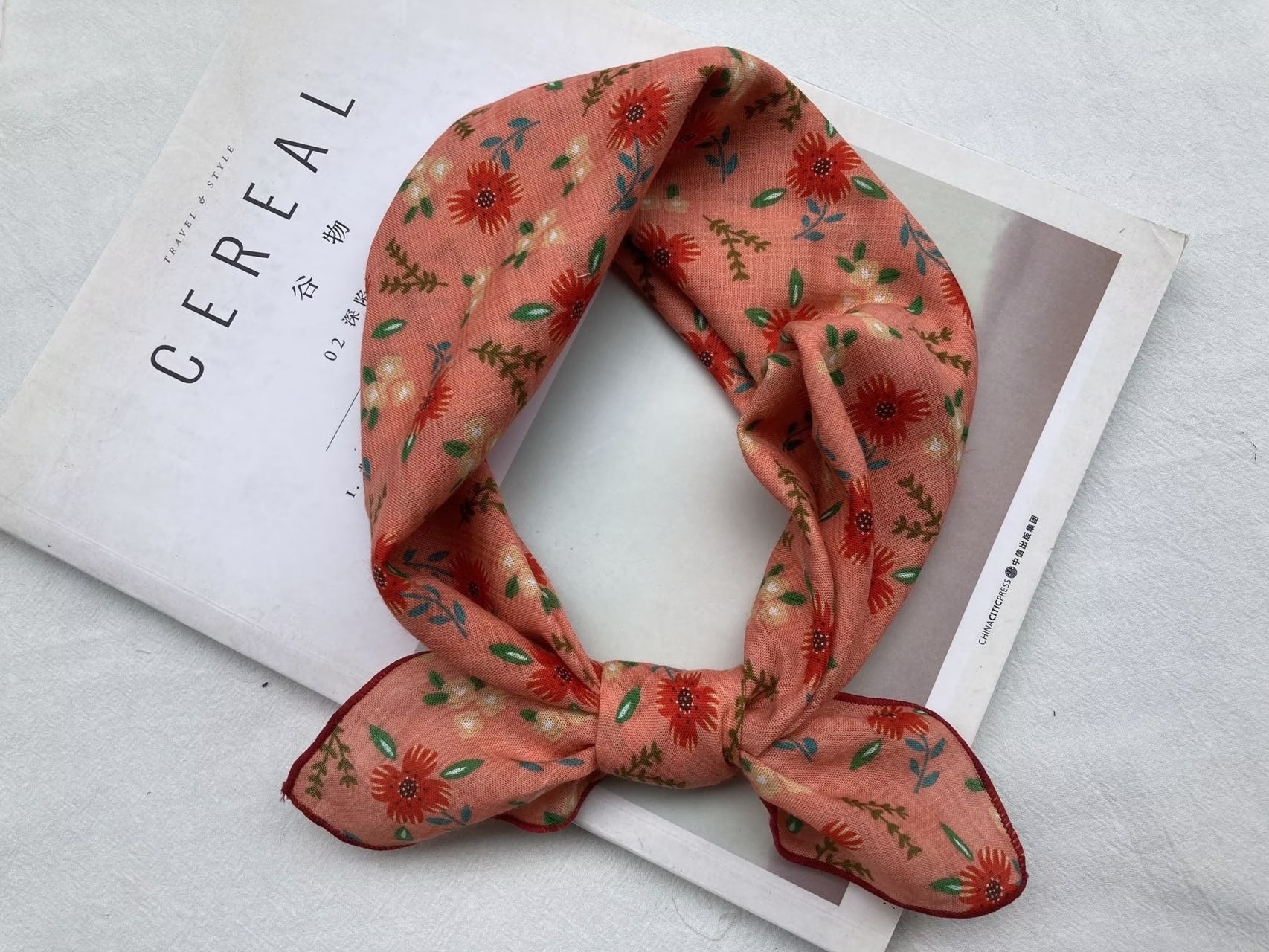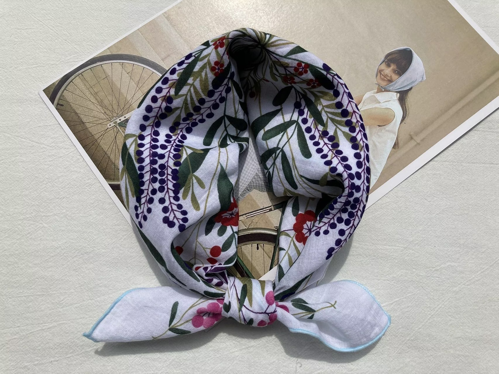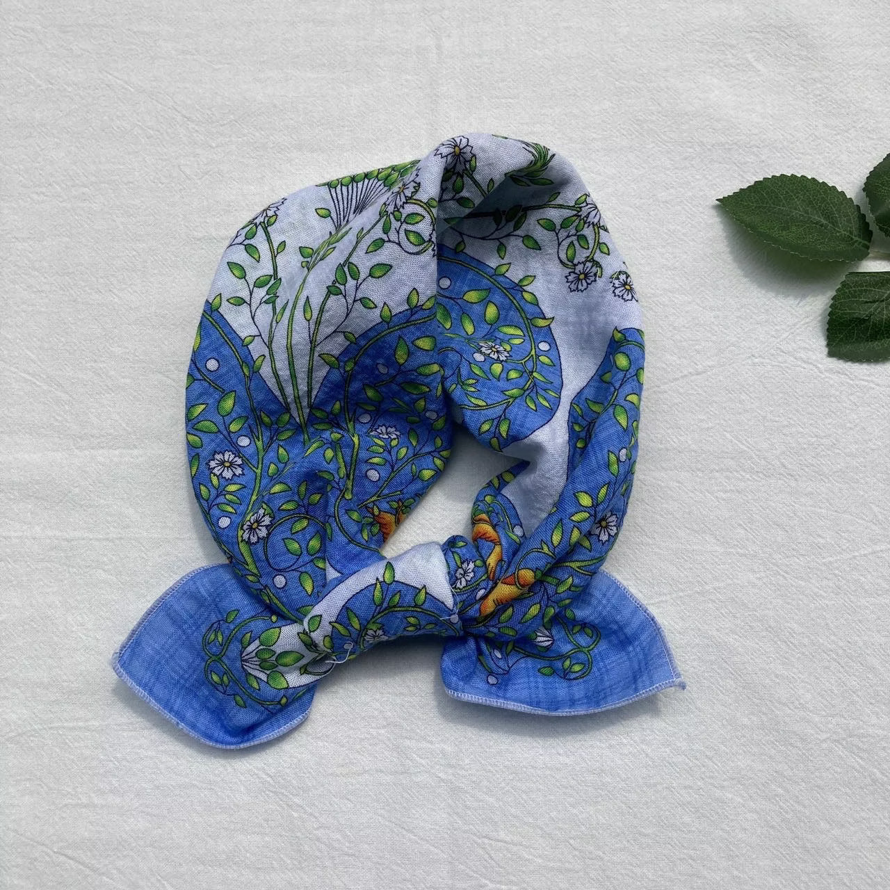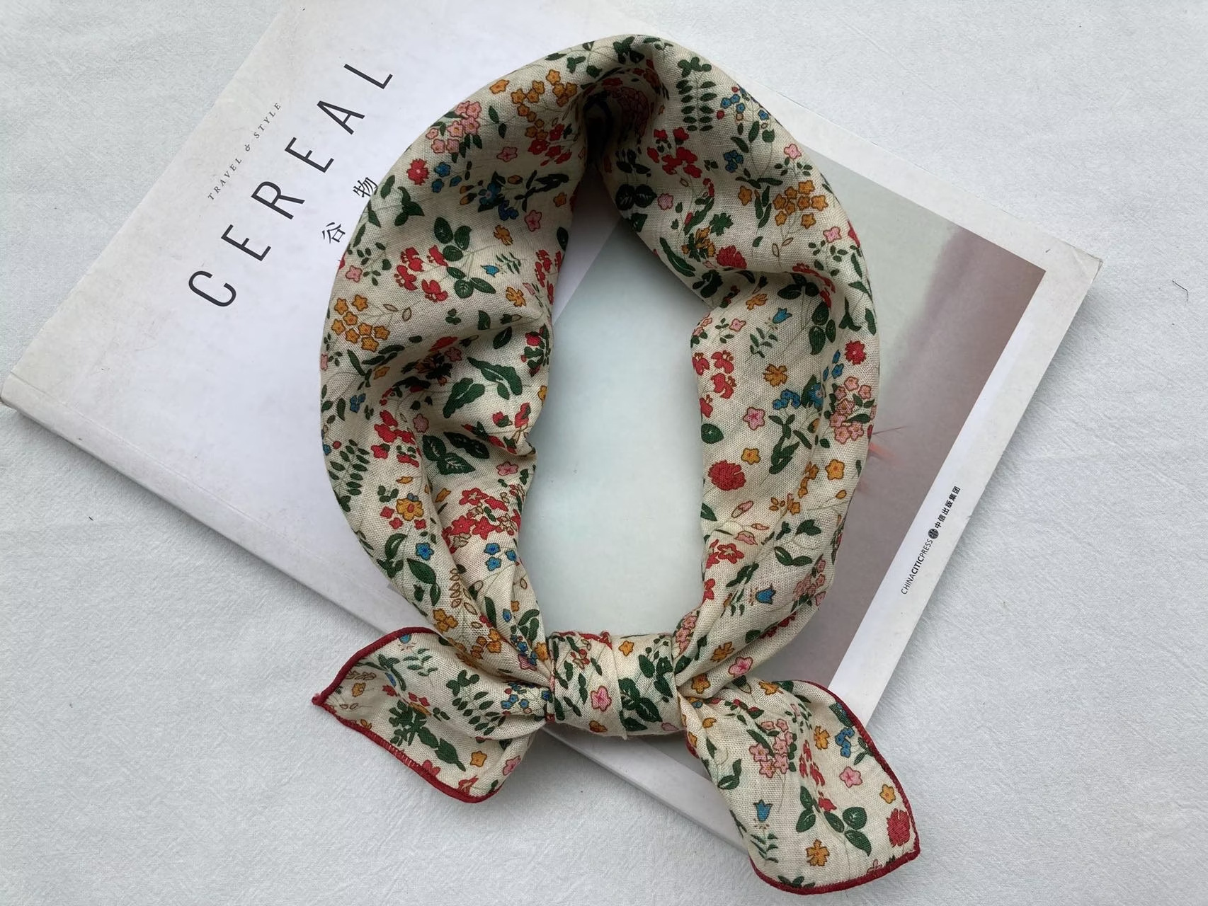스카프 스카프 여성 원래 디자인 코튼 리넨 작은 광장 스카프 달콤한 목가적 인 꽃 스카프 경량 통기성 선스크린 헤드 스카프