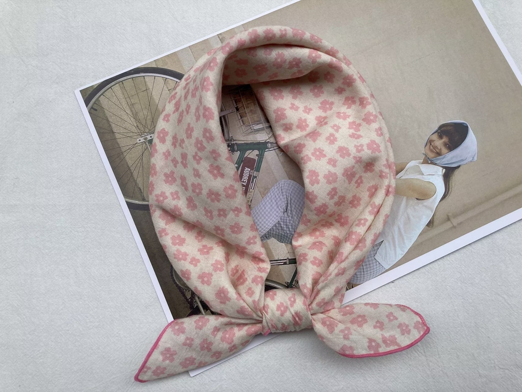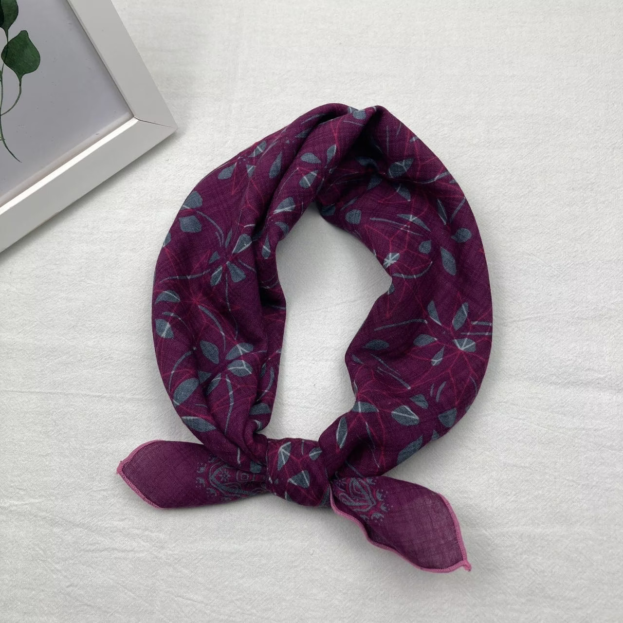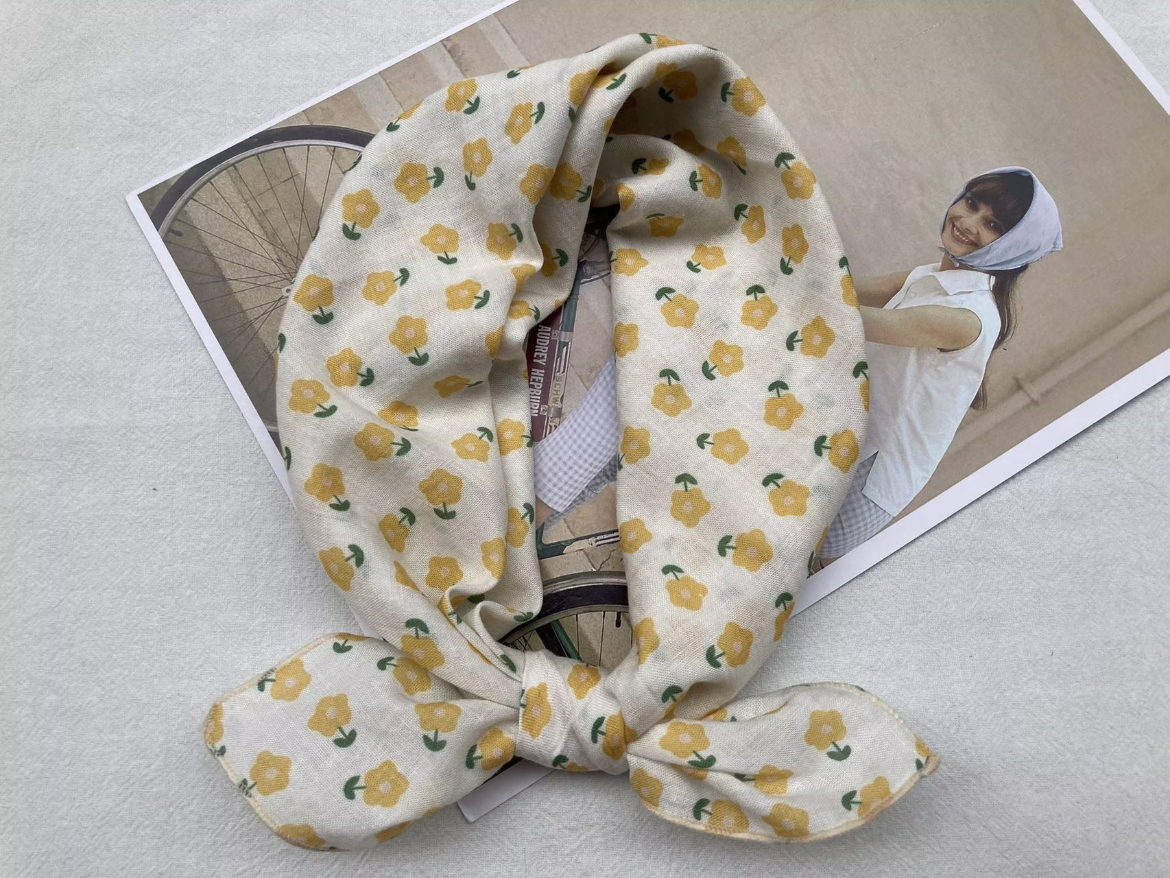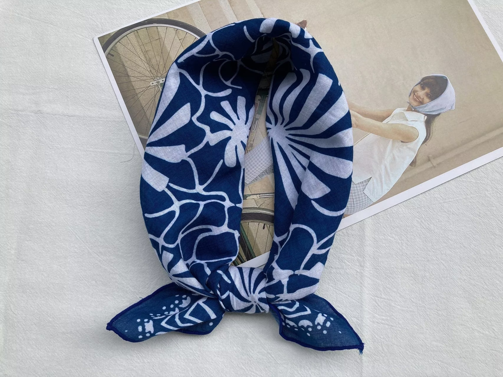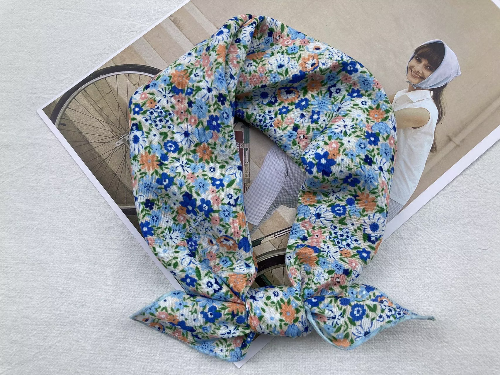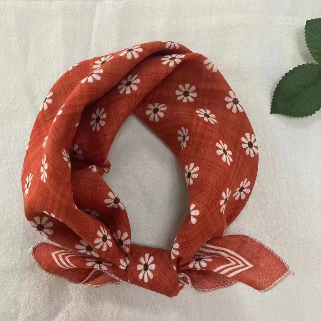 스카프 스카프 여성 원래 디자인 코튼 리넨 작은 광장 스카프 달콤한 목가적 인 꽃 스카프 경량 통기성 선스크린 헤드 스카프