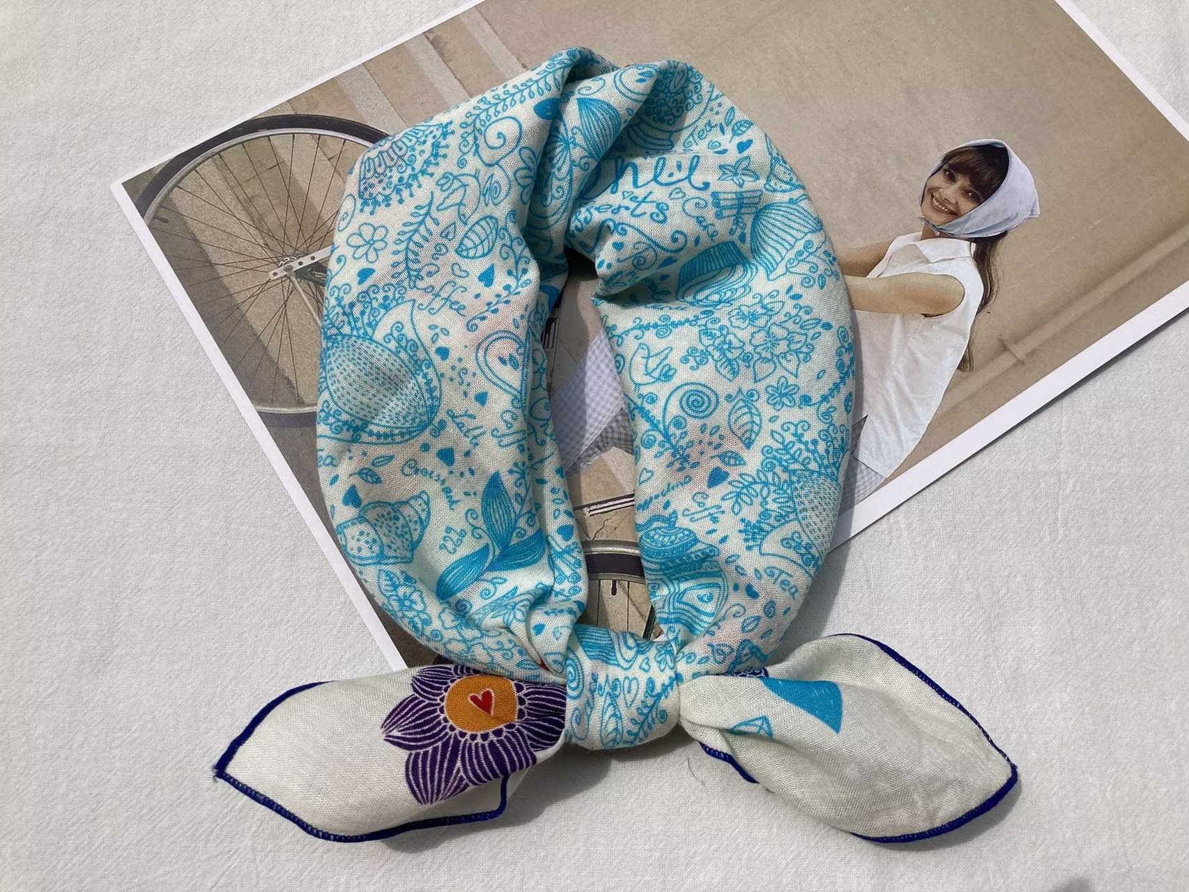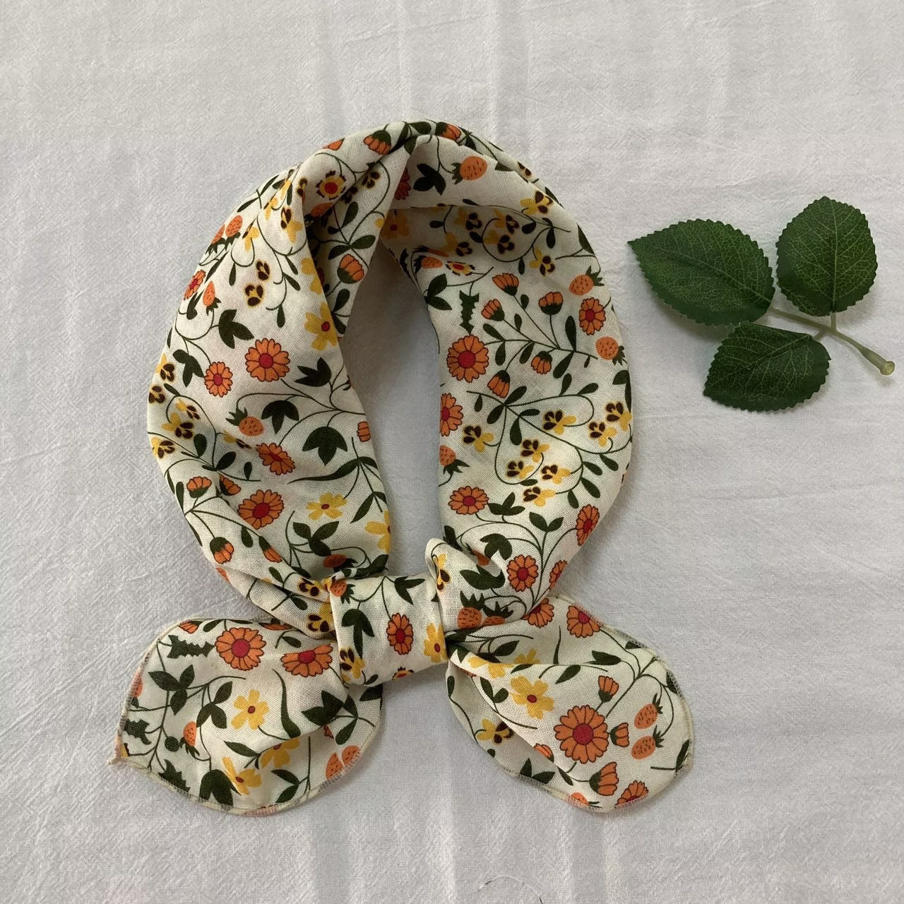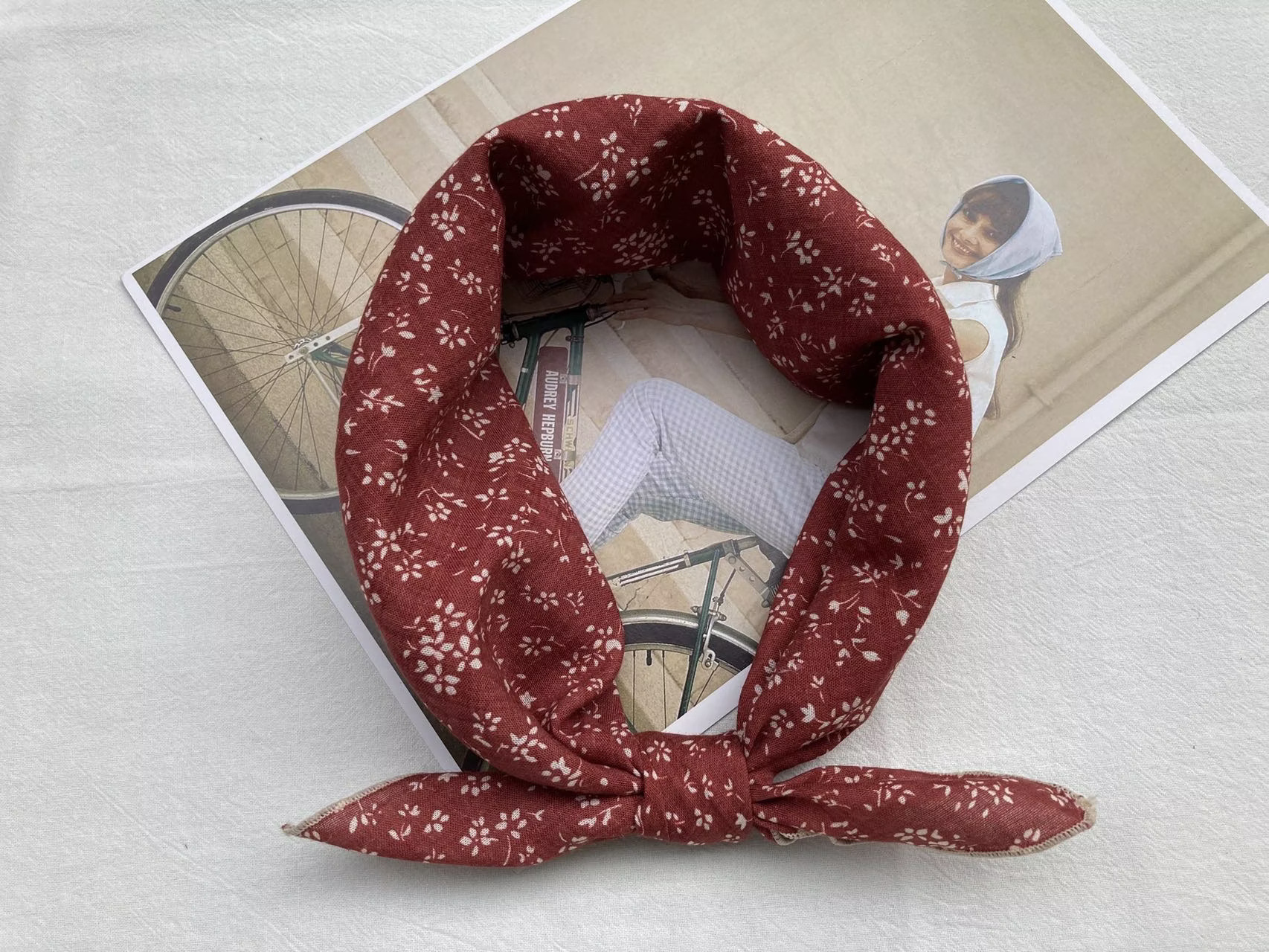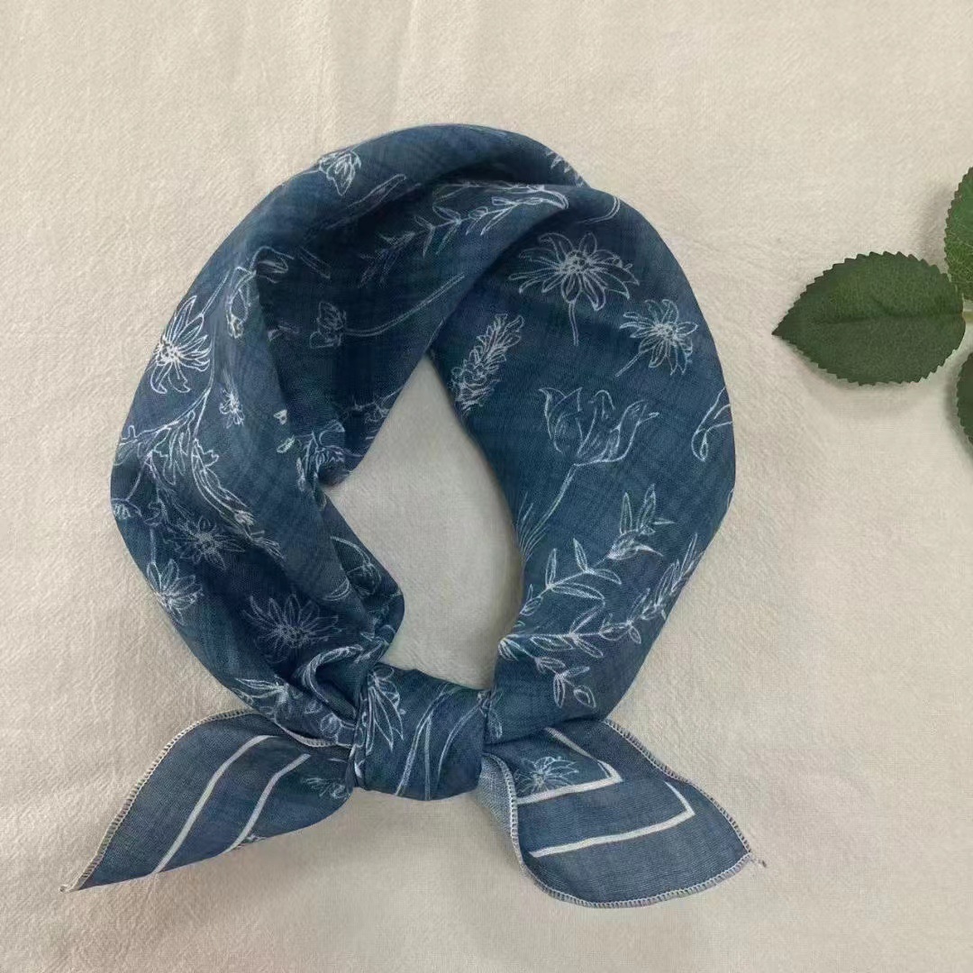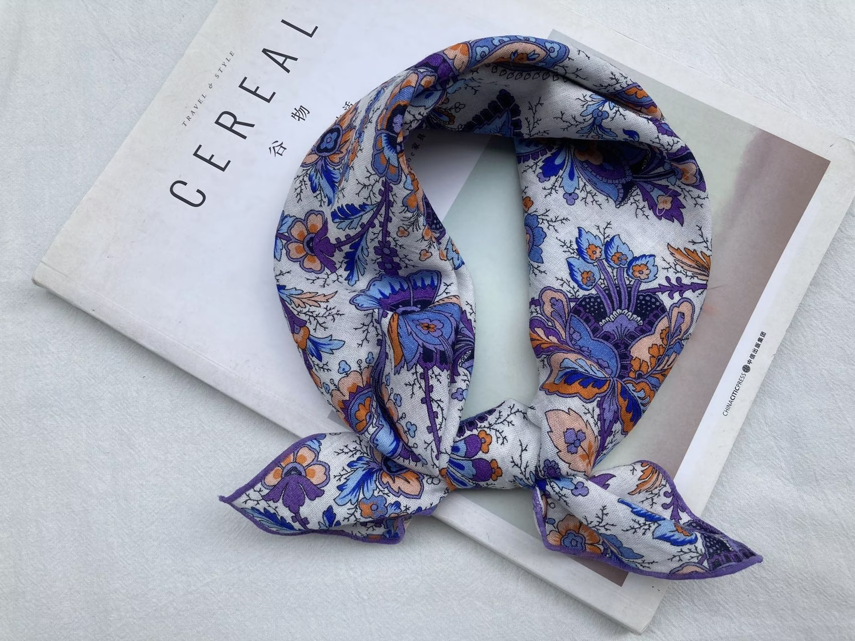 스카프 스카프 여성 원래 디자인 코튼 리넨 작은 광장 스카프 달콤한 목가적 인 꽃 스카프 경량 통기성 선스크린 헤드 스카프