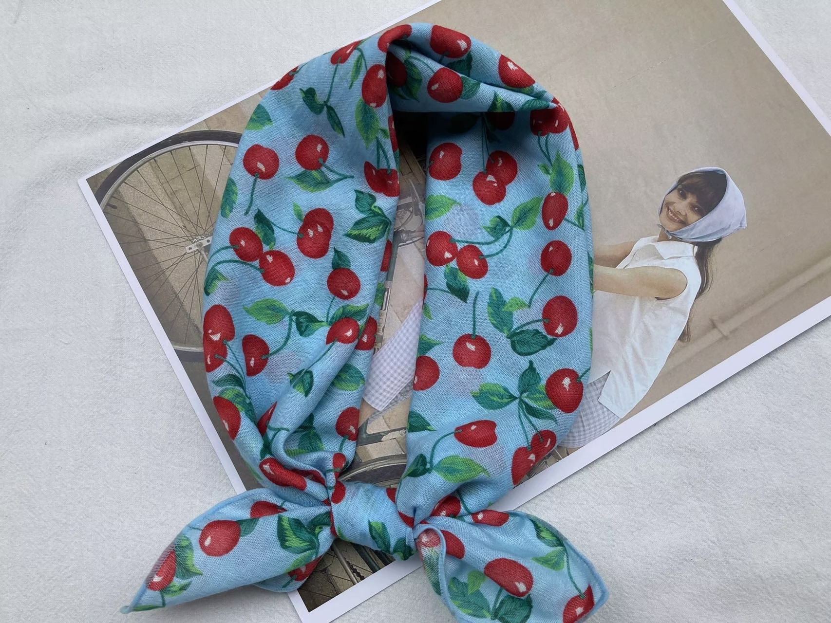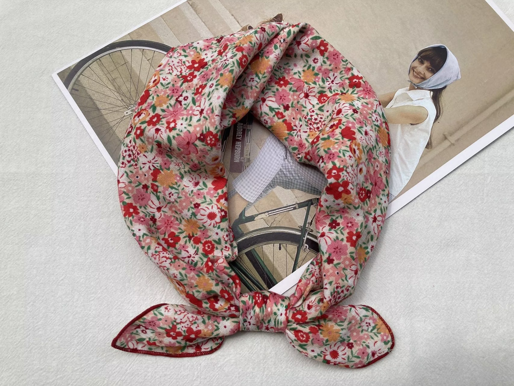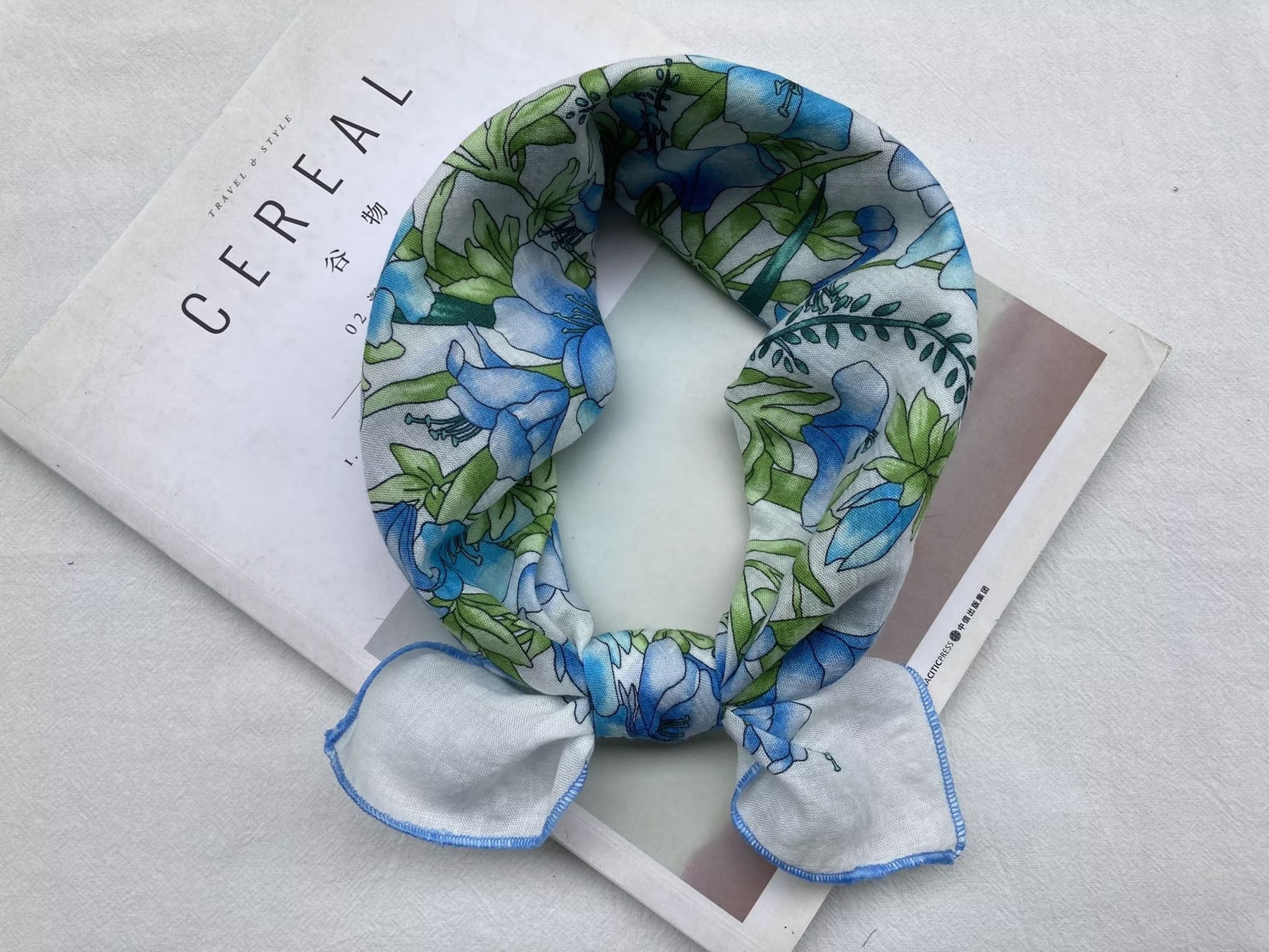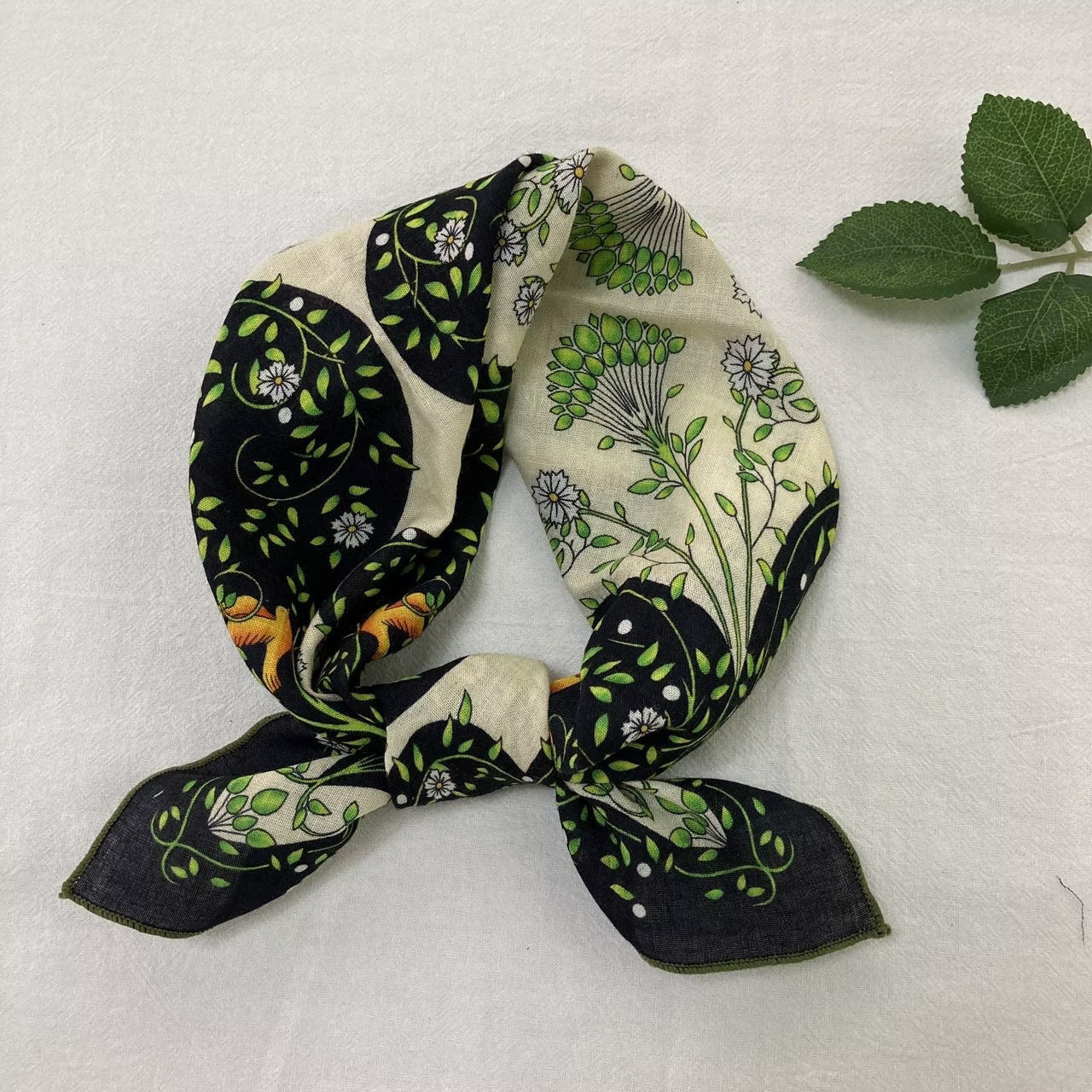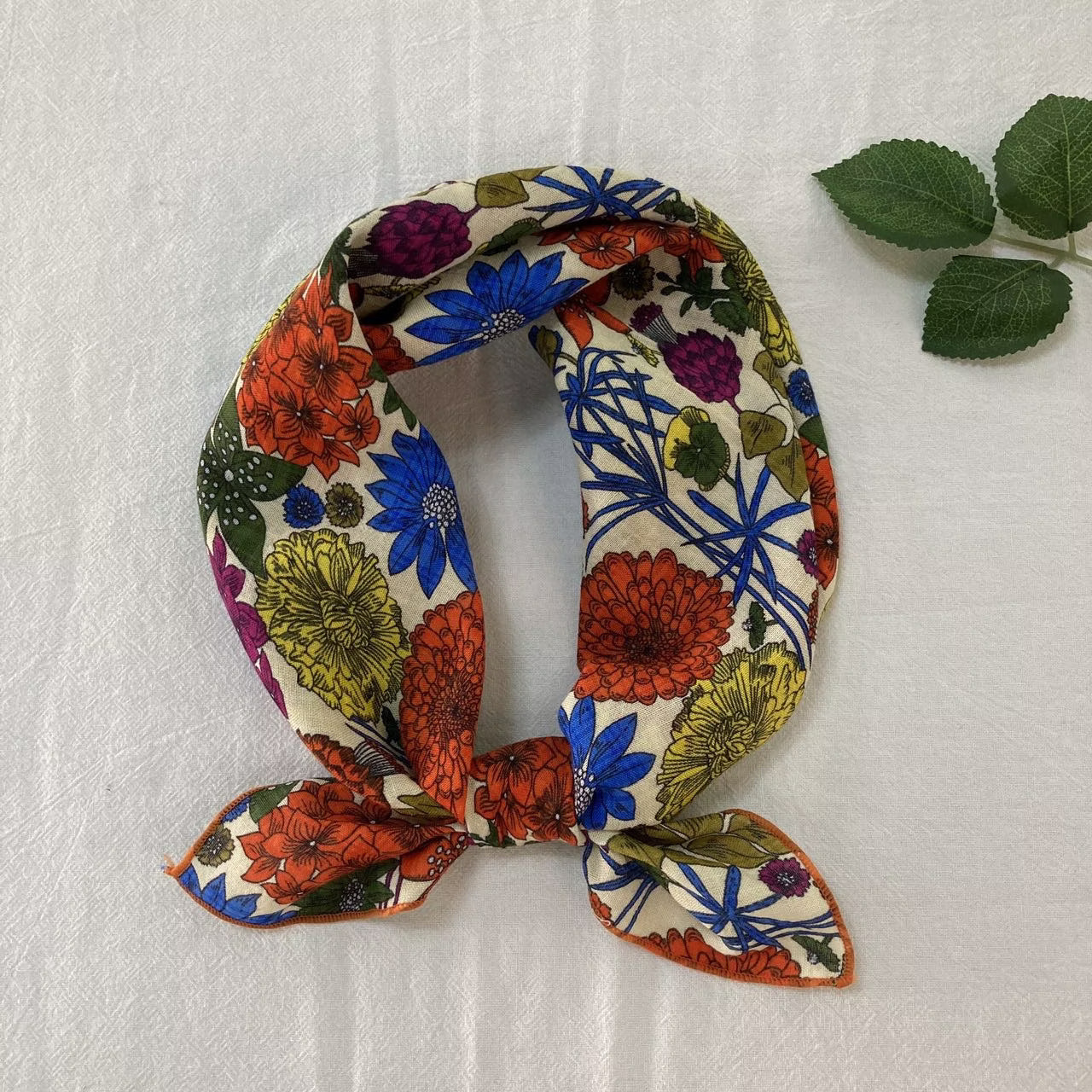 스카프 스카프 여성 원래 디자인 코튼 리넨 작은 광장 스카프 달콤한 목가적 인 꽃 스카프 경량 통기성 선스크린 헤드 스카프