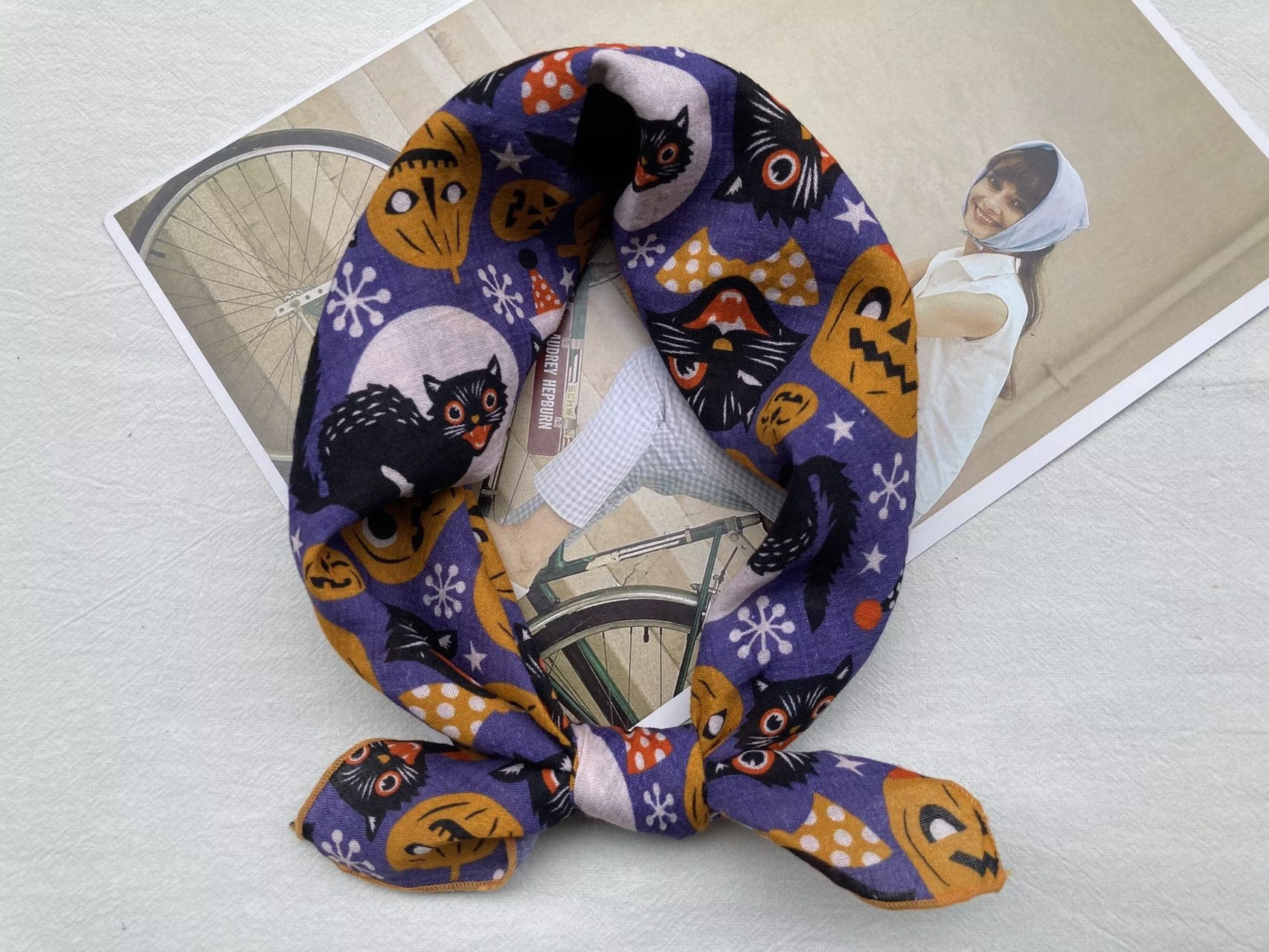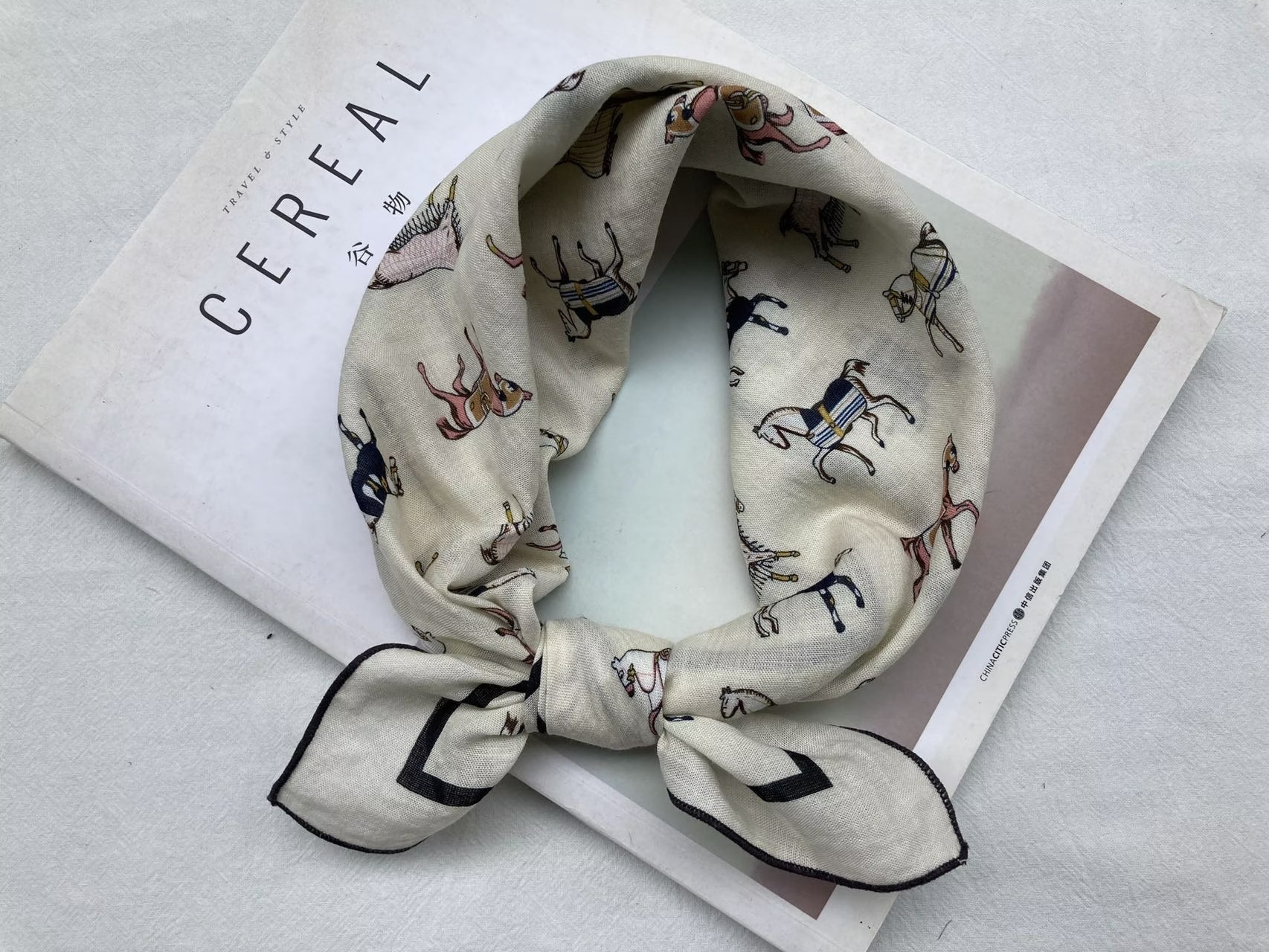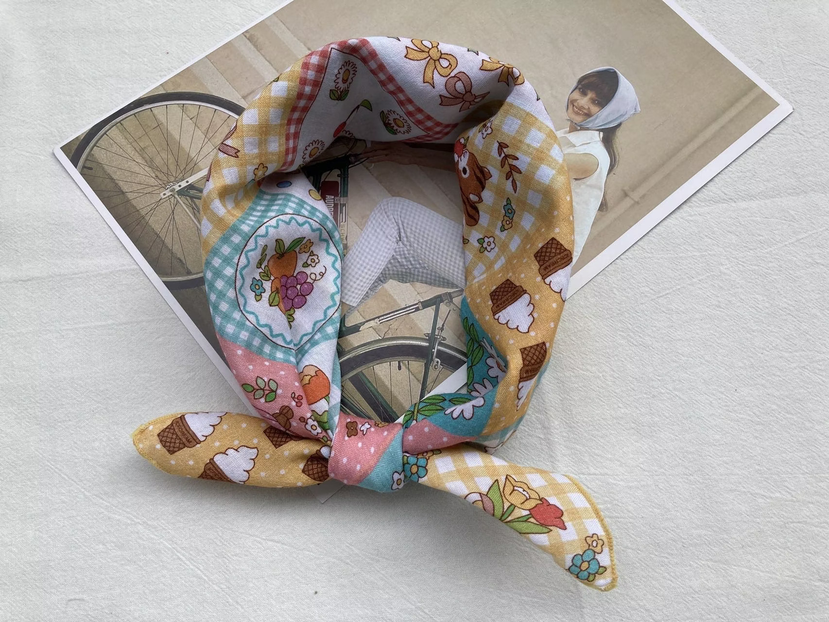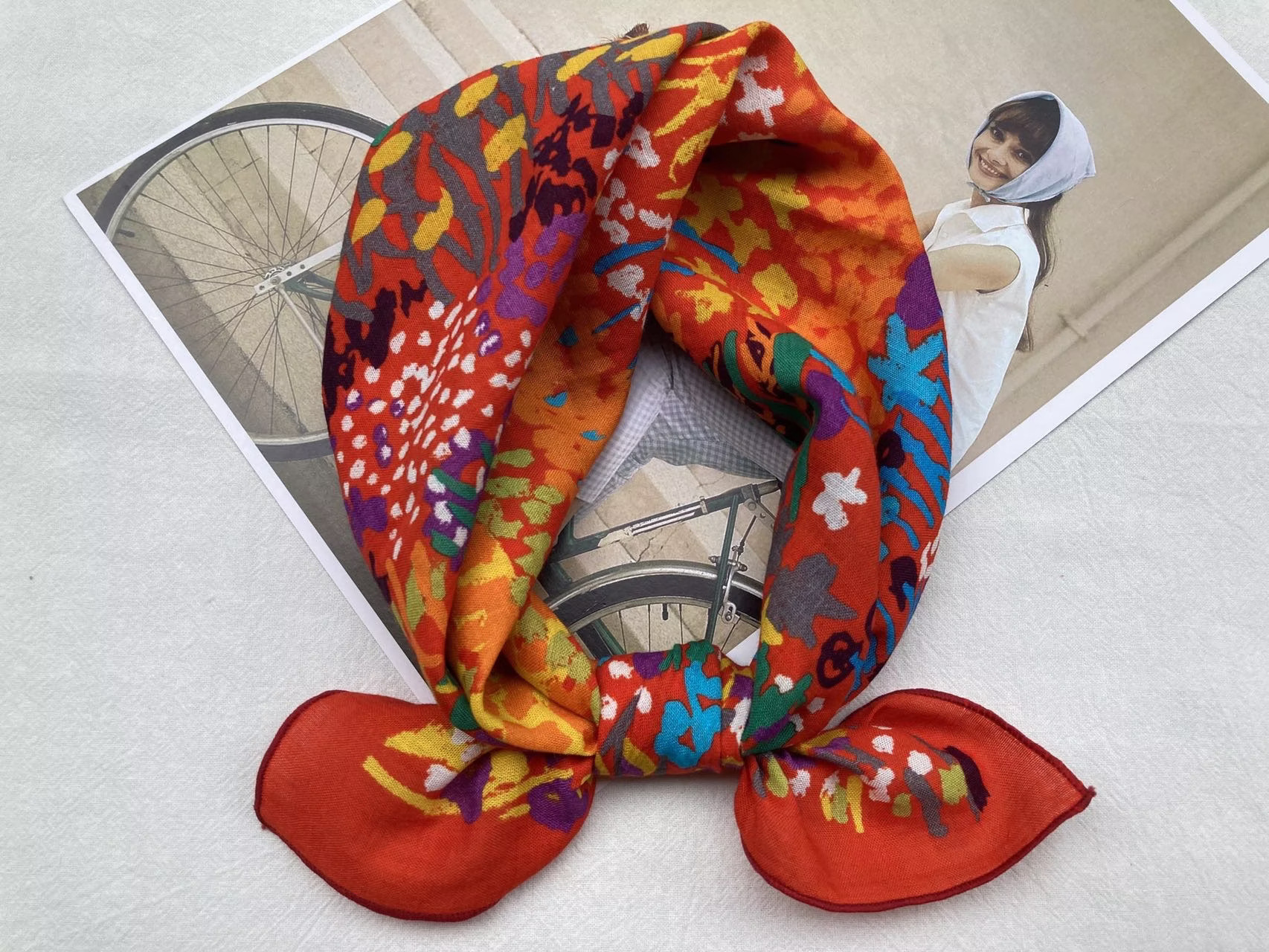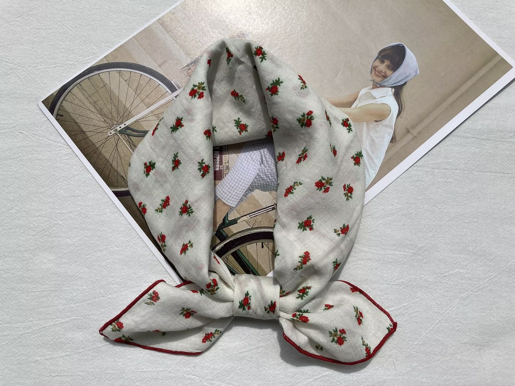 스카프 스카프 여성 원래 디자인 코튼 리넨 작은 광장 스카프 달콤한 목가적 인 꽃 스카프 경량 통기성 선스크린 헤드 스카프