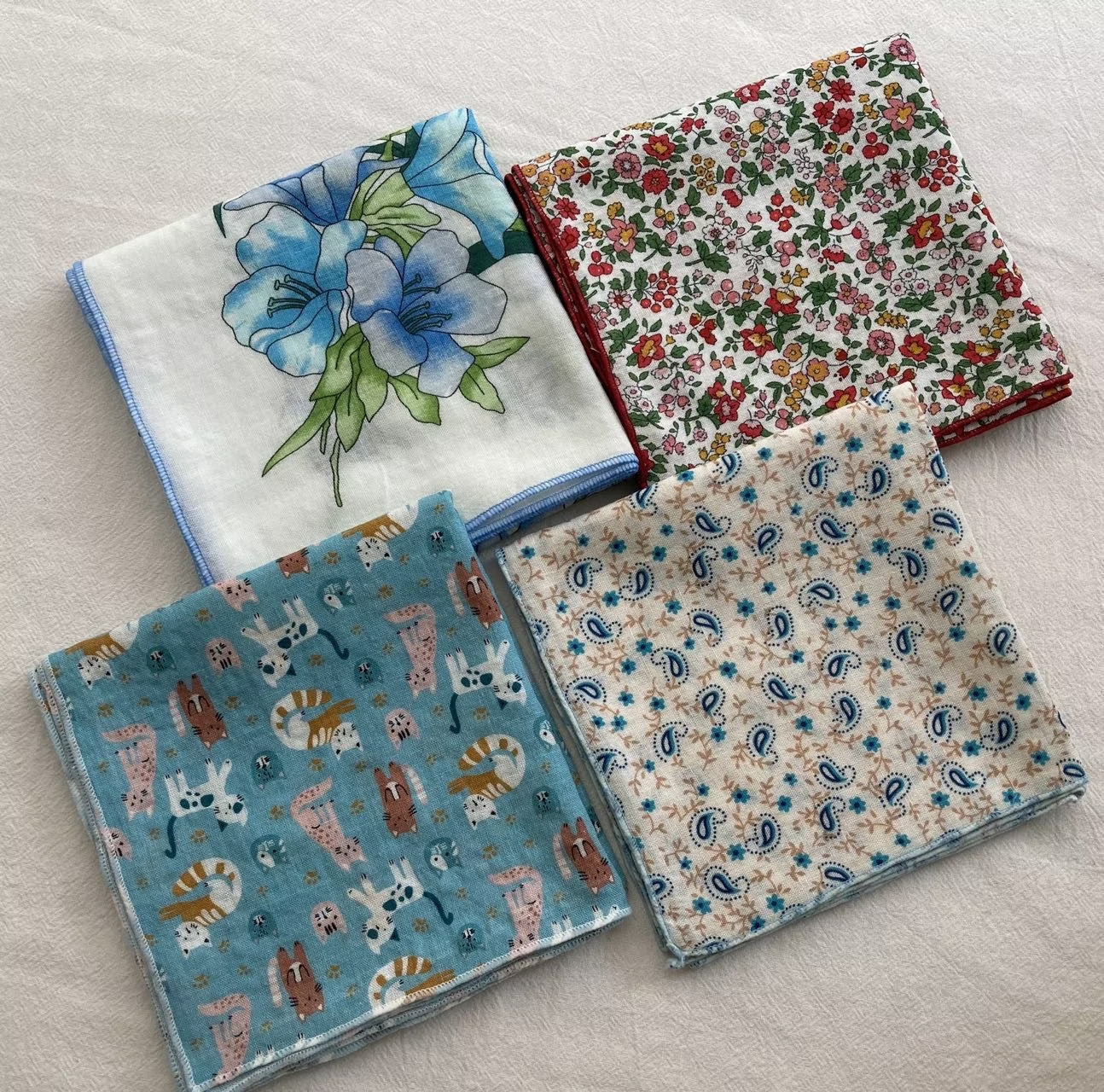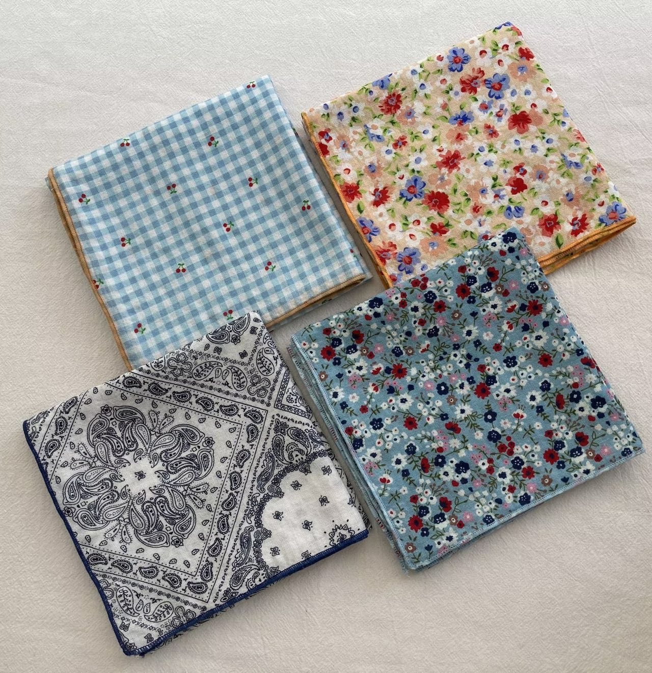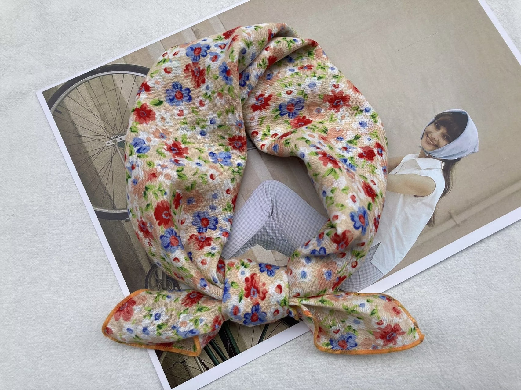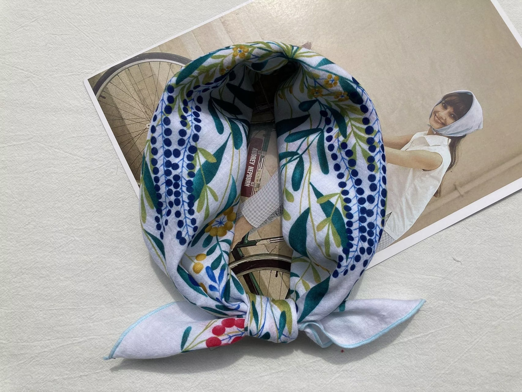 스카프 스카프 여성 원래 디자인 코튼 리넨 작은 광장 스카프 달콤한 목가적 인 꽃 스카프 경량 통기성 선스크린 헤드 스카프스토어 가기
