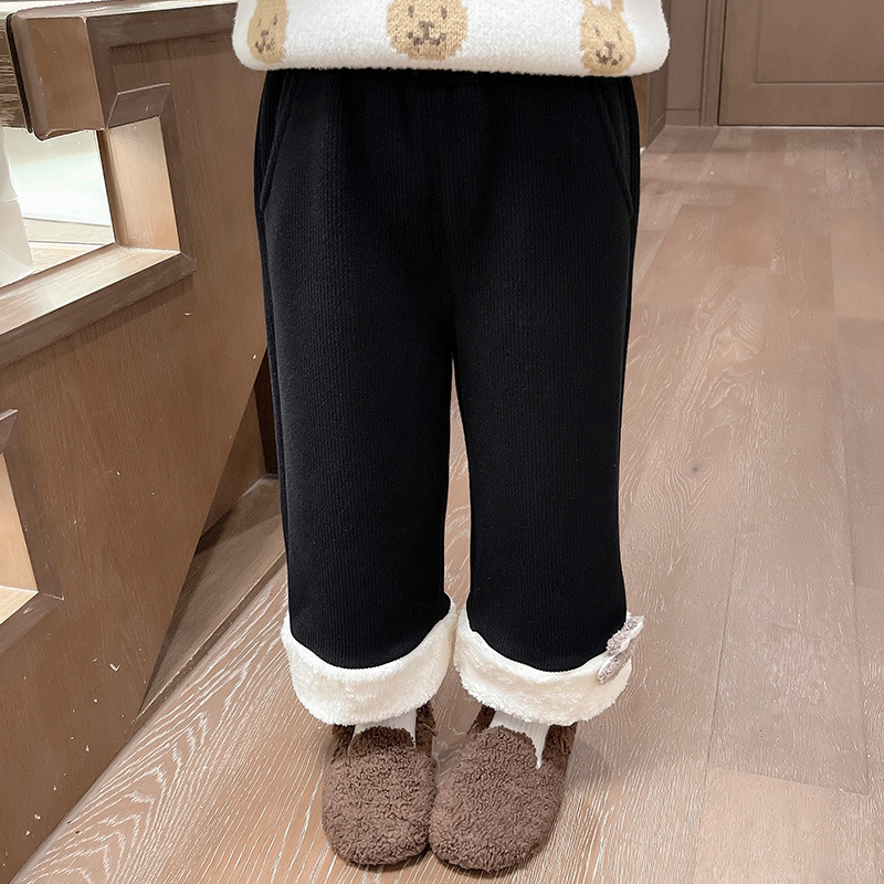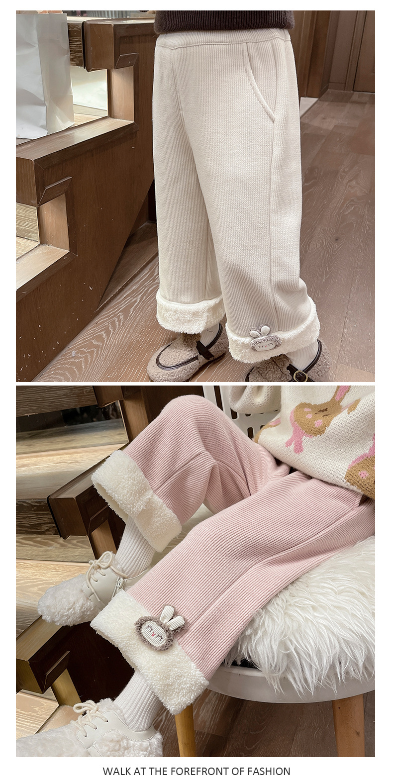 소녀 기모 두꺼운 가을과 겨울 바지 따뜻한 넓은 다리 바지 작은 향기로운 스타일 느슨한 캐주얼 바지 아기 소녀스토어 가기