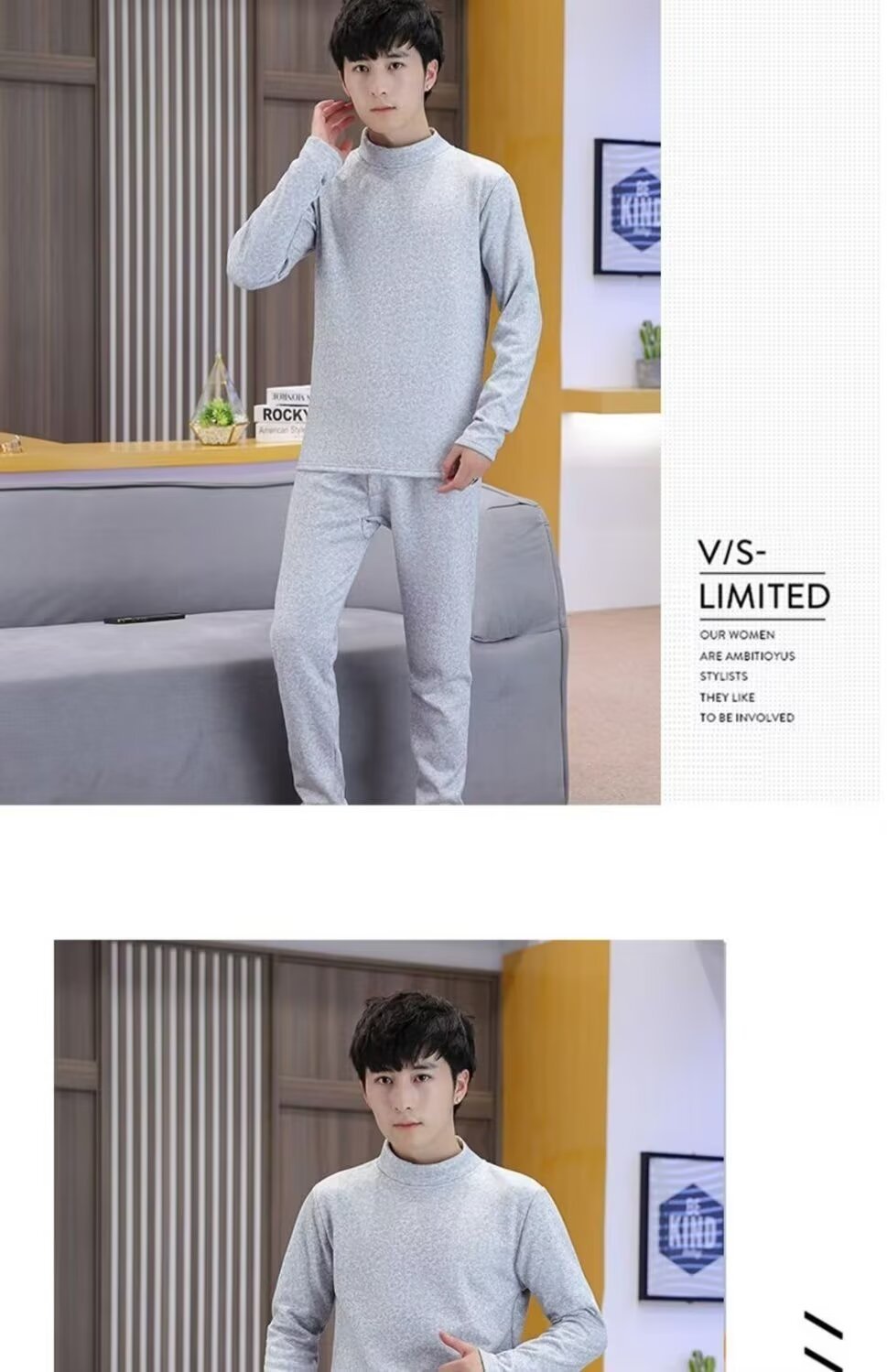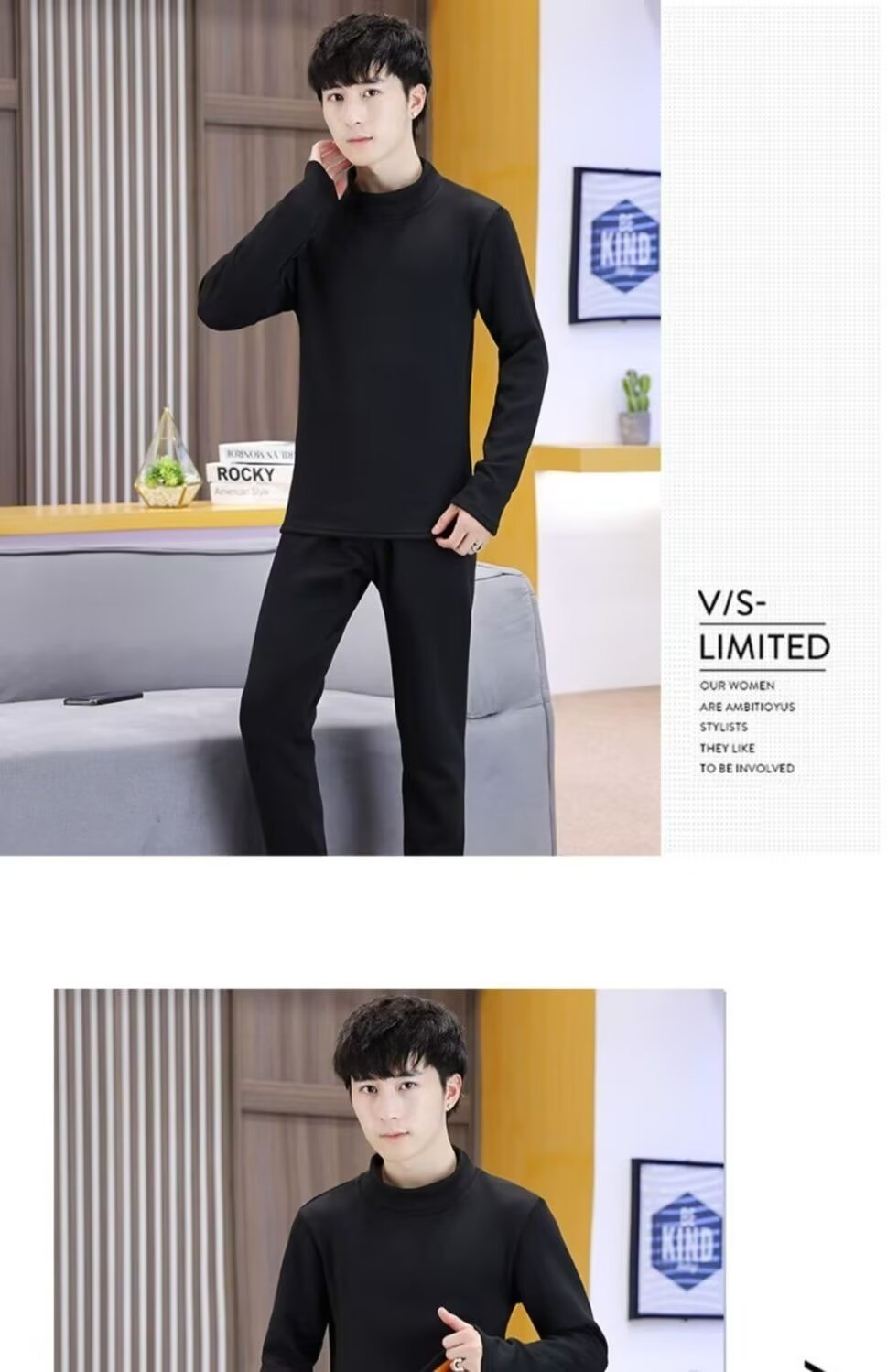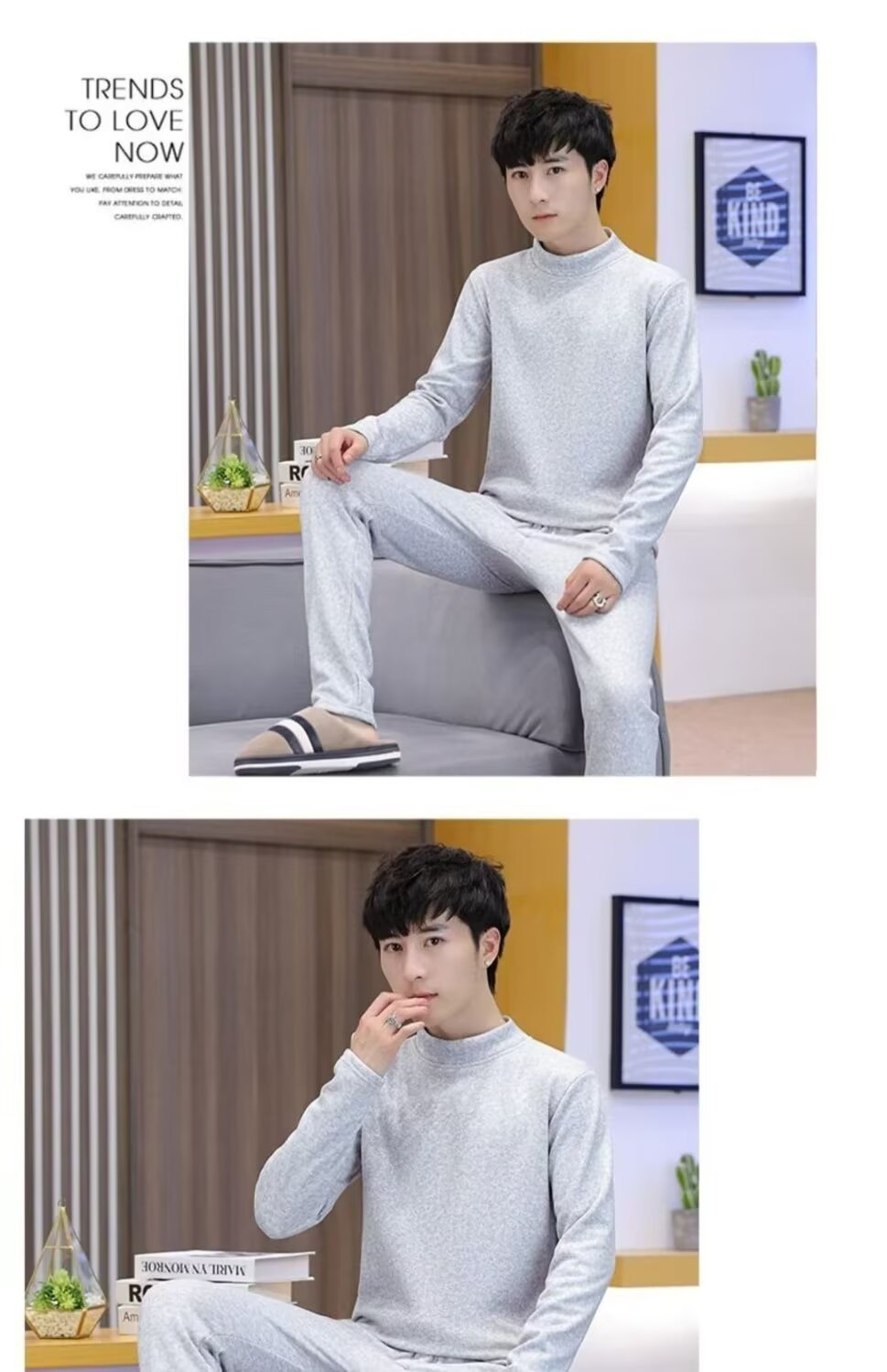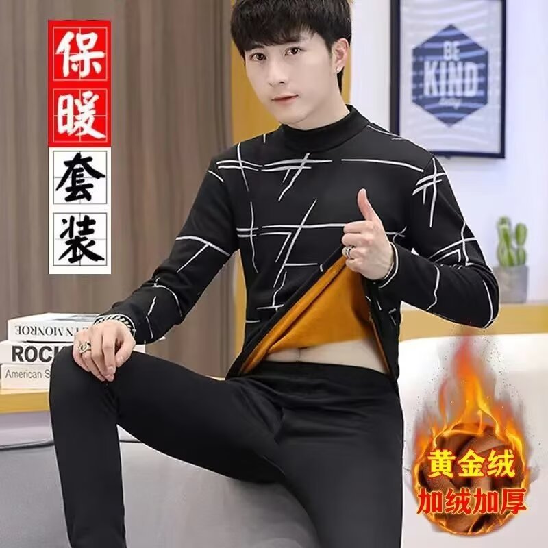 겨울 남자 반 높이 칼라 따뜻한 긴팔 속옷 기모 두꺼운 학생 냉장 금양베이스 셔츠 세트스토어 가기