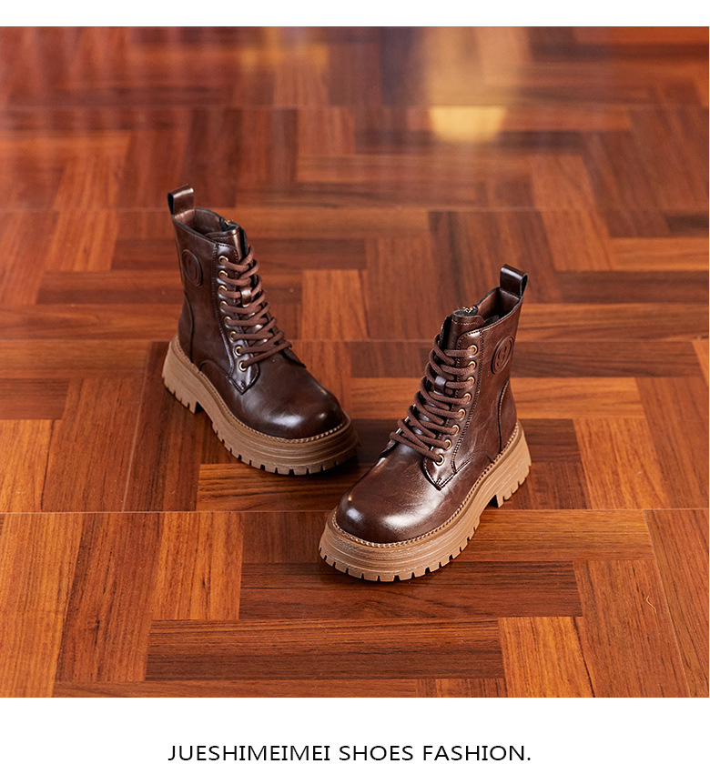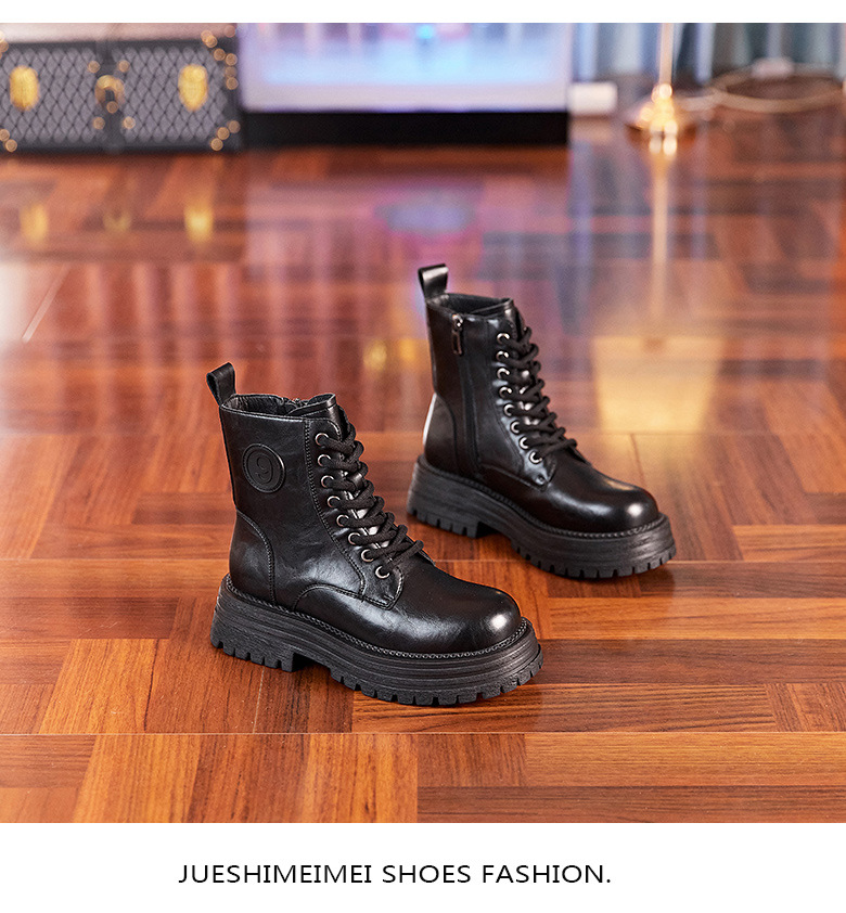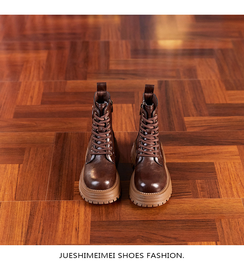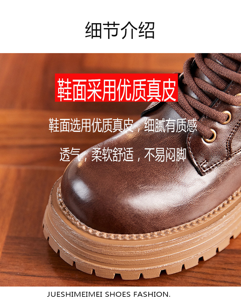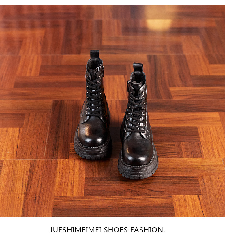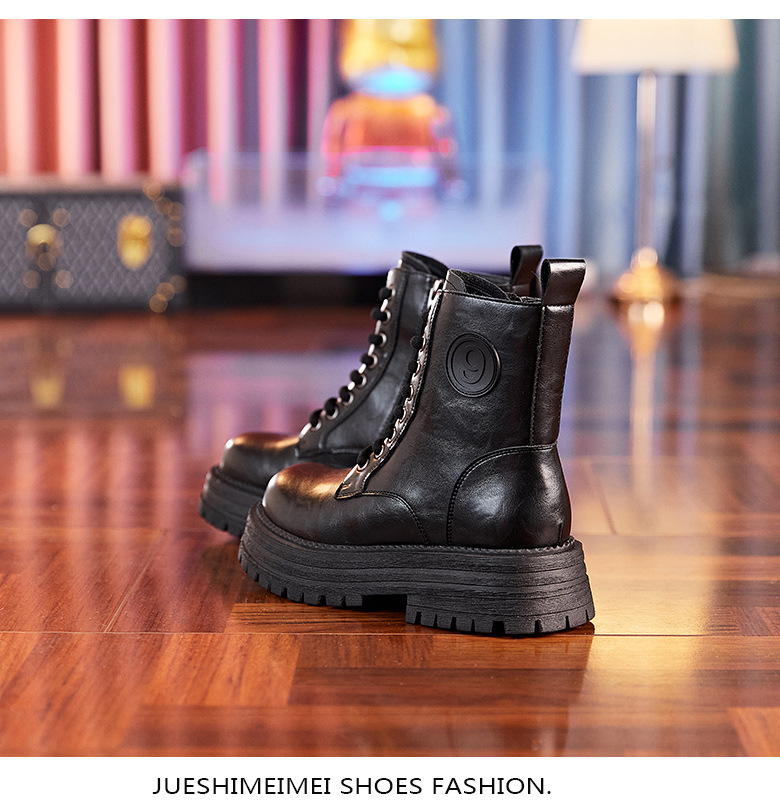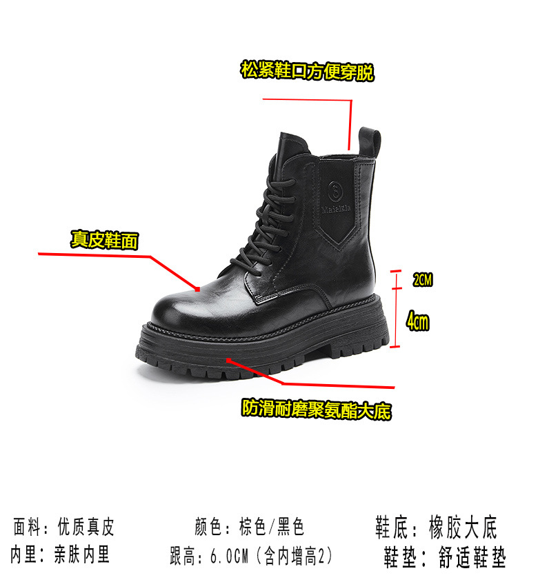 8583 정품 가죽 마틴 부츠 여성 두꺼운 바닥 짧은 부츠 2024 가을 및 겨울 새로운 2 층 Cowhide 기사 얇은 부츠