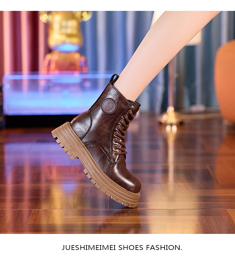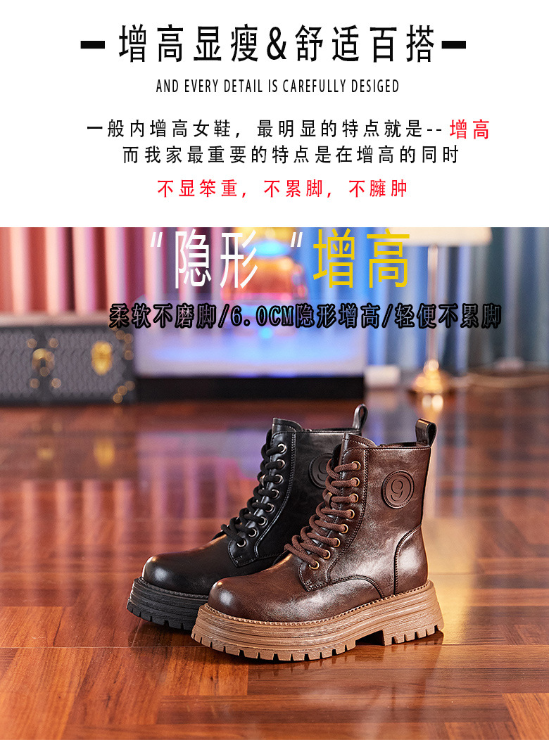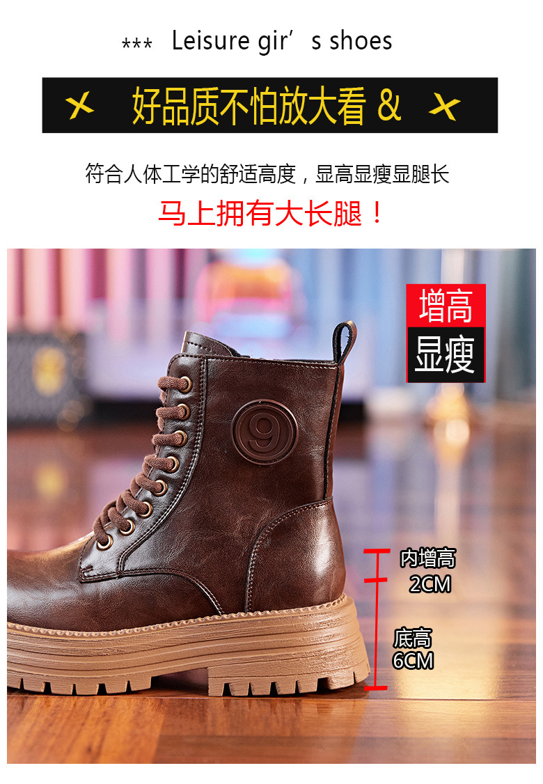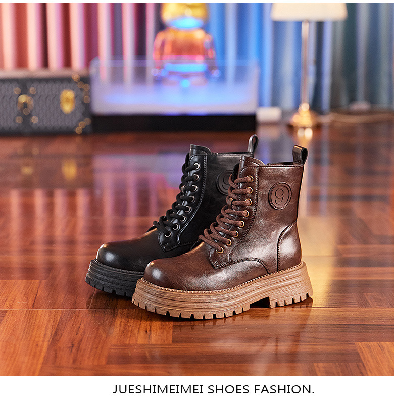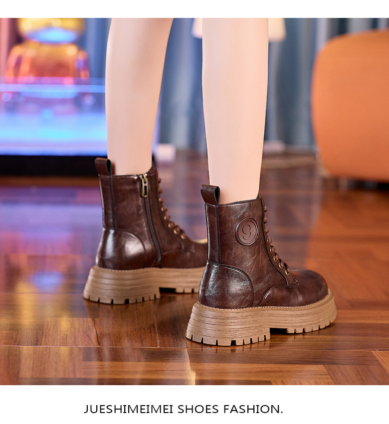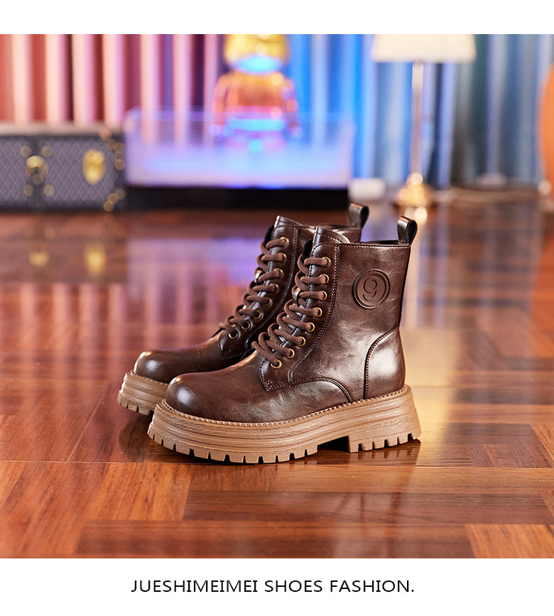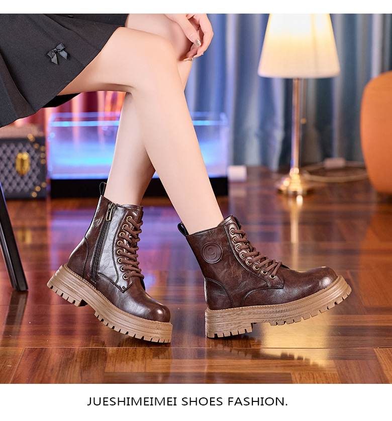 8583 정품 가죽 마틴 부츠 여성 두꺼운 바닥 짧은 부츠 2024 가을 및 겨울 새로운 2 층 Cowhide 기사 얇은 부츠