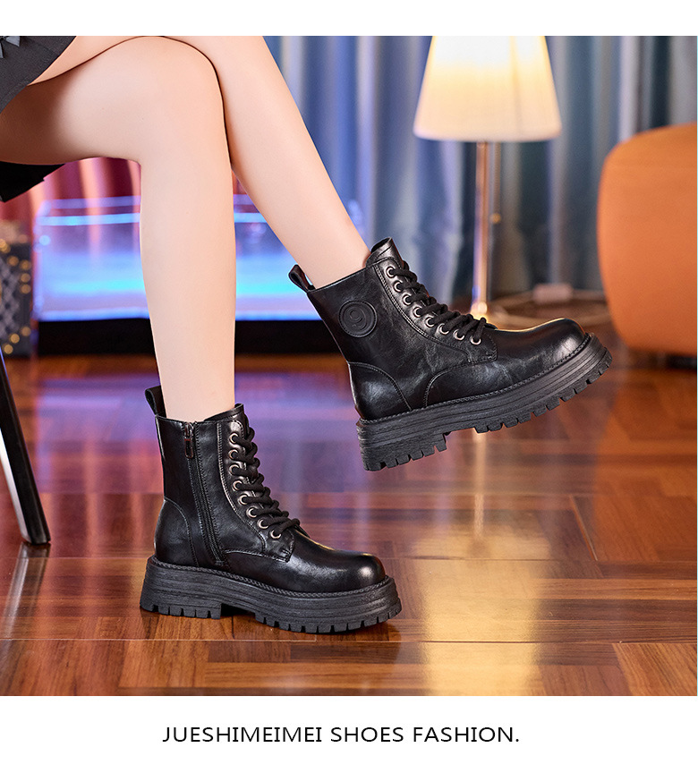 8583 정품 가죽 마틴 부츠 여성 두꺼운 바닥 짧은 부츠 2024 가을 및 겨울 새로운 2 층 Cowhide 기사 얇은 부츠스토어 가기