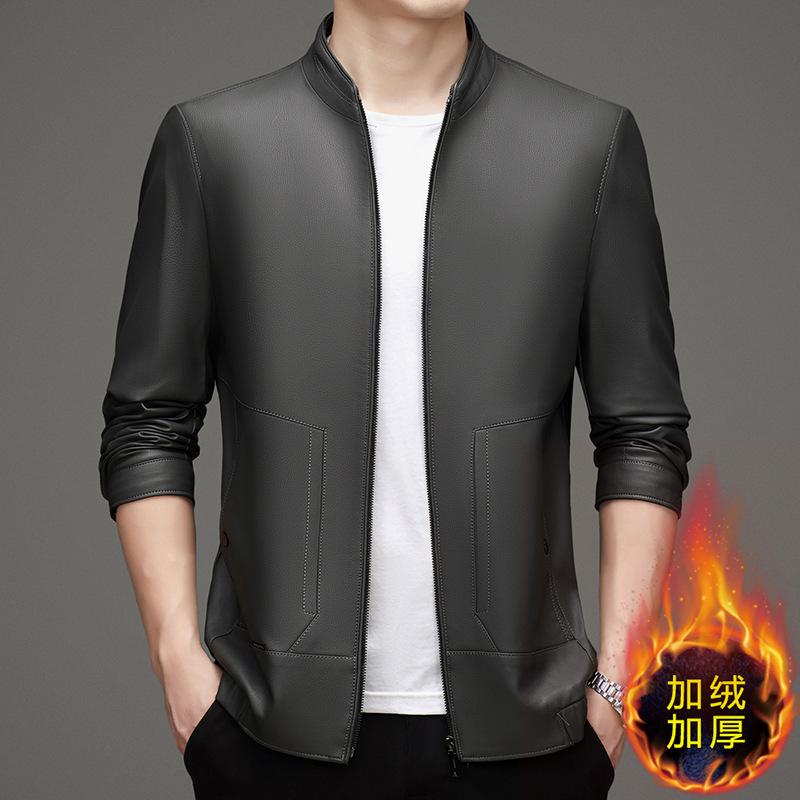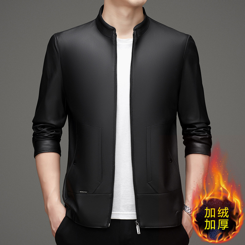 스탠드 칼라 PU 가죽 남성의 새로운 봄과 가을 중년 남성 짧은 가죽 재킷 비즈니스 코트 두꺼운 탑