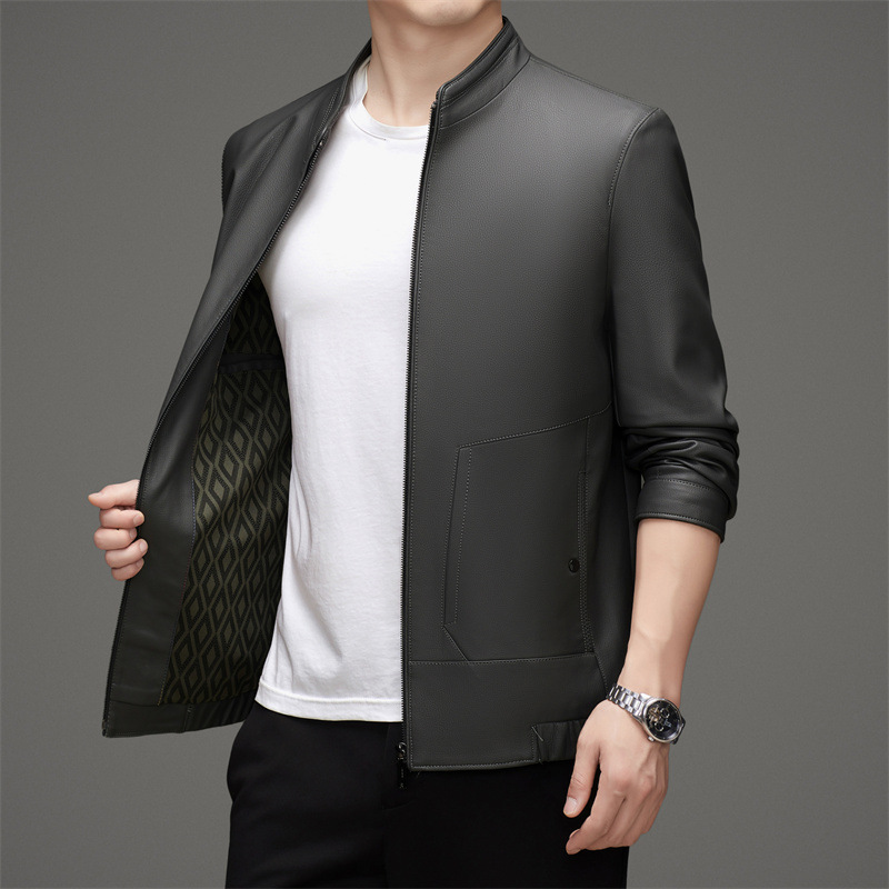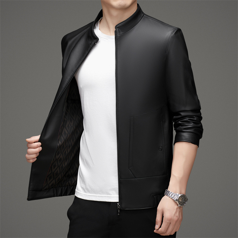 스탠드 칼라 PU 가죽 남성의 새로운 봄과 가을 중년 남성 짧은 가죽 재킷 비즈니스 코트 두꺼운 탑스토어 가기
