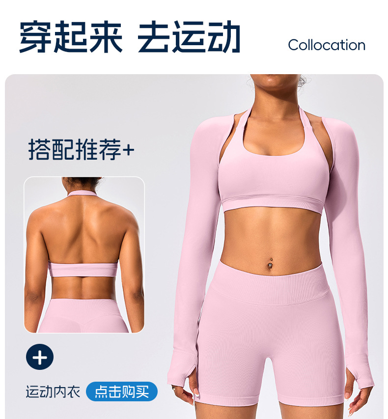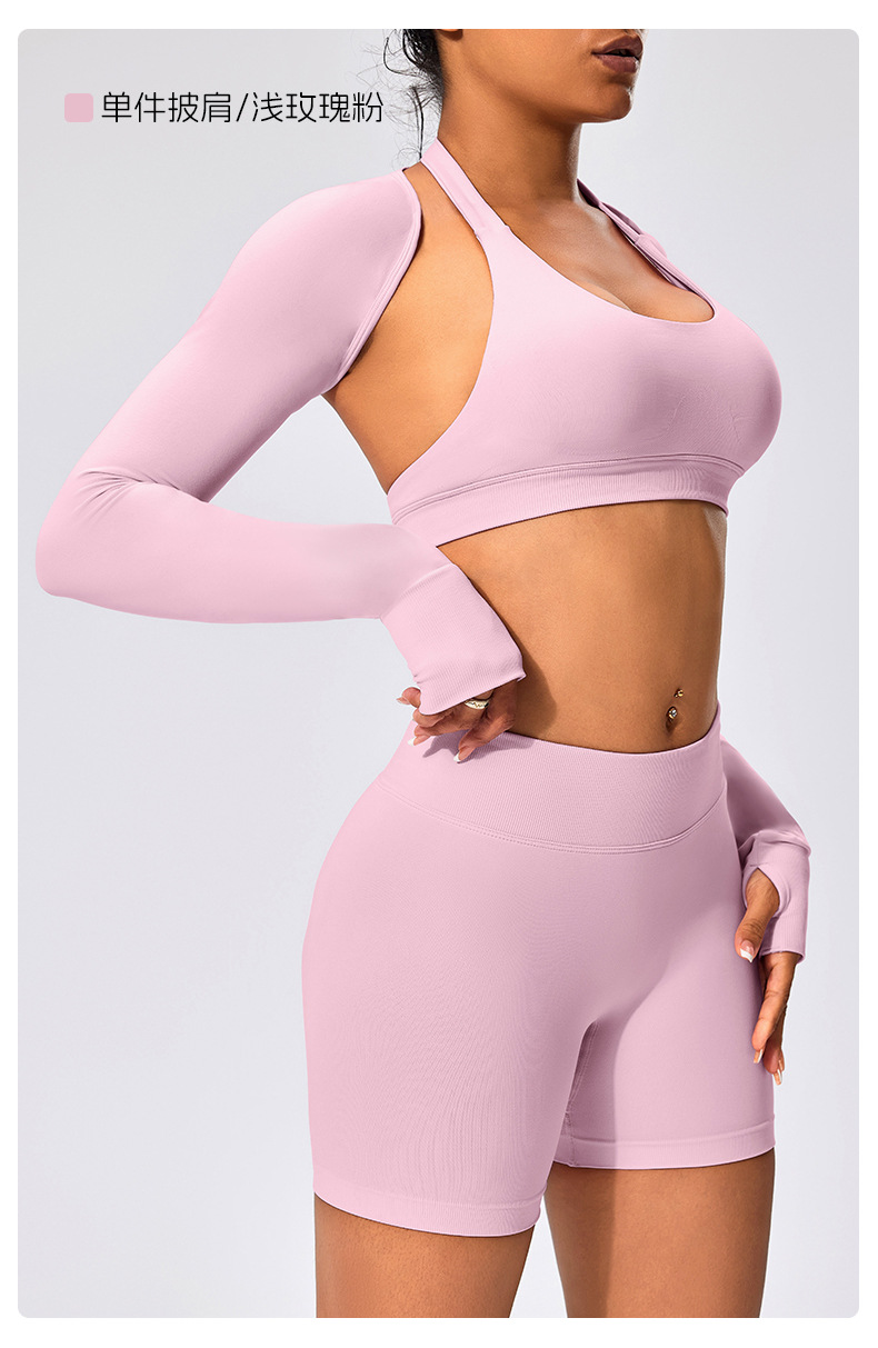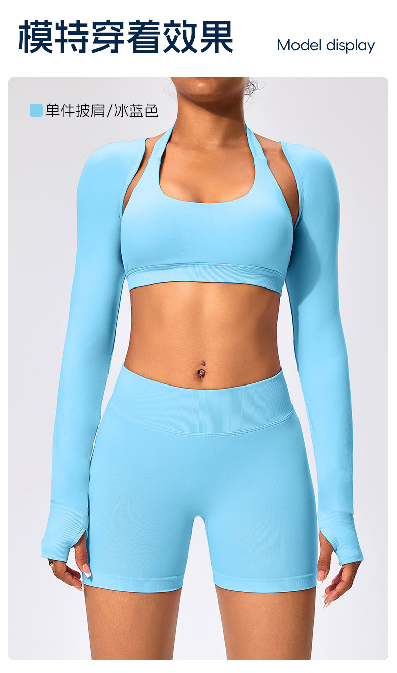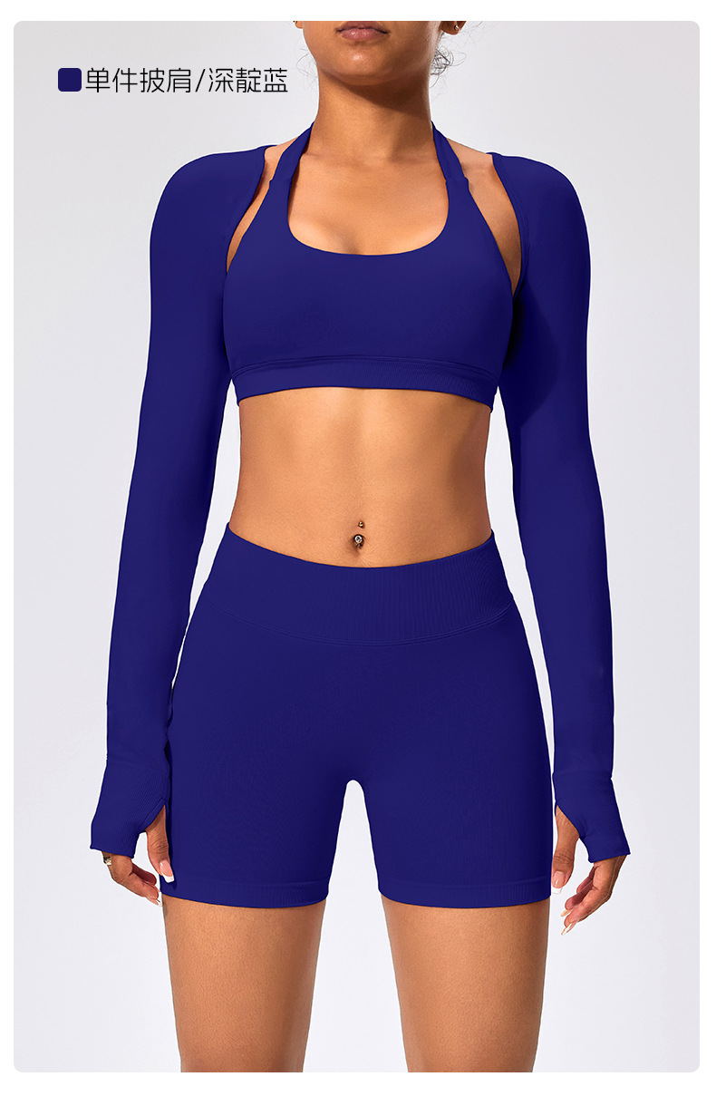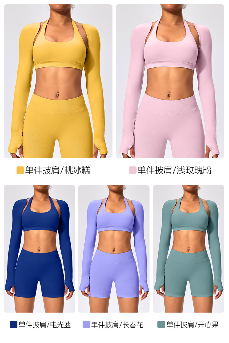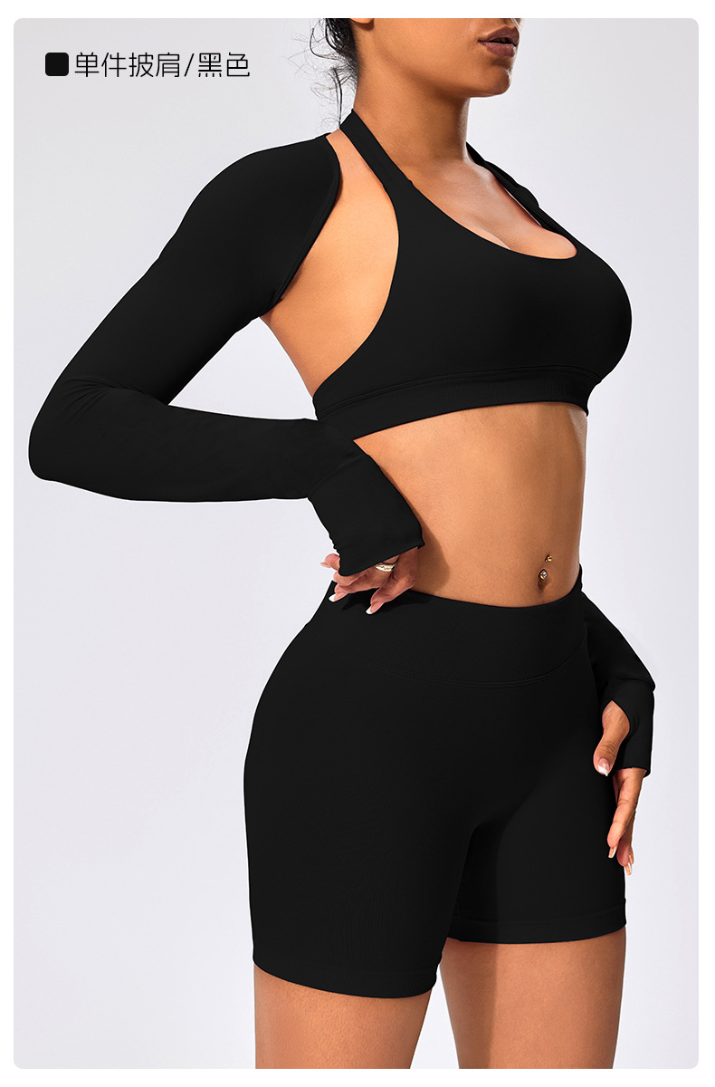 유럽과 미국 스타일의 긴팔 양복 조끼 여성용 어깨 트림 슬리밍 백조 목 벌거 벗은 목도리 피트니스 필라테스 요가 의류스토어 가기