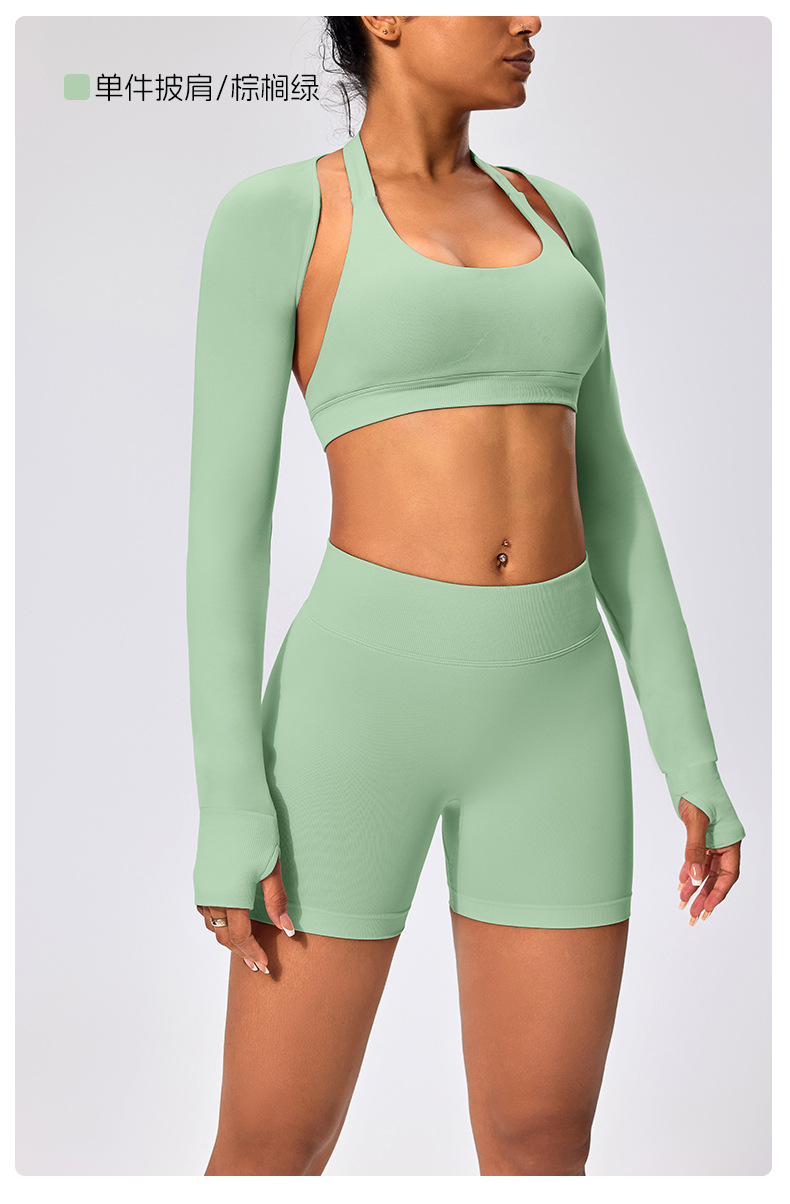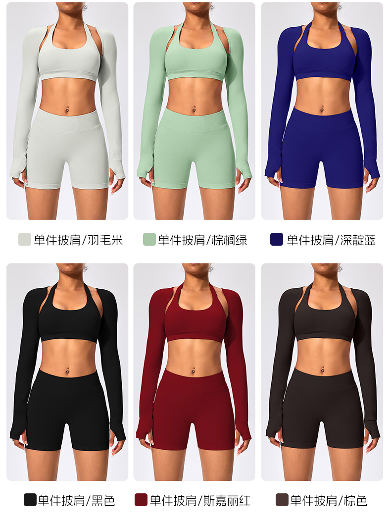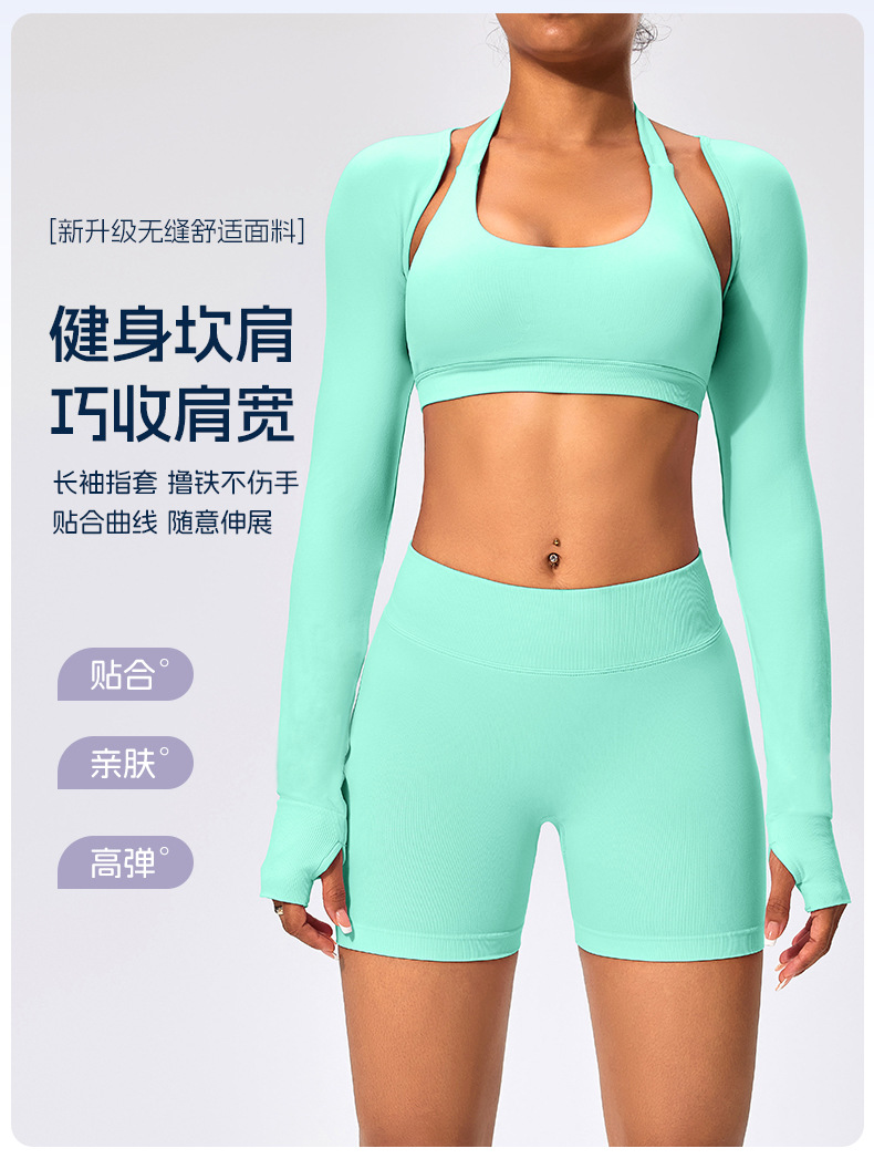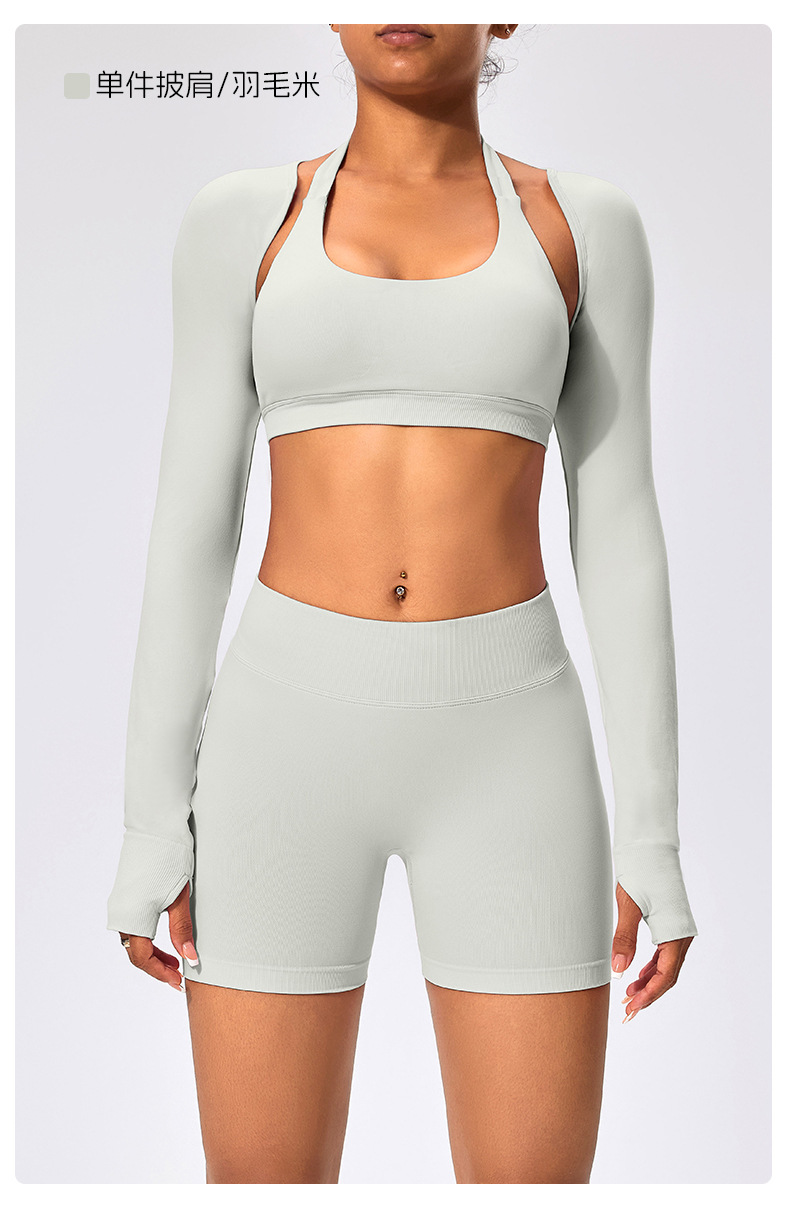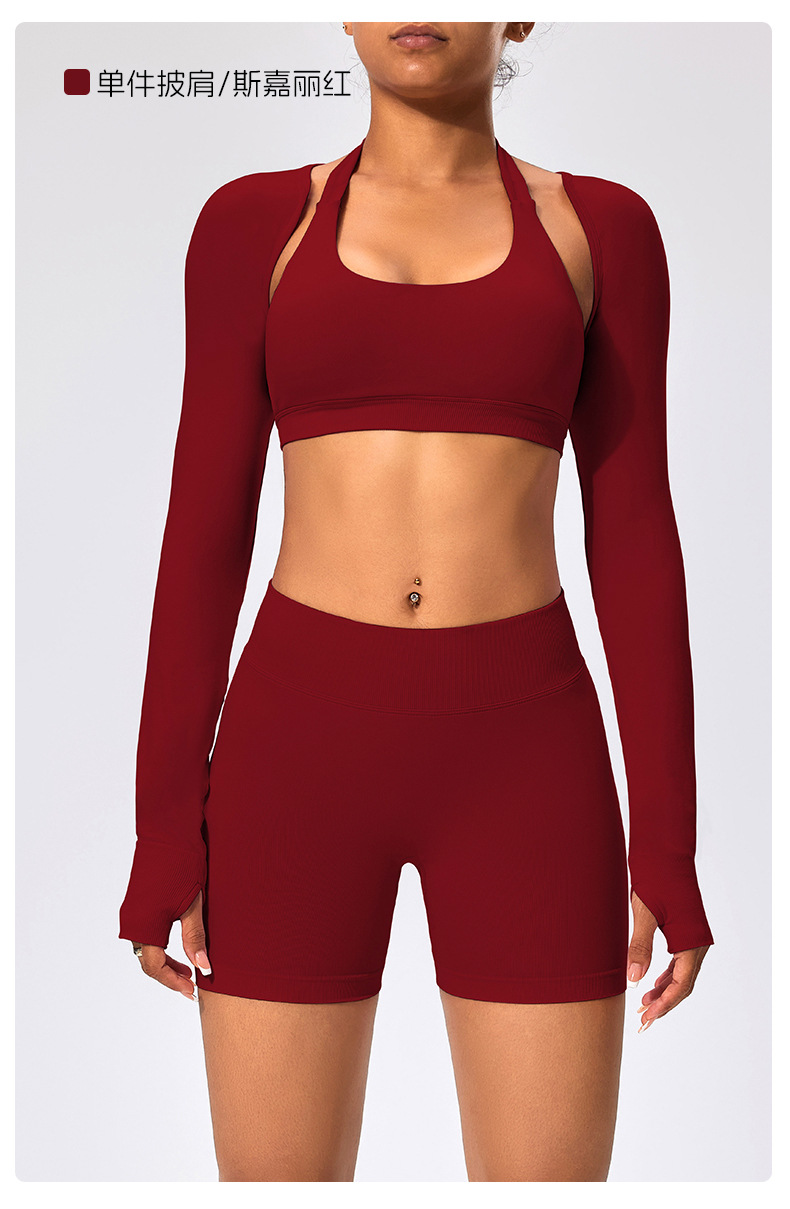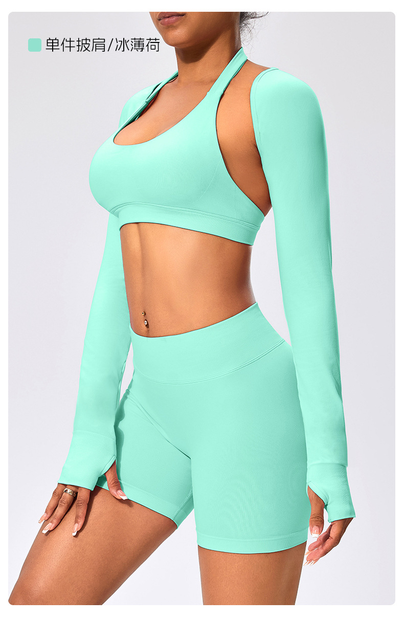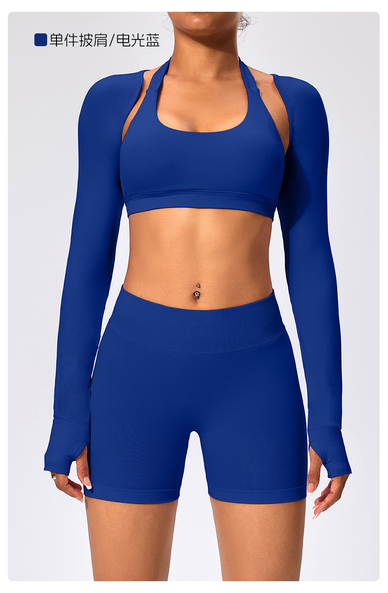 유럽과 미국 스타일의 긴팔 양복 조끼 여성용 어깨 트림 슬리밍 백조 목 벌거 벗은 목도리 피트니스 필라테스 요가 의류스토어 가기