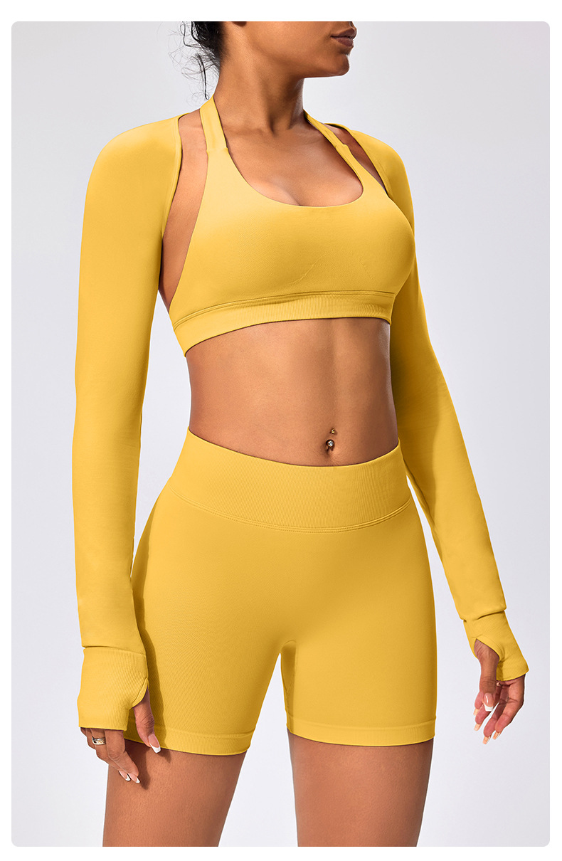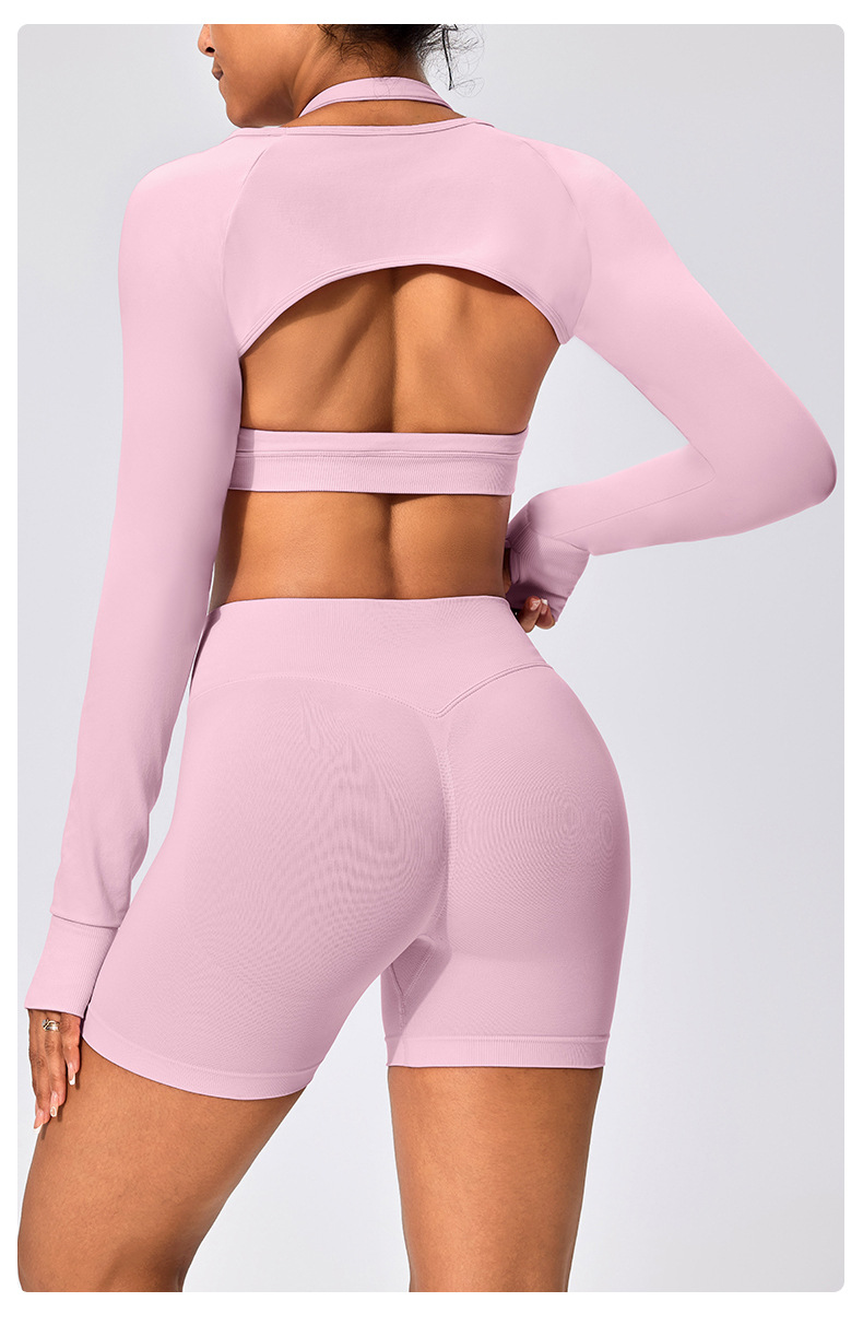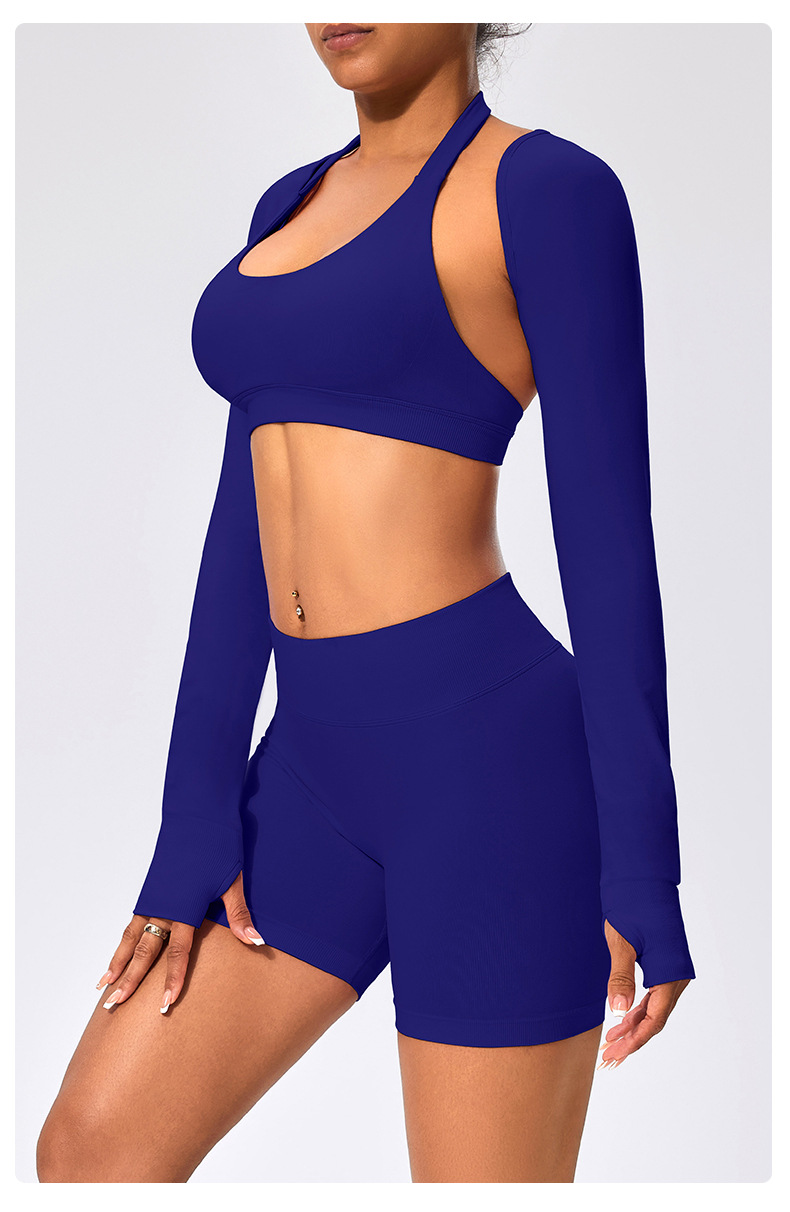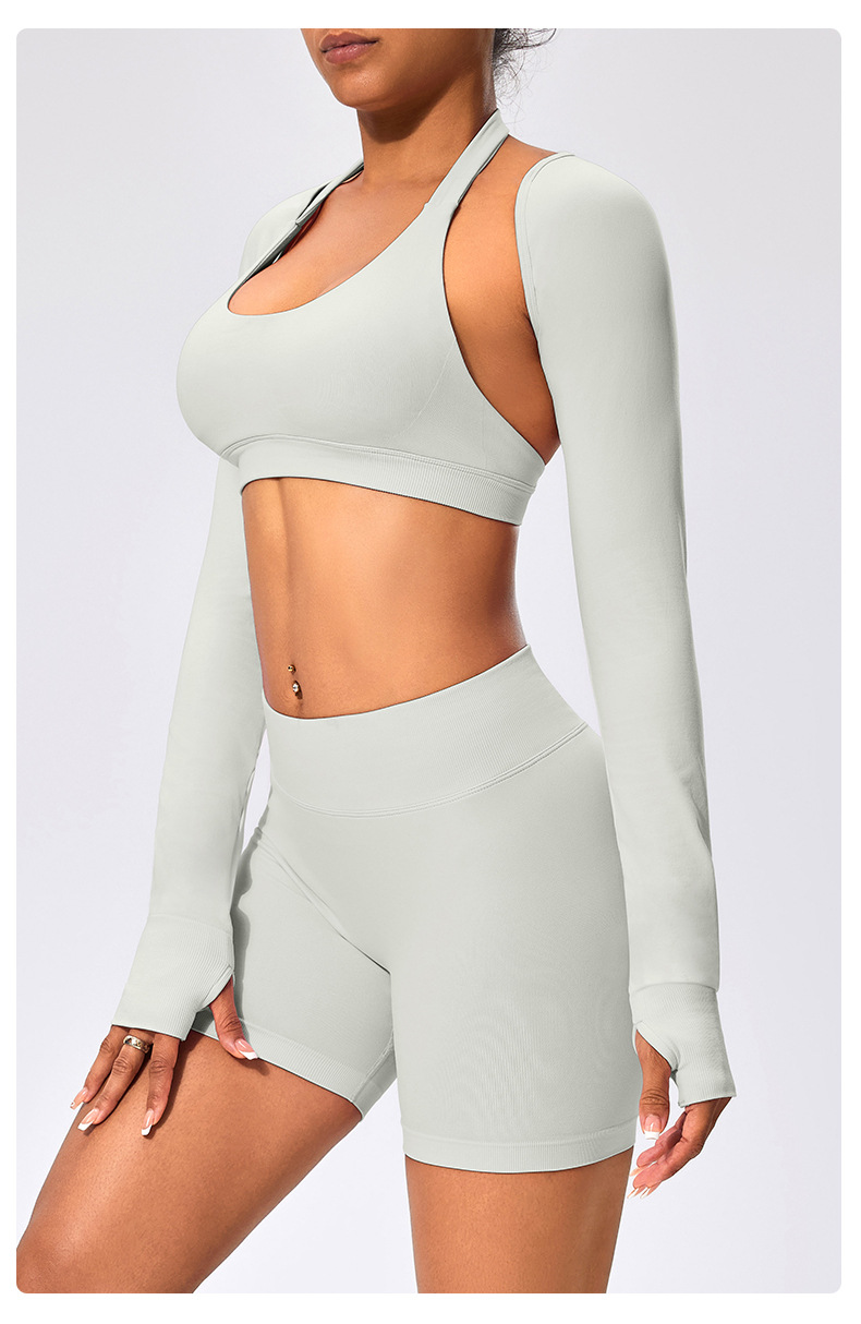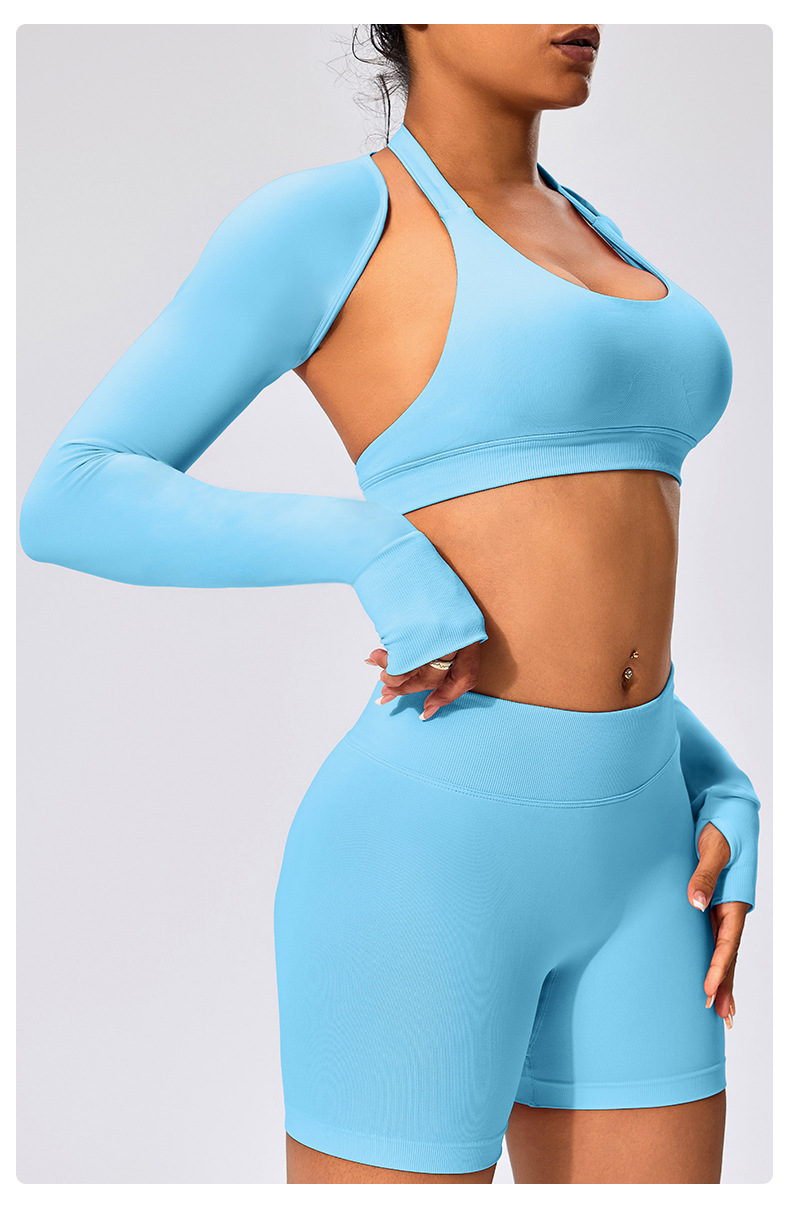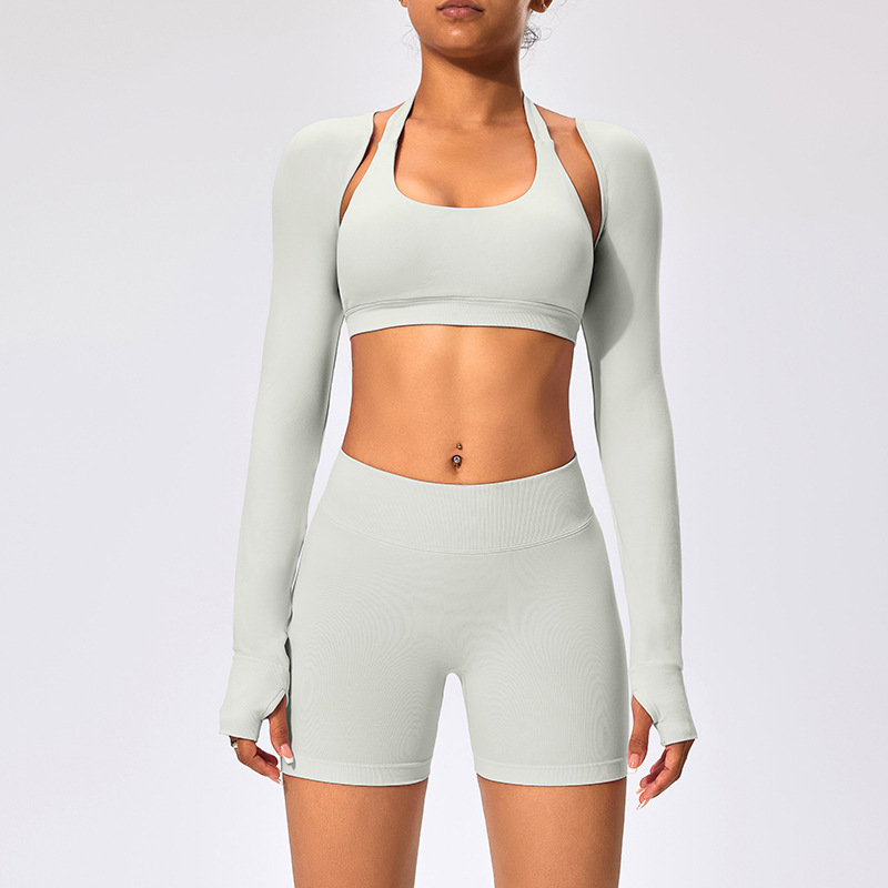 유럽과 미국 스타일의 긴팔 양복 조끼 여성용 어깨 트림 슬리밍 백조 목 벌거 벗은 목도리 피트니스 필라테스 요가 의류스토어 가기