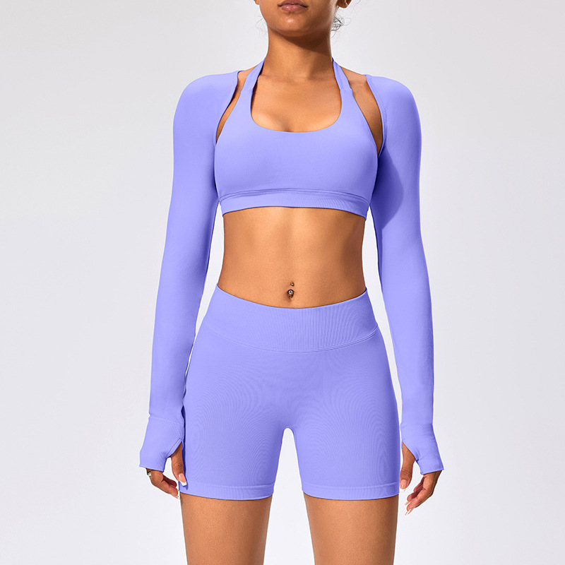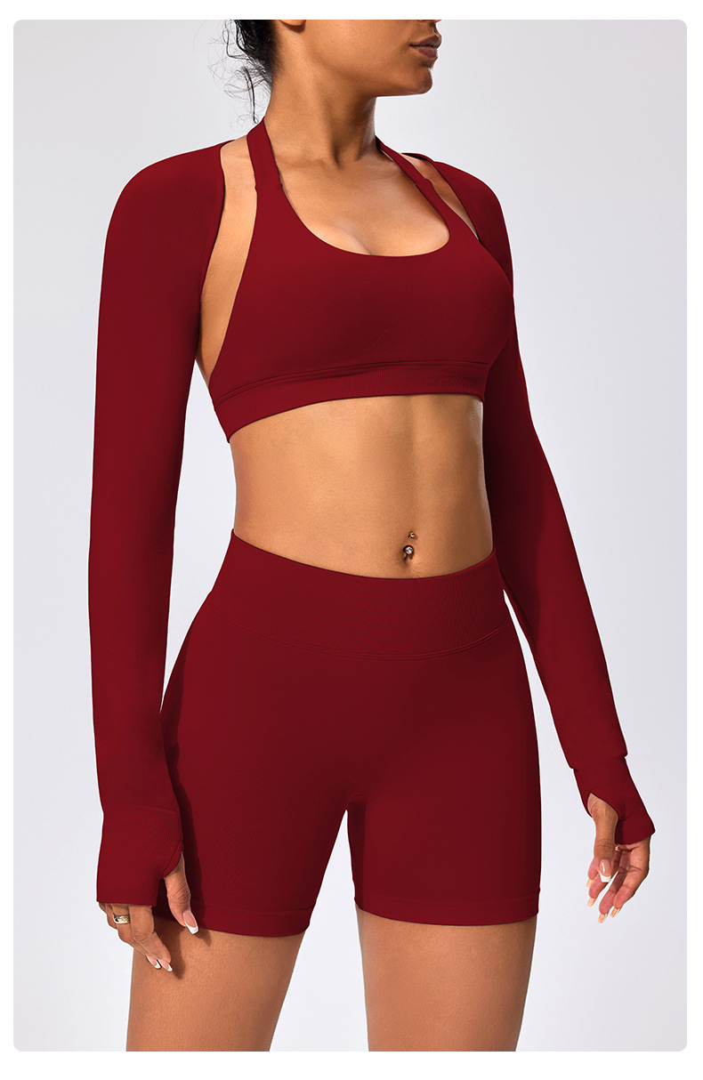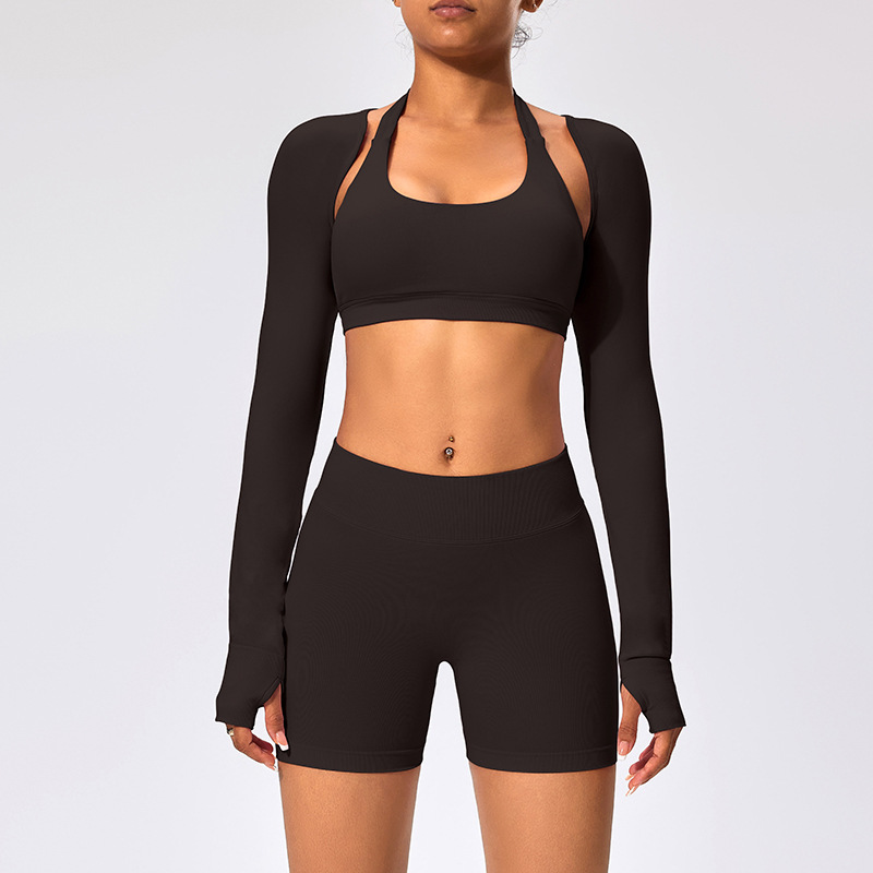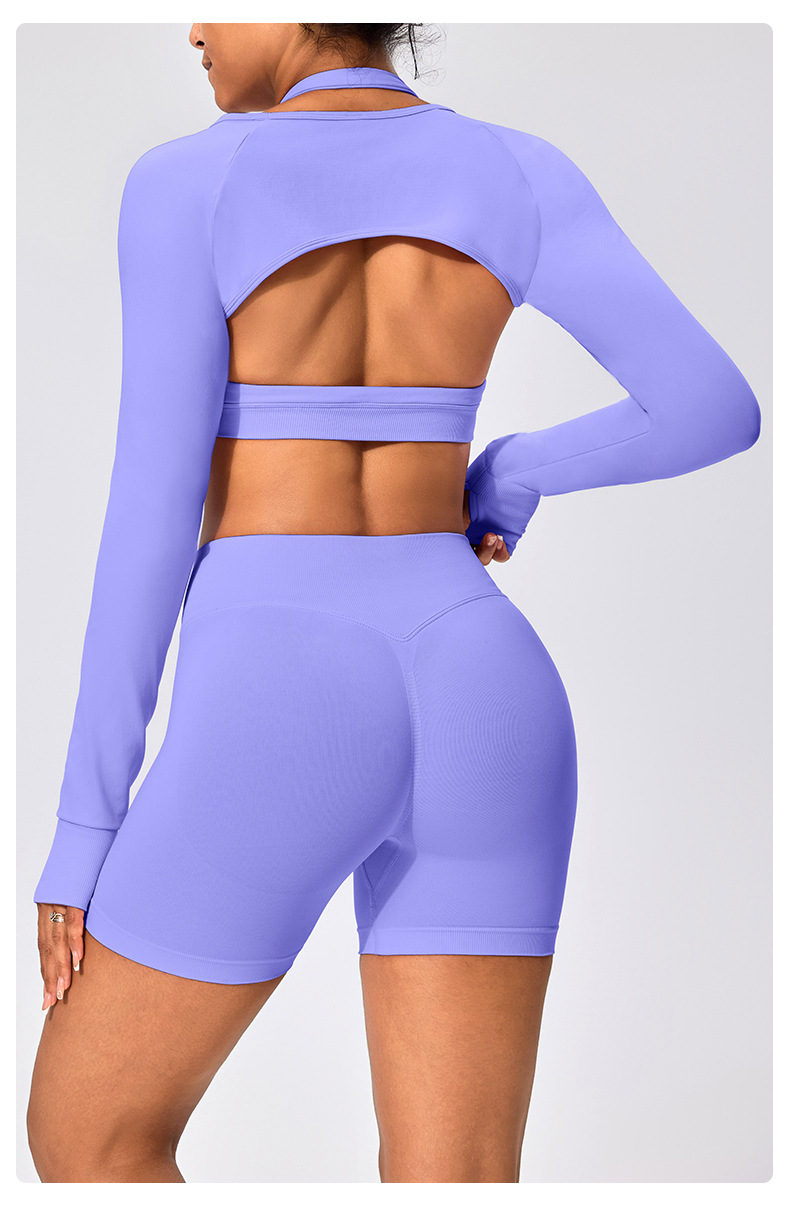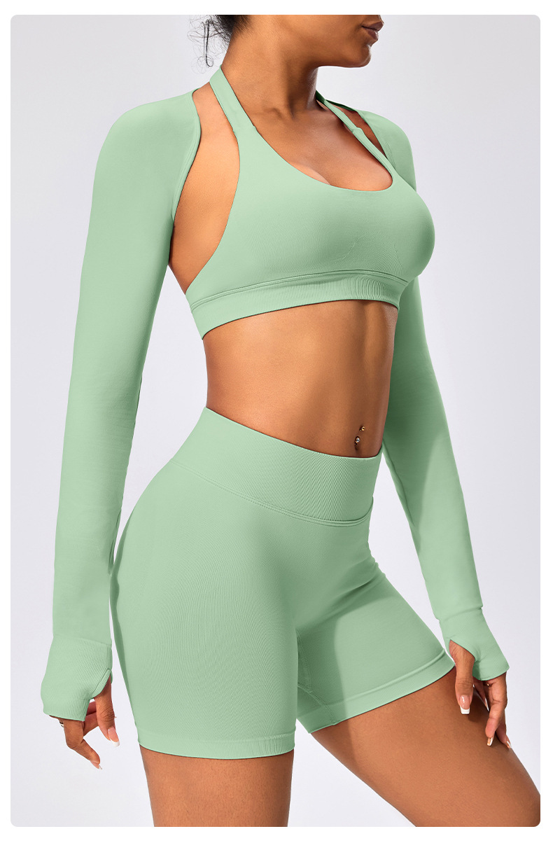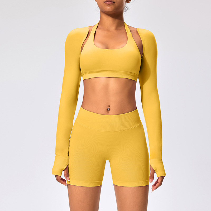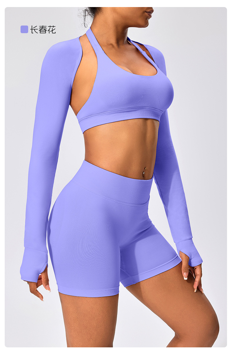 유럽과 미국 스타일의 긴팔 양복 조끼 여성용 어깨 트림 슬리밍 백조 목 벌거 벗은 목도리 피트니스 필라테스 요가 의류스토어 가기