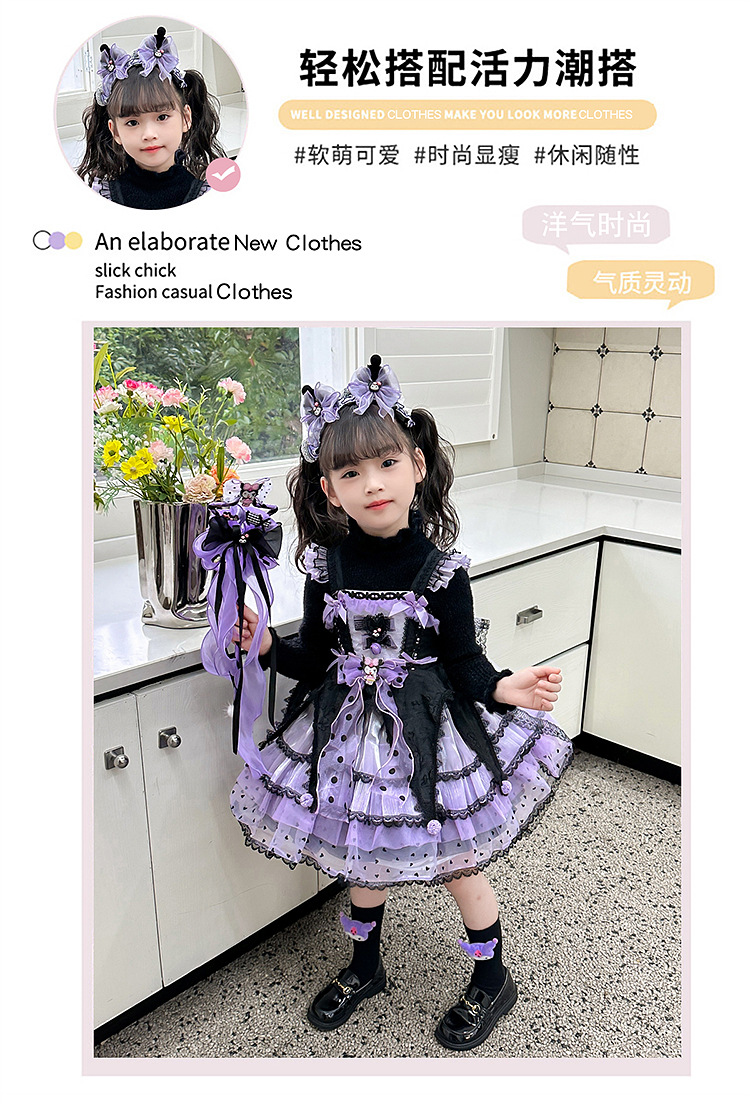 소녀 원피스 어린이 가을 쿨로 미 원피스 2024 년 새 1 년 된 봄과 가을 아기 로리타 공주 원피스
