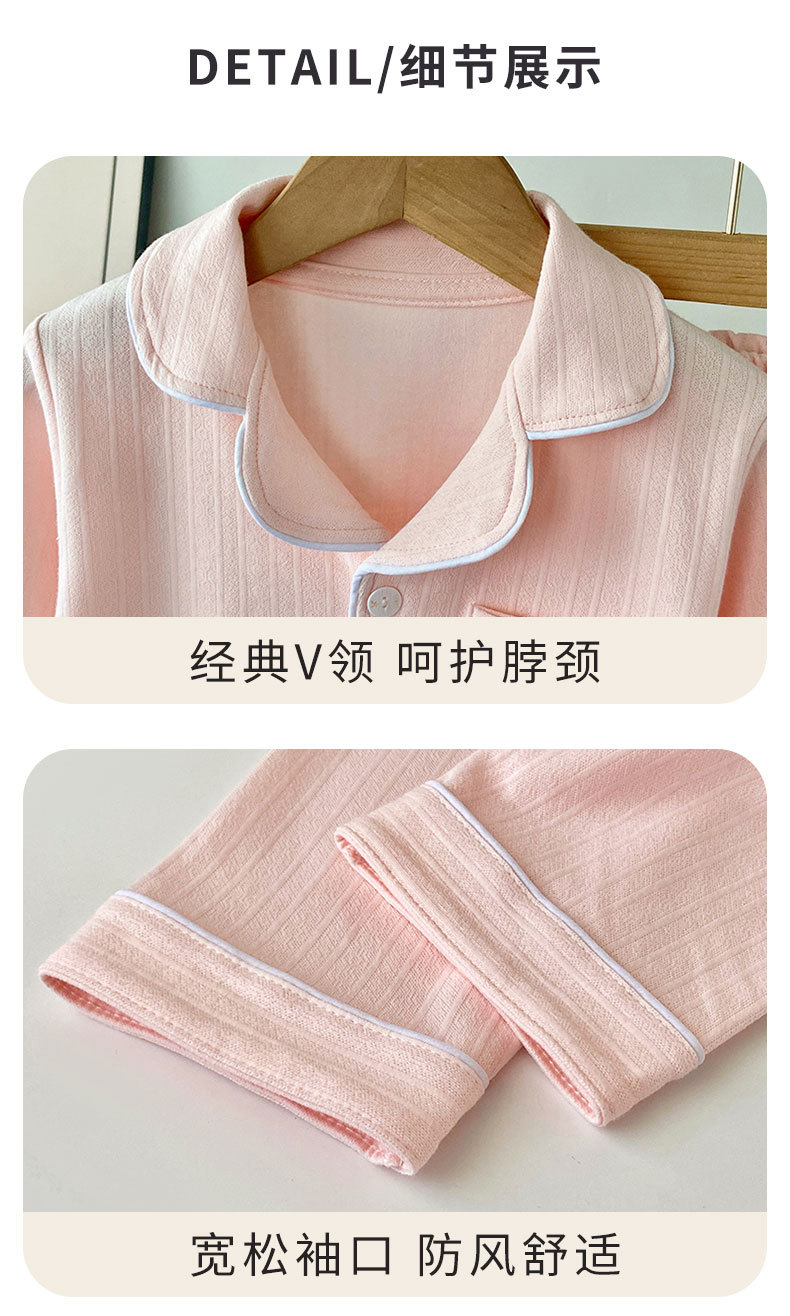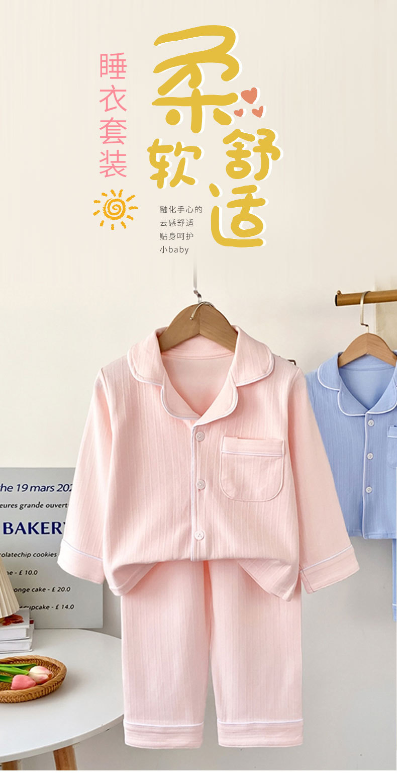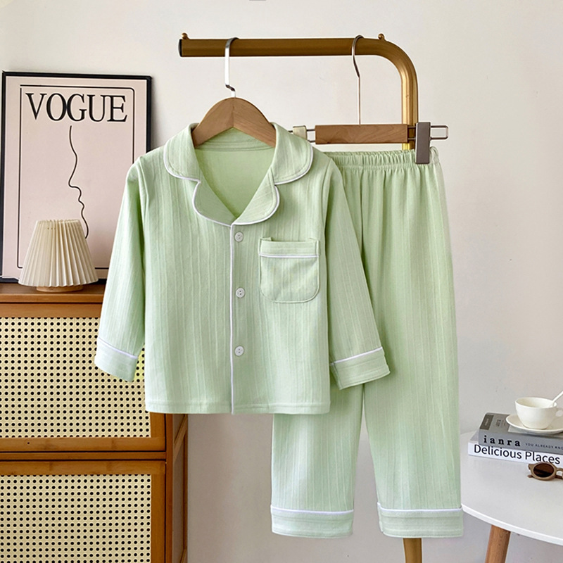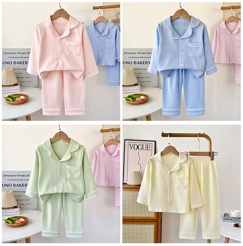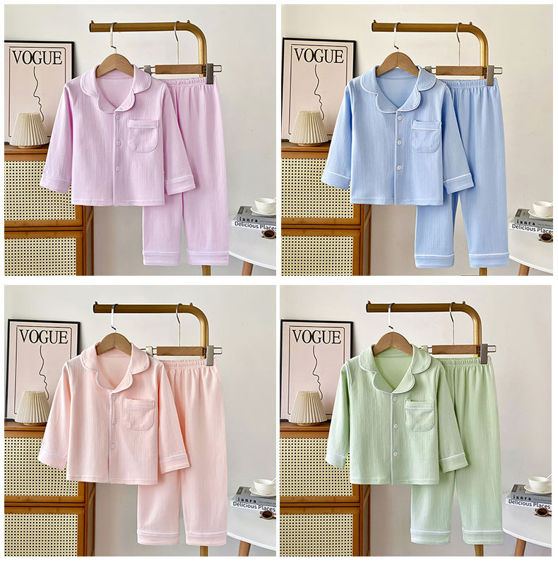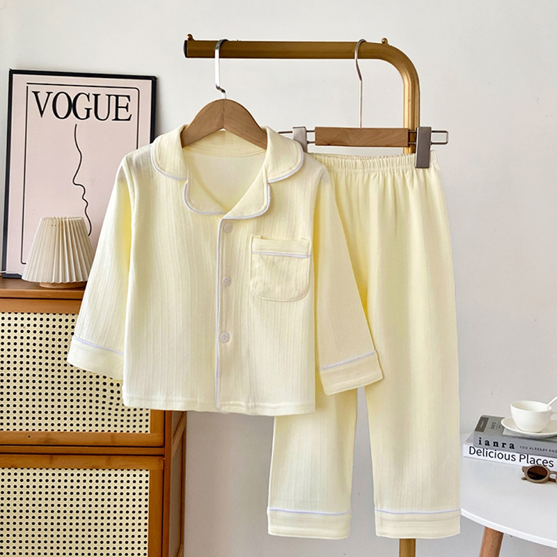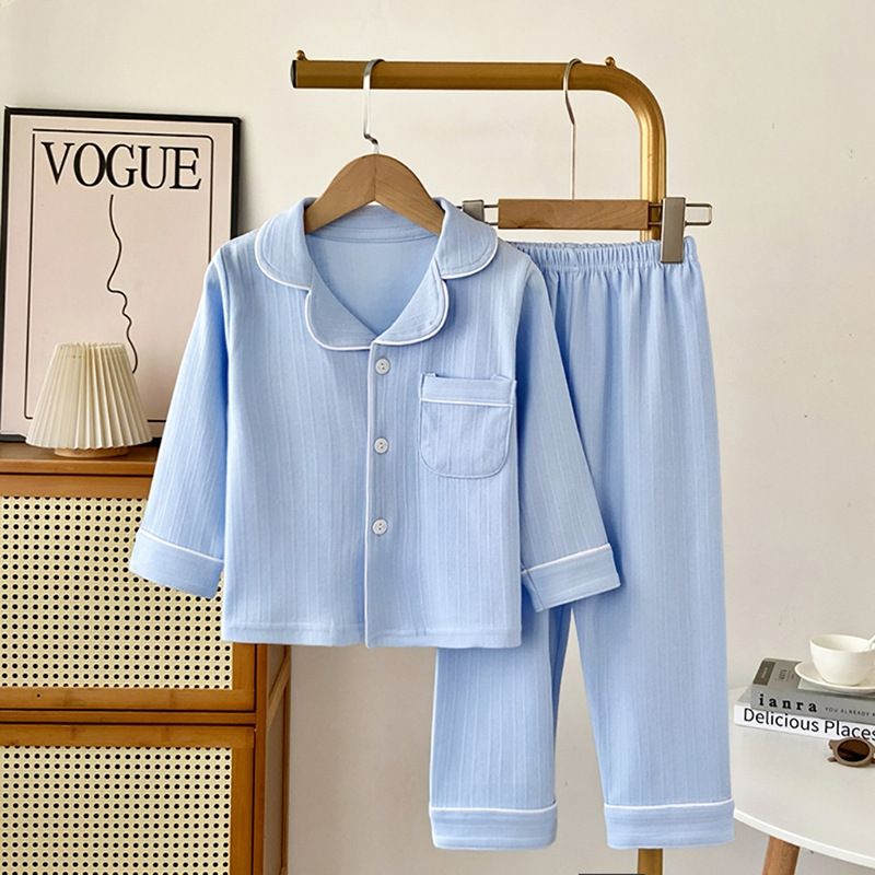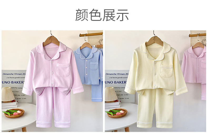 가을 겨울 신상 중대형 어린이 순면 코마사 홈웨어 카라 오픈형 카디건 어린이 잠옷 세트 단색 남녀 공용스토어 가기