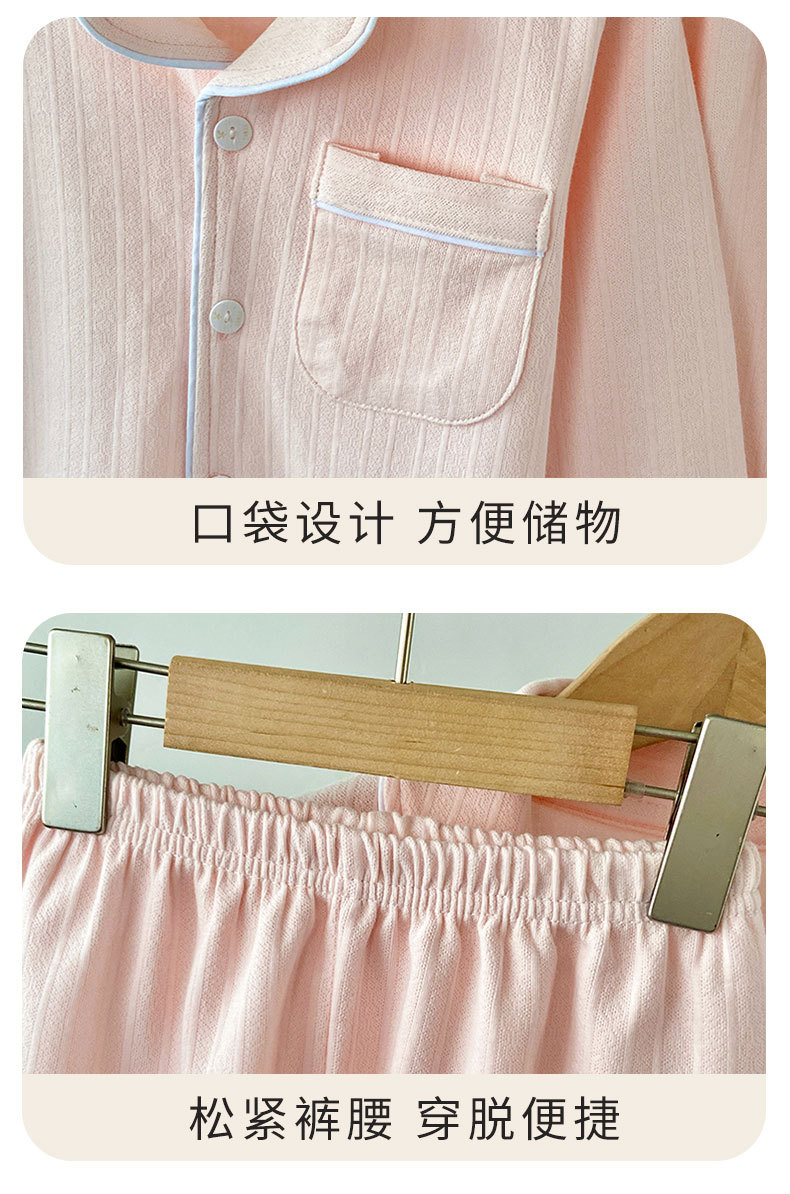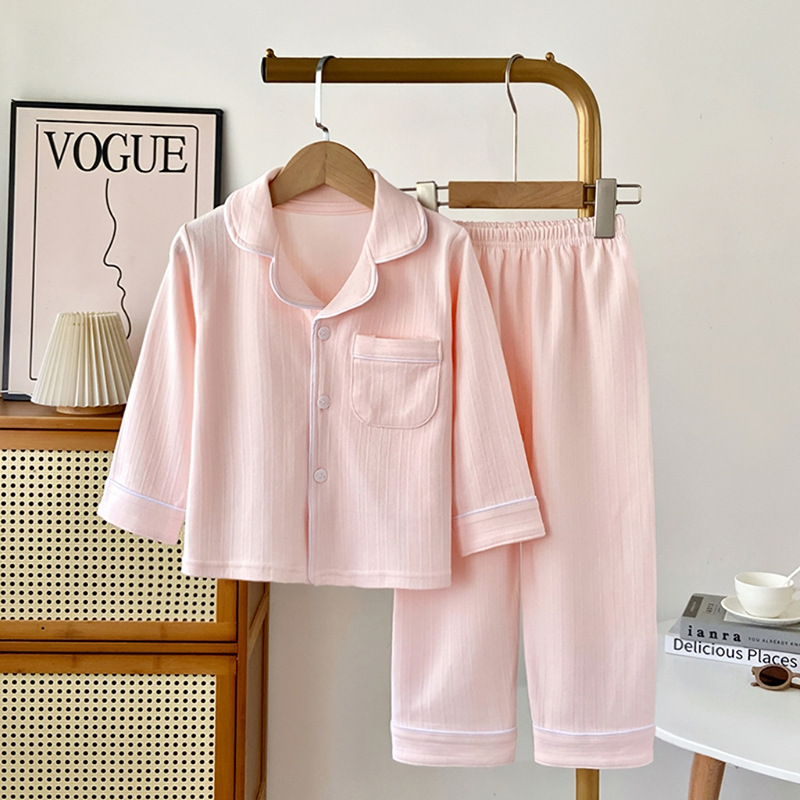 가을 겨울 신상 중대형 어린이 순면 코마사 홈웨어 카라 오픈형 카디건 어린이 잠옷 세트 단색 남녀 공용