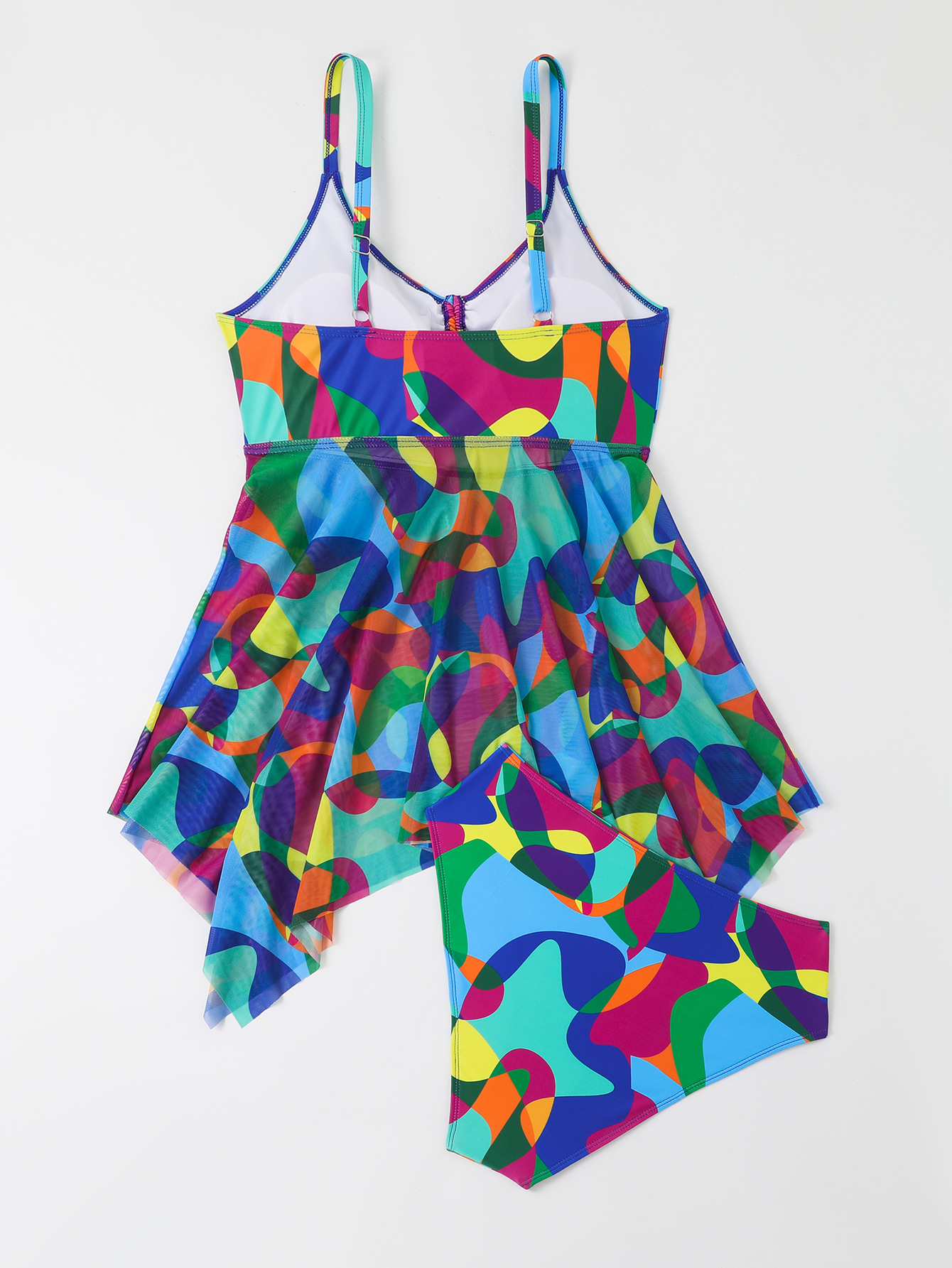 [유럽과 미국의 스커트 팻 레이디 탄키니] 디지털 인쇄 느슨한 배꼽 플러스 사이즈 독립 삼각형 바닥 수영복 여성