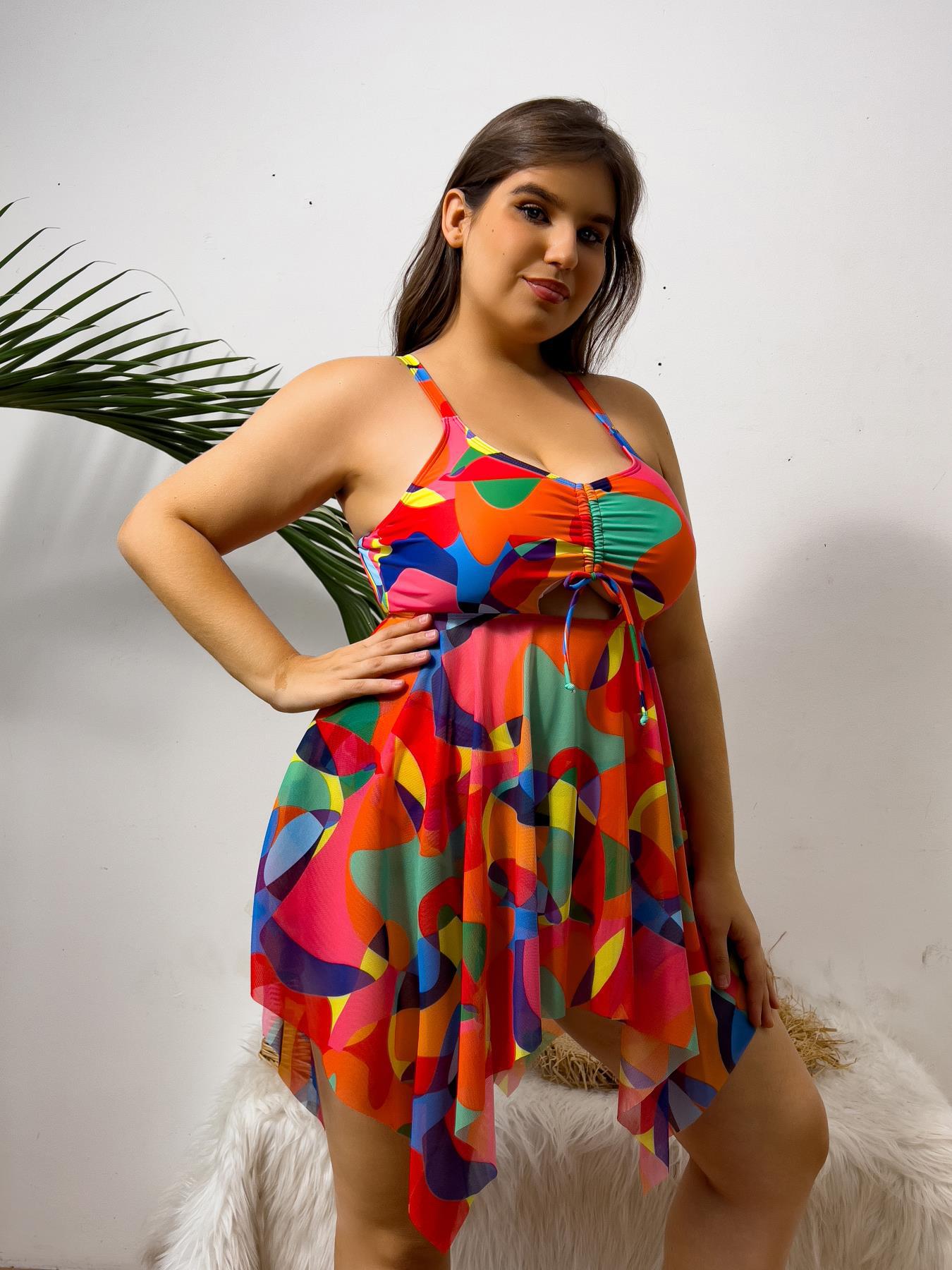 [유럽과 미국의 스커트 팻 레이디 탄키니] 디지털 인쇄 느슨한 배꼽 플러스 사이즈 독립 삼각형 바닥 수영복 여성스토어 가기
