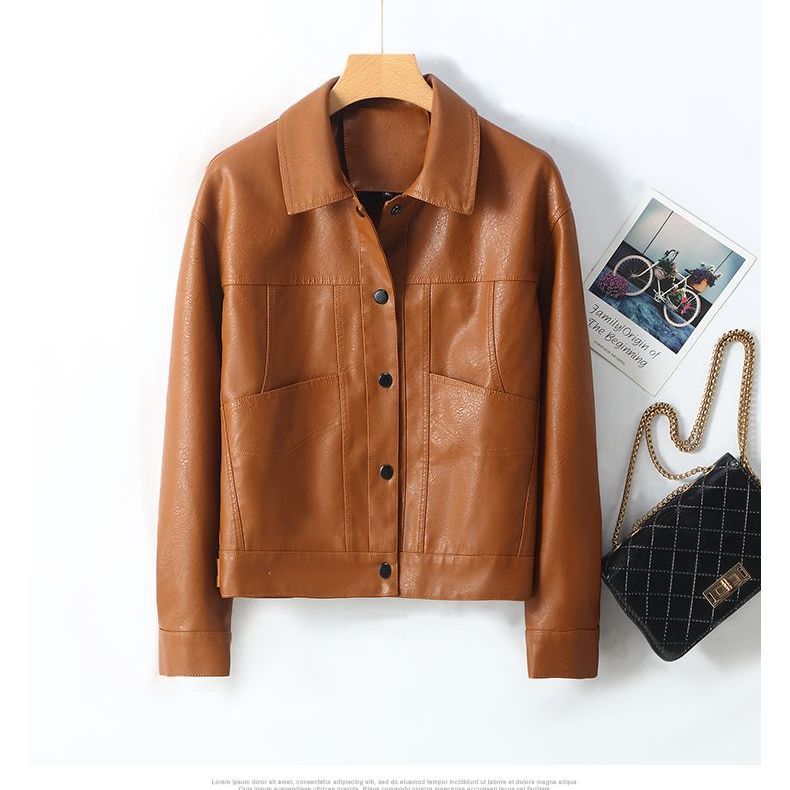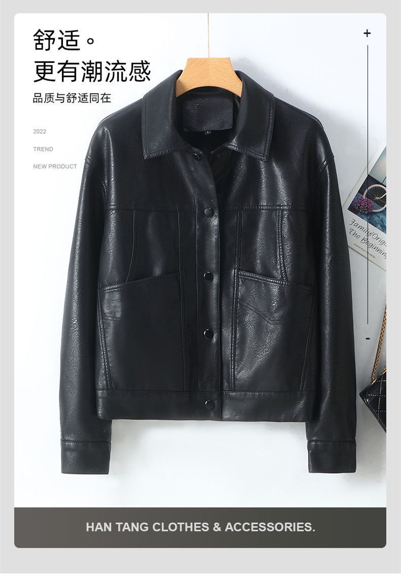 새로운 여성 가죽 자켓 짧은 가죽 자켓 코트 인기있는 패션 서양식 향수 우아한 2024 봄과 가을 폭발스토어 가기