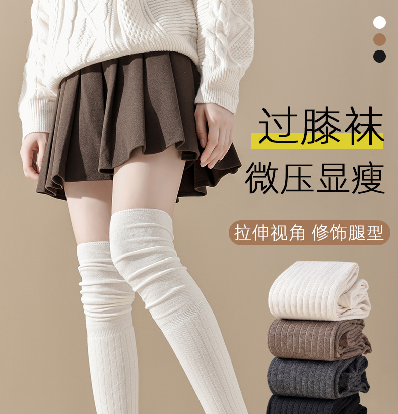 무릎 위 양말 여성 스타킹 봄과 가을 우유 흰색 긴 부츠 긴 다리 양말 임산부의 가을과 겨울 미끄럼 방지 더미 스타킹