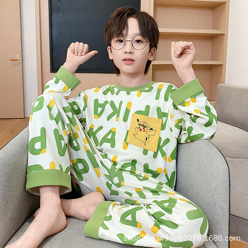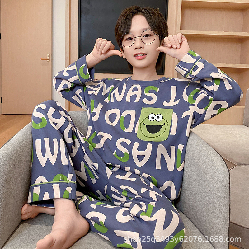2024 새로운 어린이 잠옷 봄과 가을 소년 만화 긴 소매 얇은 큰 어린이 십대 및 소년 홈 옷스토어 가기