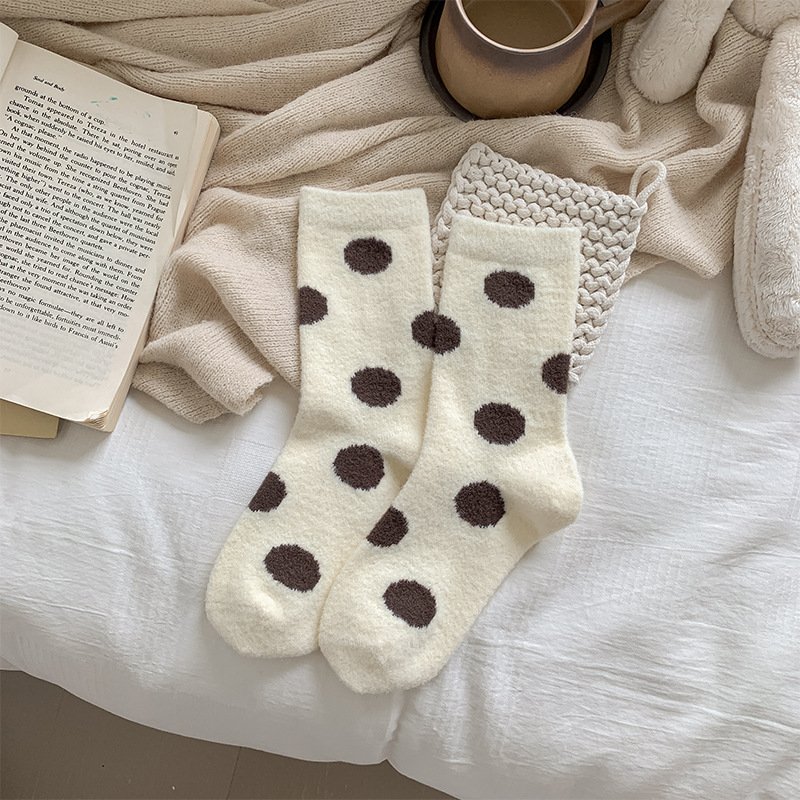 올인원 기계 호주 벨벳 다크 브라운 폴카 도트 뼈없는 양말 기모 두꺼운 따뜻한 귀여운 점박이 튜브 양말 슈퍼마켓 도매
