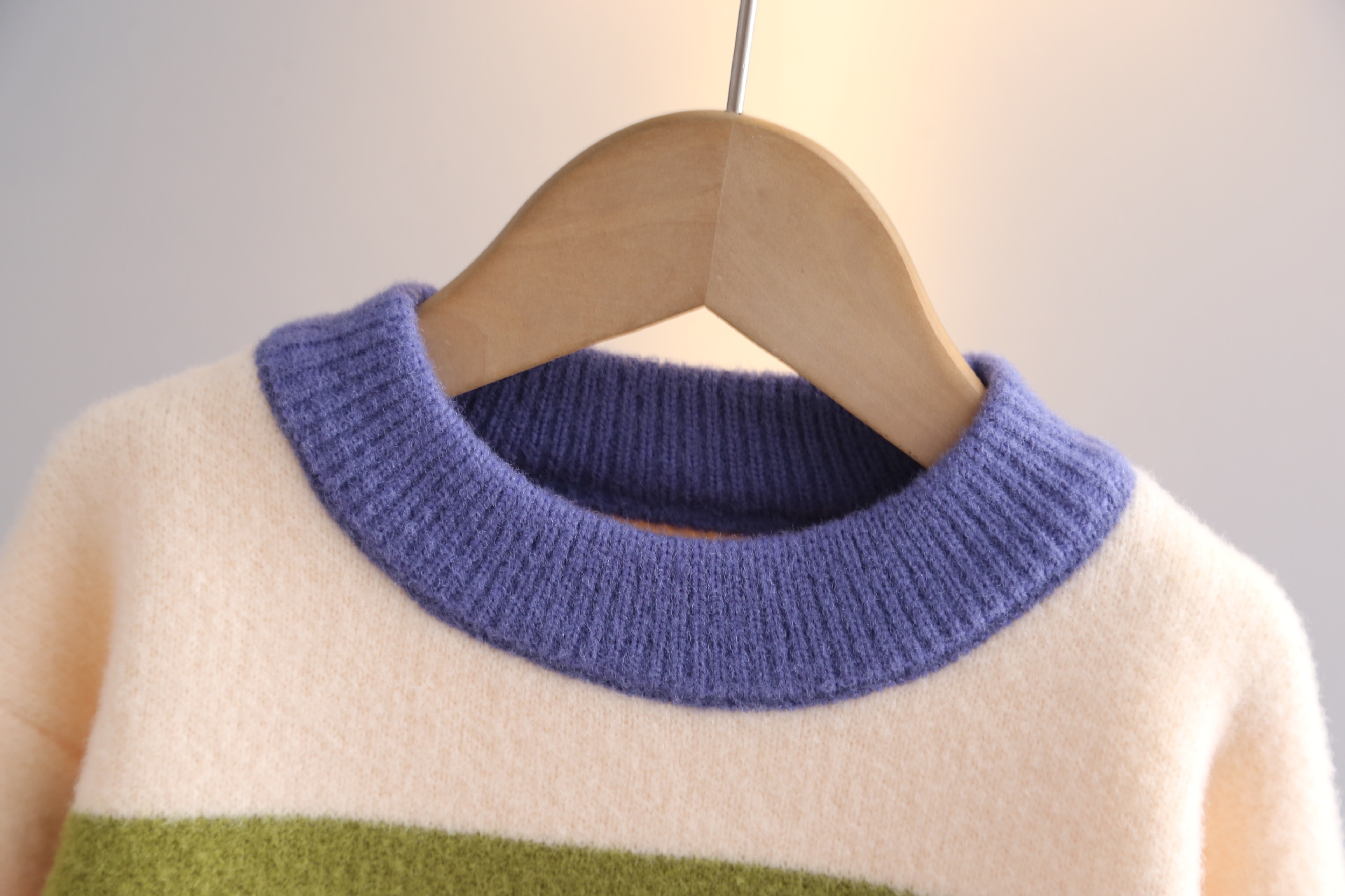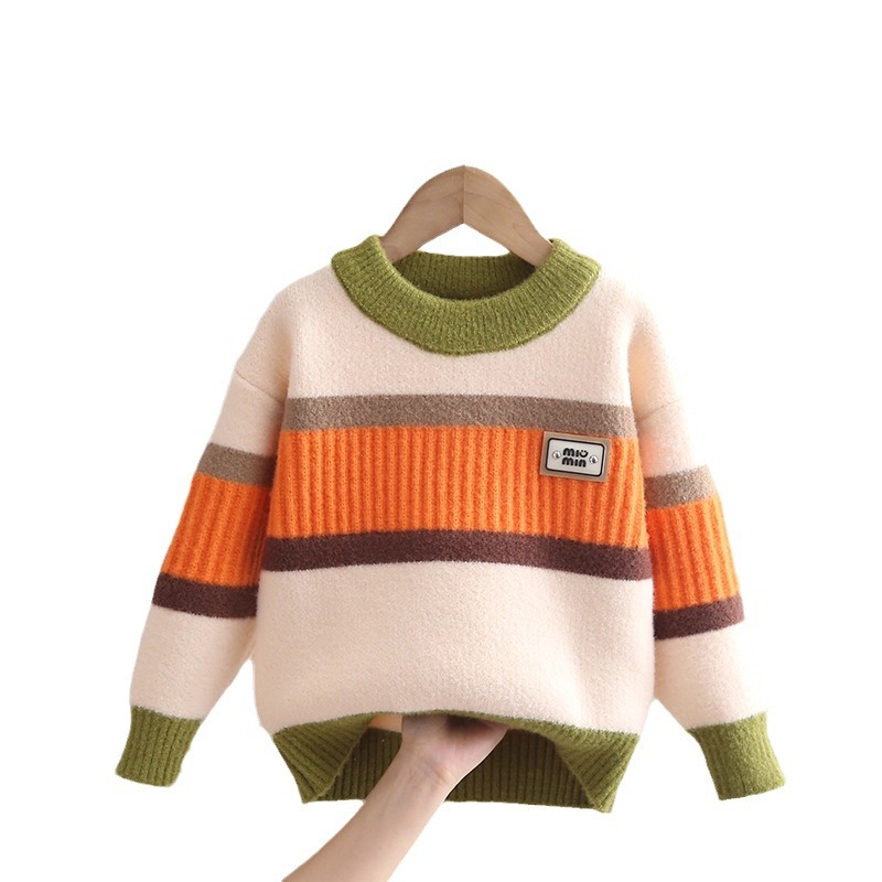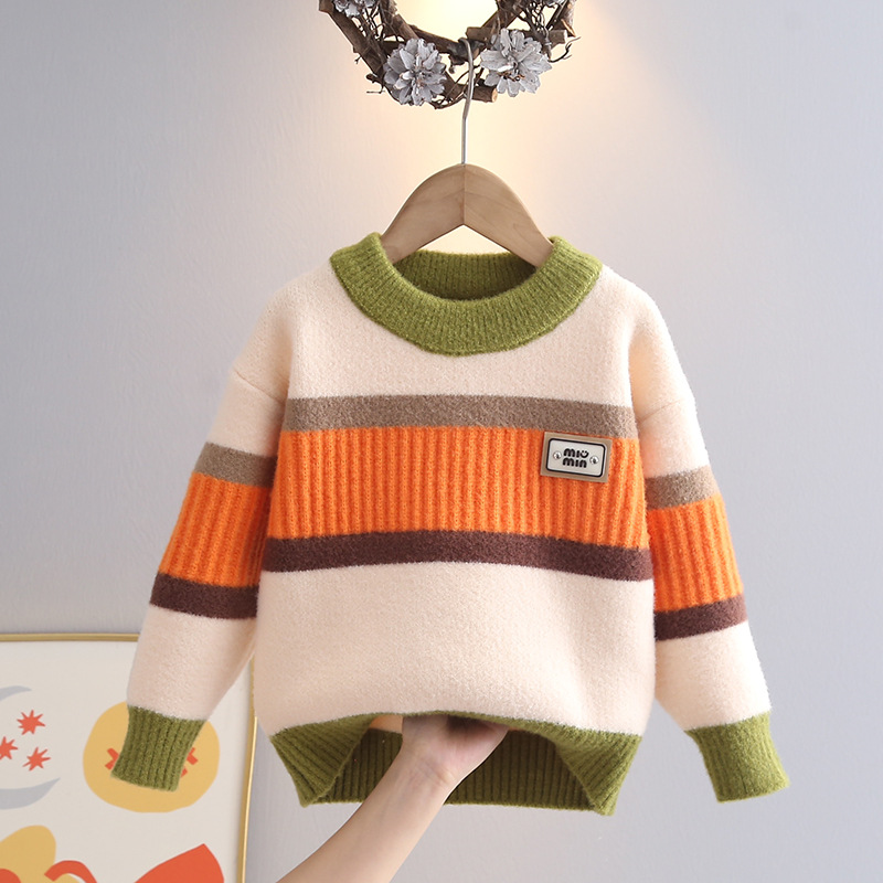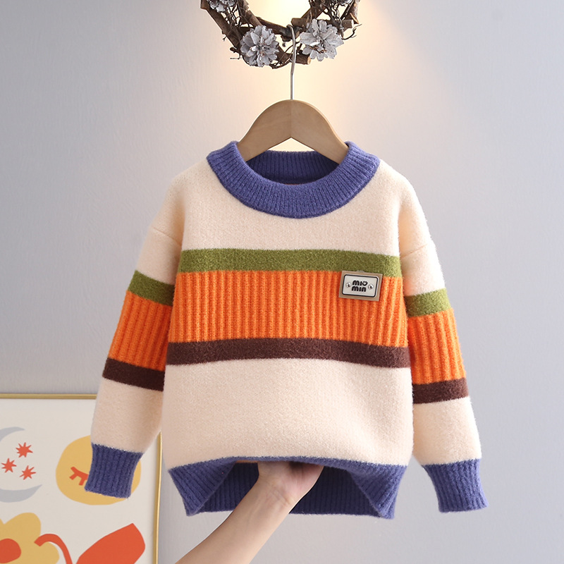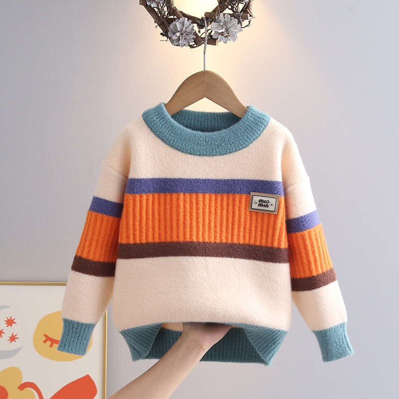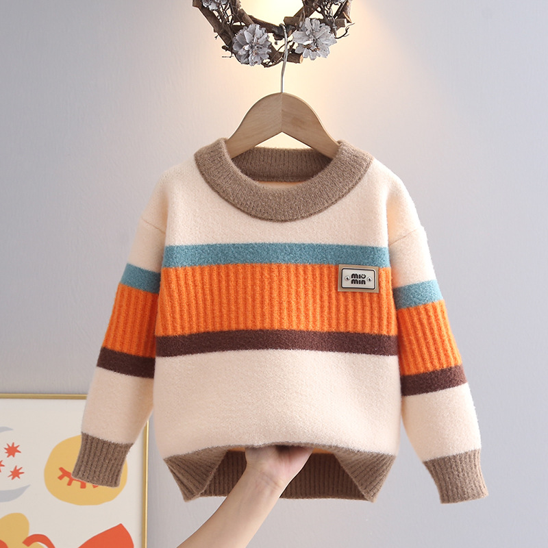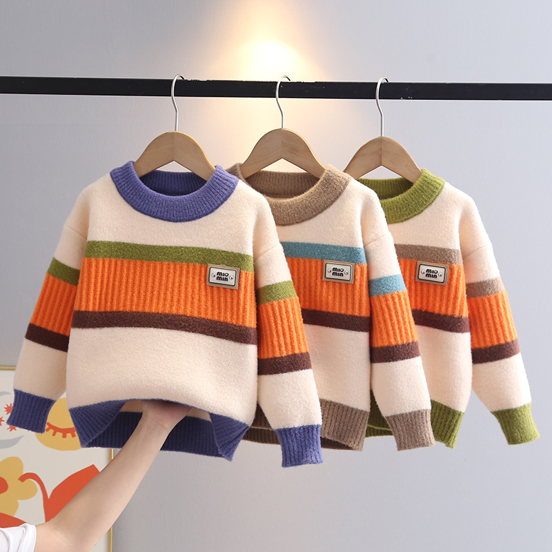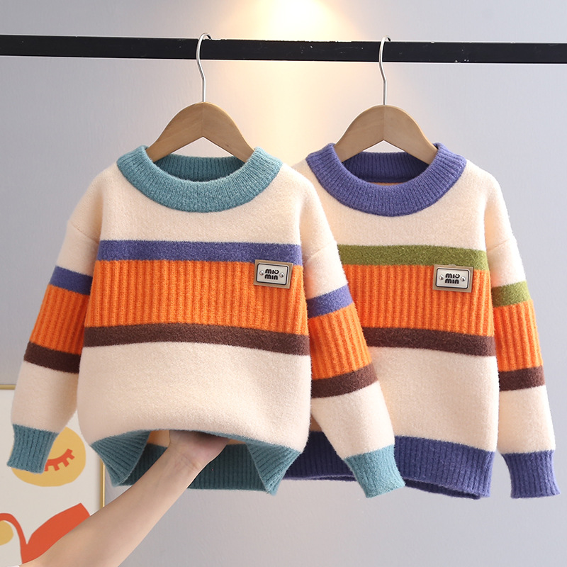 소년 스웨터 2024 새로운 가을 줄무늬 니트 셔츠 큰 어린이 소년의 가을베이스 셔츠 트렌디스토어 가기