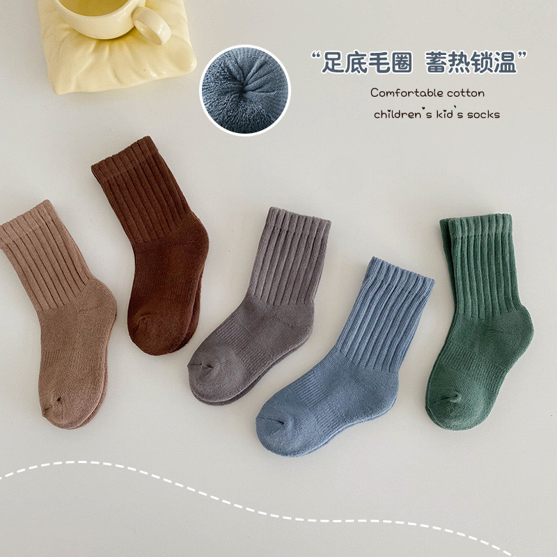 [9.12 기업인의 날 200-20 년마다 지원] 소년 소녀를위한 5 쌍의 통기성 타월 양말스토어 가기