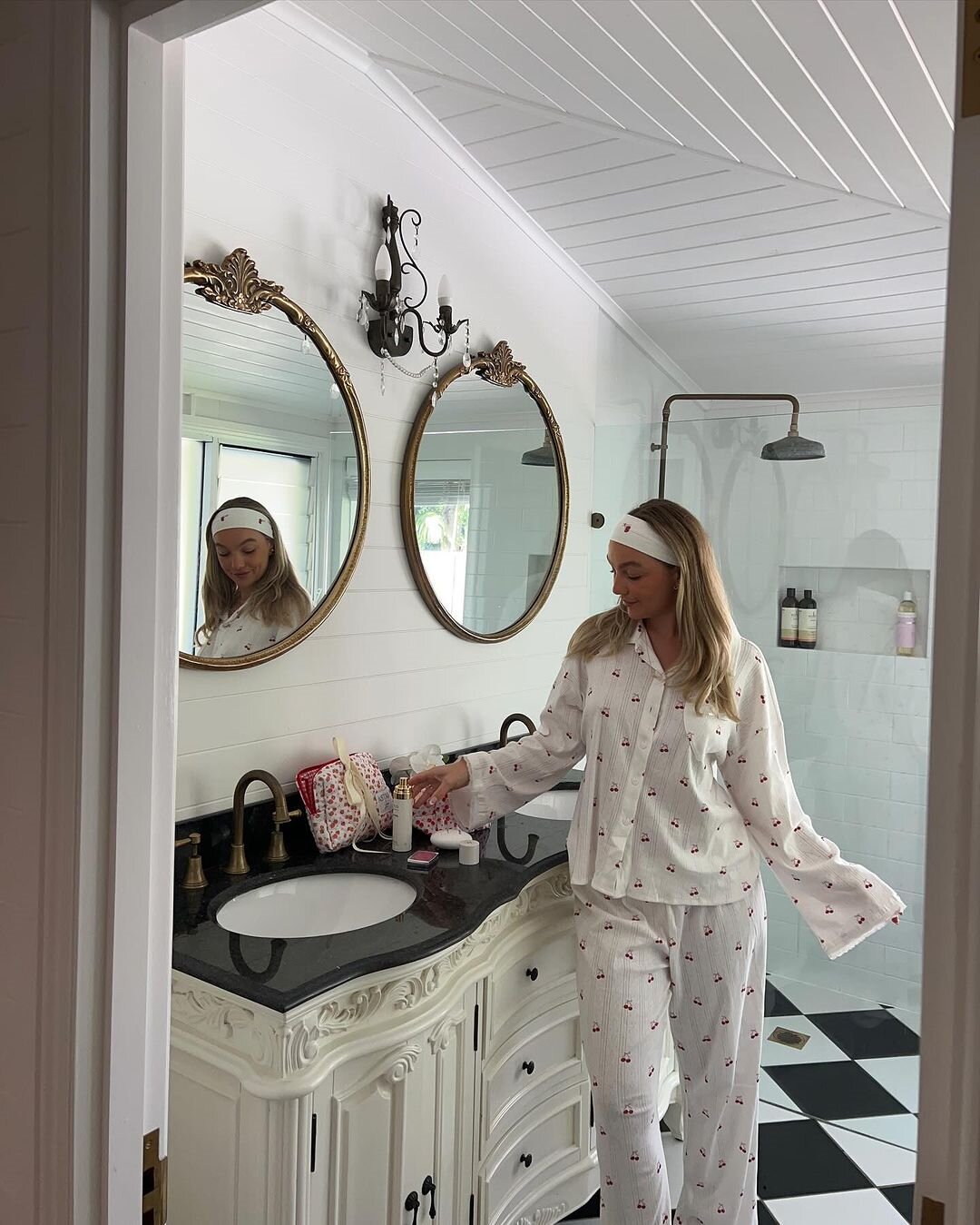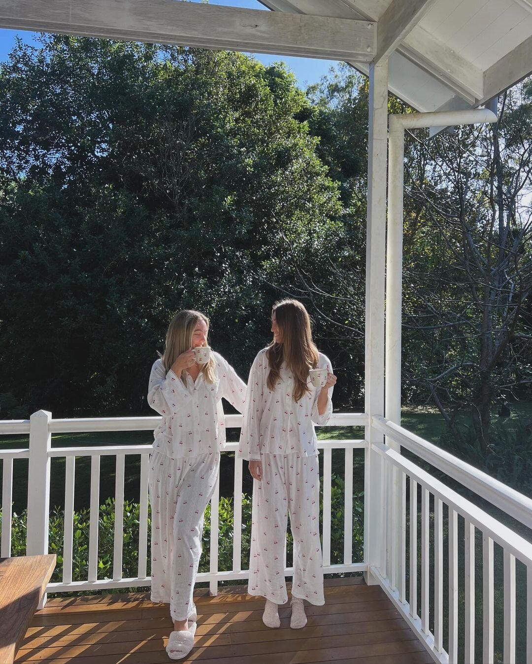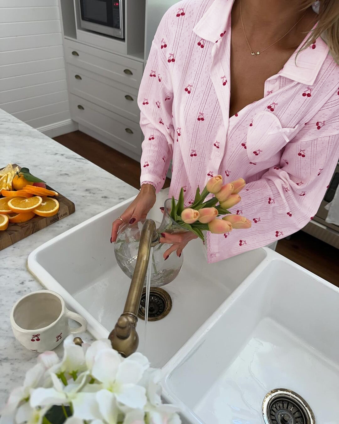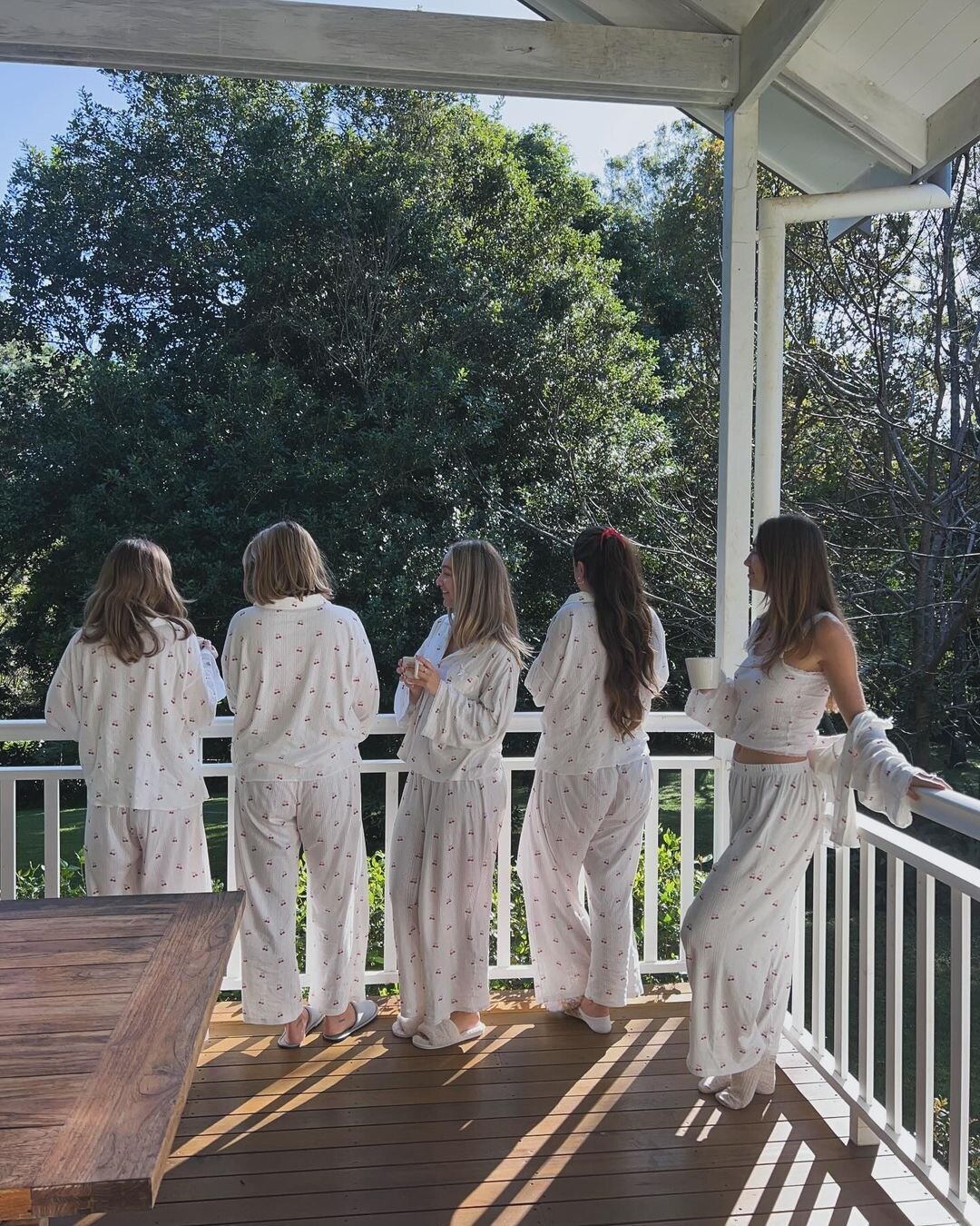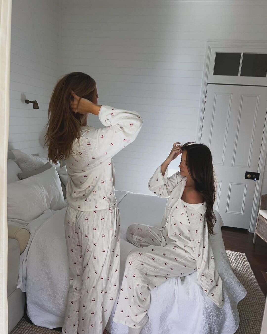 2024 유럽과 미국의 가을 캐주얼 카디건 니트 긴 소매 바지 파자마 여성 체리 인쇄 간단한 홈 옷스토어 가기