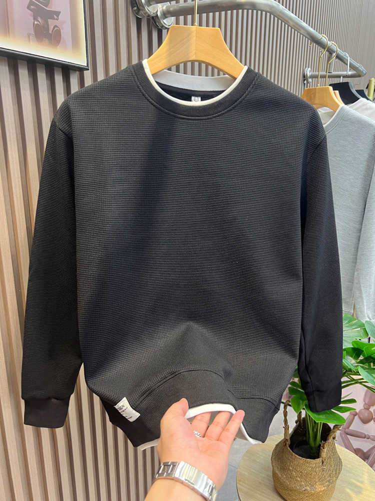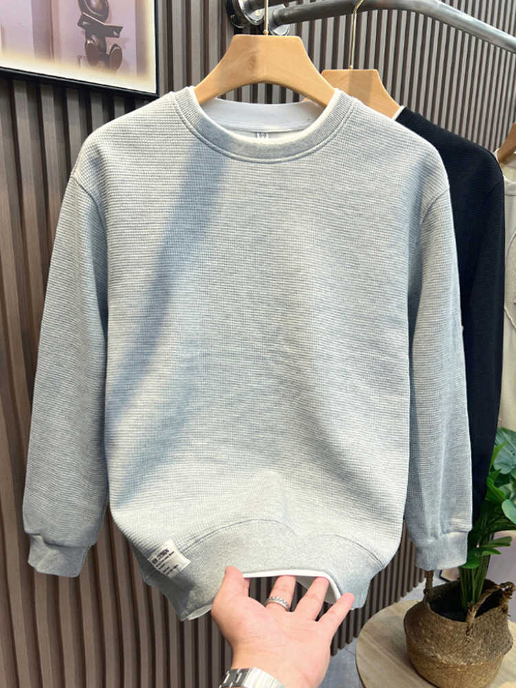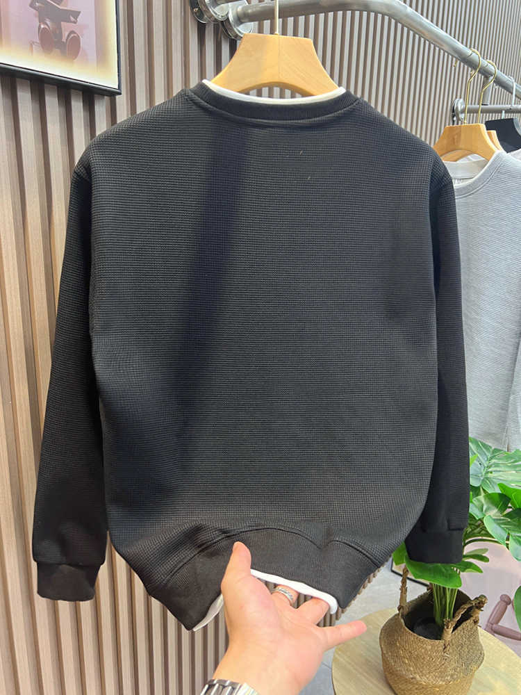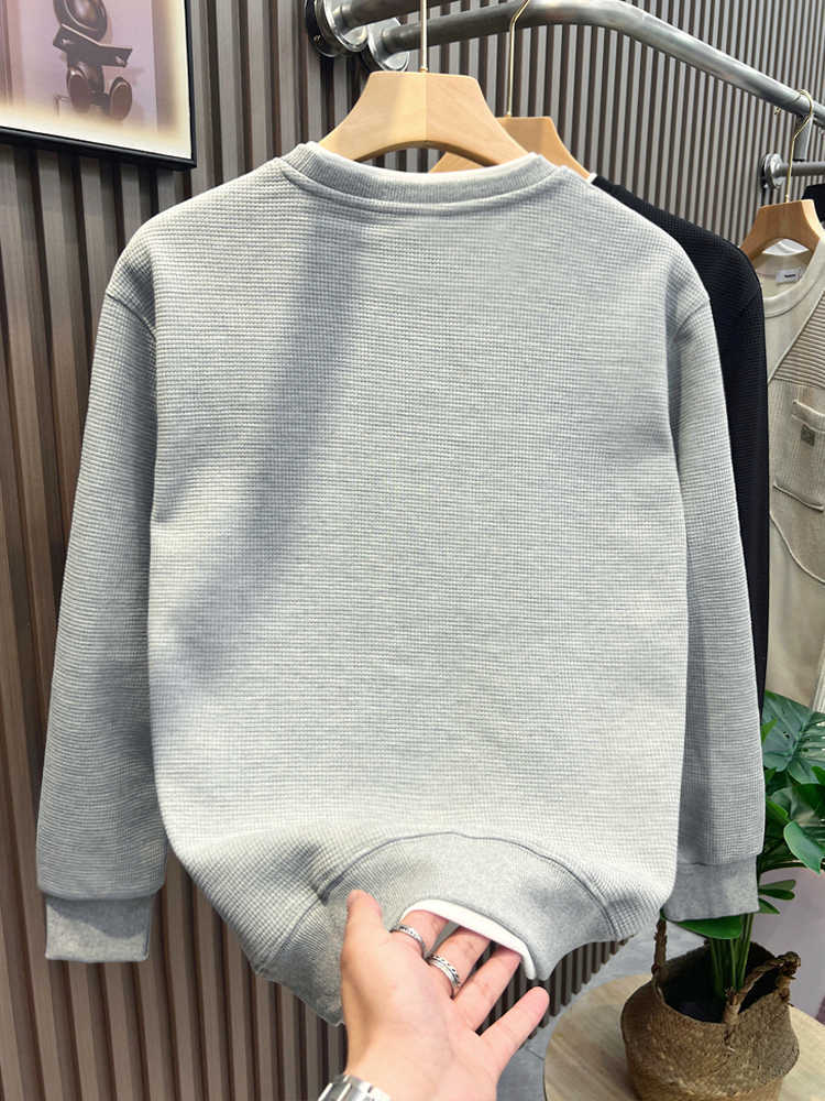 유럽 역 와플 스웨터 남자 가을 겨울 솔리드 컬러 올 매치 트렌디 브랜드 남자 가짜 투피스 긴팔 크루 넥 심플 트렌디스토어 가기